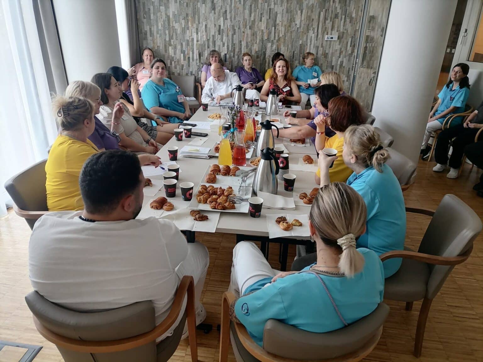 Na Klamovce máme pravidelné týdenní porady, na kterých řešíme provozní záležitosti, sdílíme pracovní radosti i starosti a občas probíhá i školení. Minulý týden ale měla porada výjimečný ráz. V zasedací místnosti nás čekalo občerstvení a celkově panovala povznesená nálada. Sešli se všichni zaměstnanci napříč úseky. Paní ředitelka sice nemohla vynechat provozní agendu, ale hlavně vyjádřila, jak moc si váží fungujícího týmu, kterým na Klamovce jsme.