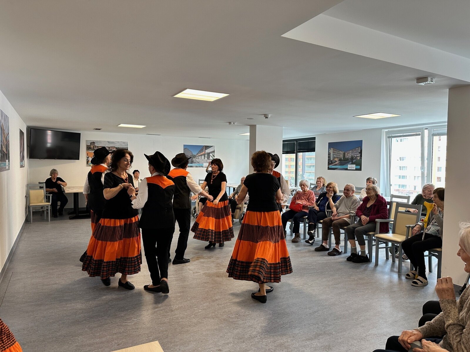 Klientům z ALHEIMER HOME Jasmín přišla předvést svůj um taneční skupina Hortenzie. Našim klientům dámy předvedly hezké a energické taneční vystoupení. 💃 Naši klienti si maximálně užili nejen jejich tanec, ale i výběr písní, na které zatančily. 🎶 Byly to totiž ty klasické hity z tancovaček, které naši klienti v mládí tak rádi navštěvovali. Děkujeme za Vaše krásné vystoupení. 💙