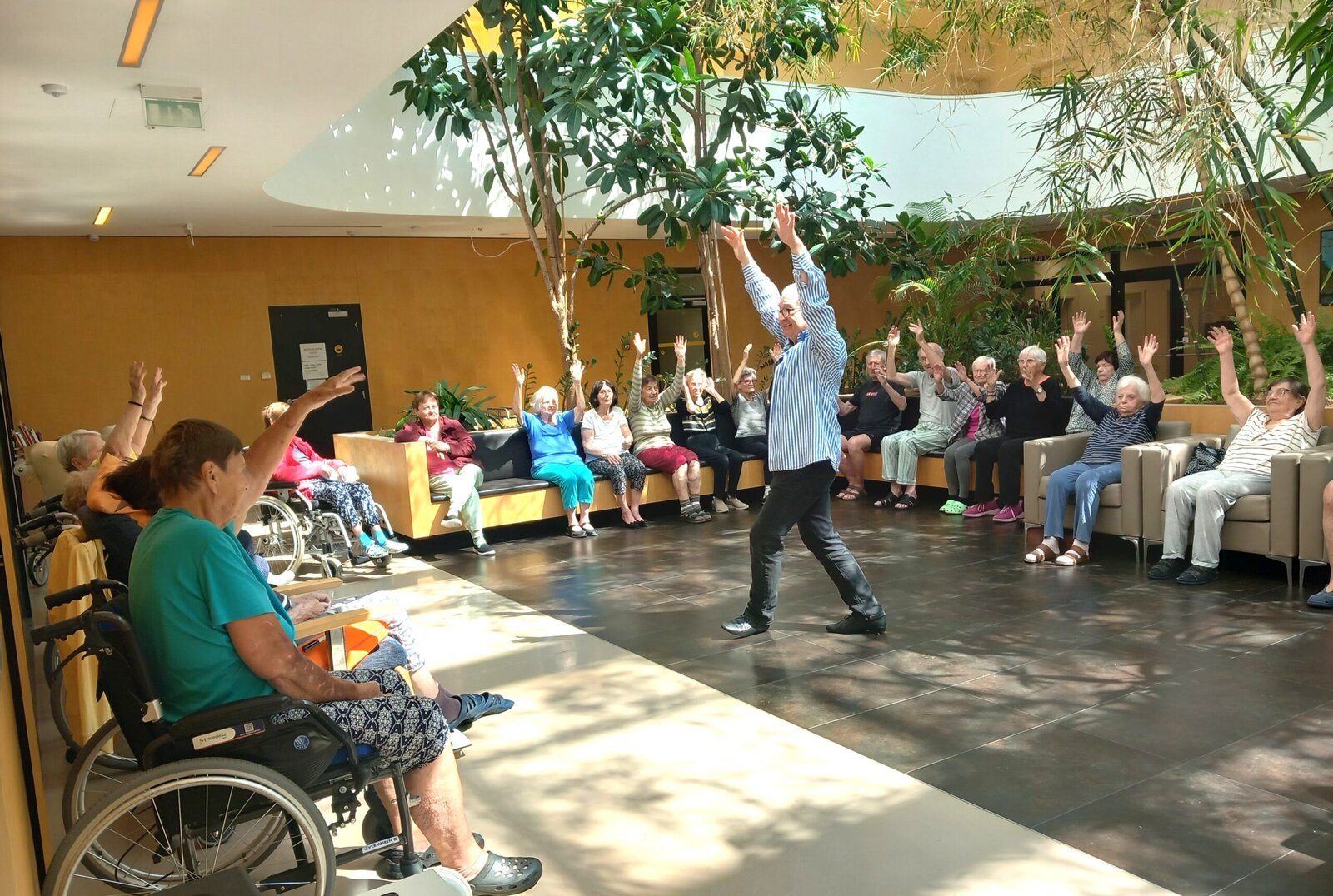 Taneční terapie s Petrem Veletou v Senevida Zátiší je vždy plná radosti a pozitivní energie. Hudba a pohyb mají pro naše klienty velký význam, podporují jejich fyzickou i duševní pohodu. Tentokrát byl program zaměřen na lidové písně a tradiční tance, které v mnohých z nich probudily krásné vzpomínky na mládí, plesy a společenské události. Atmosféra byla srdečná a plná úsměvů.