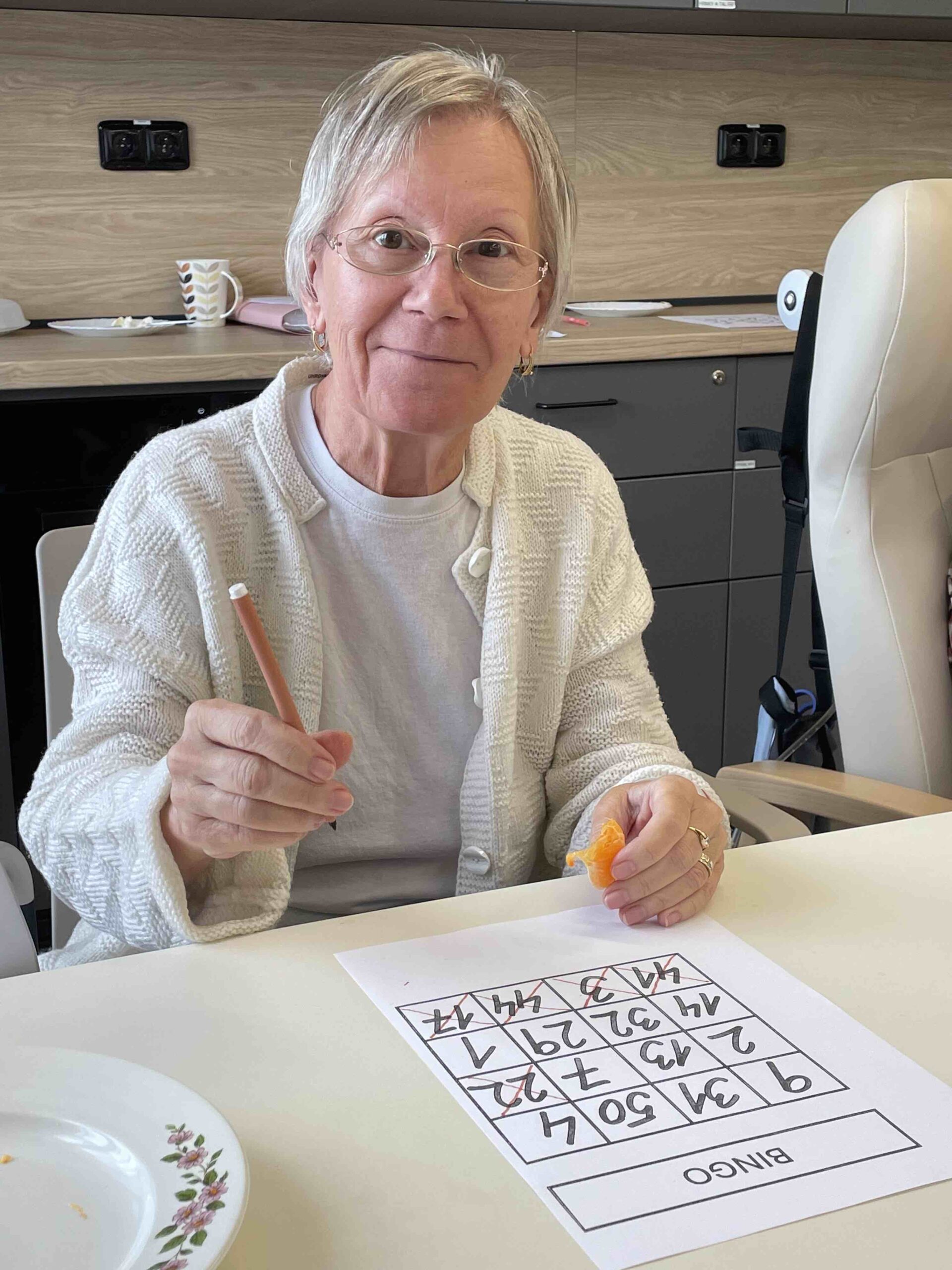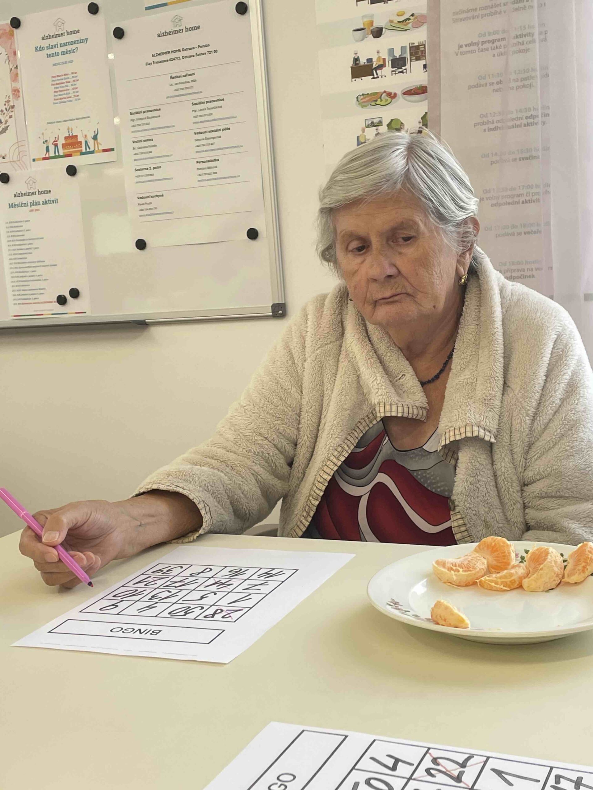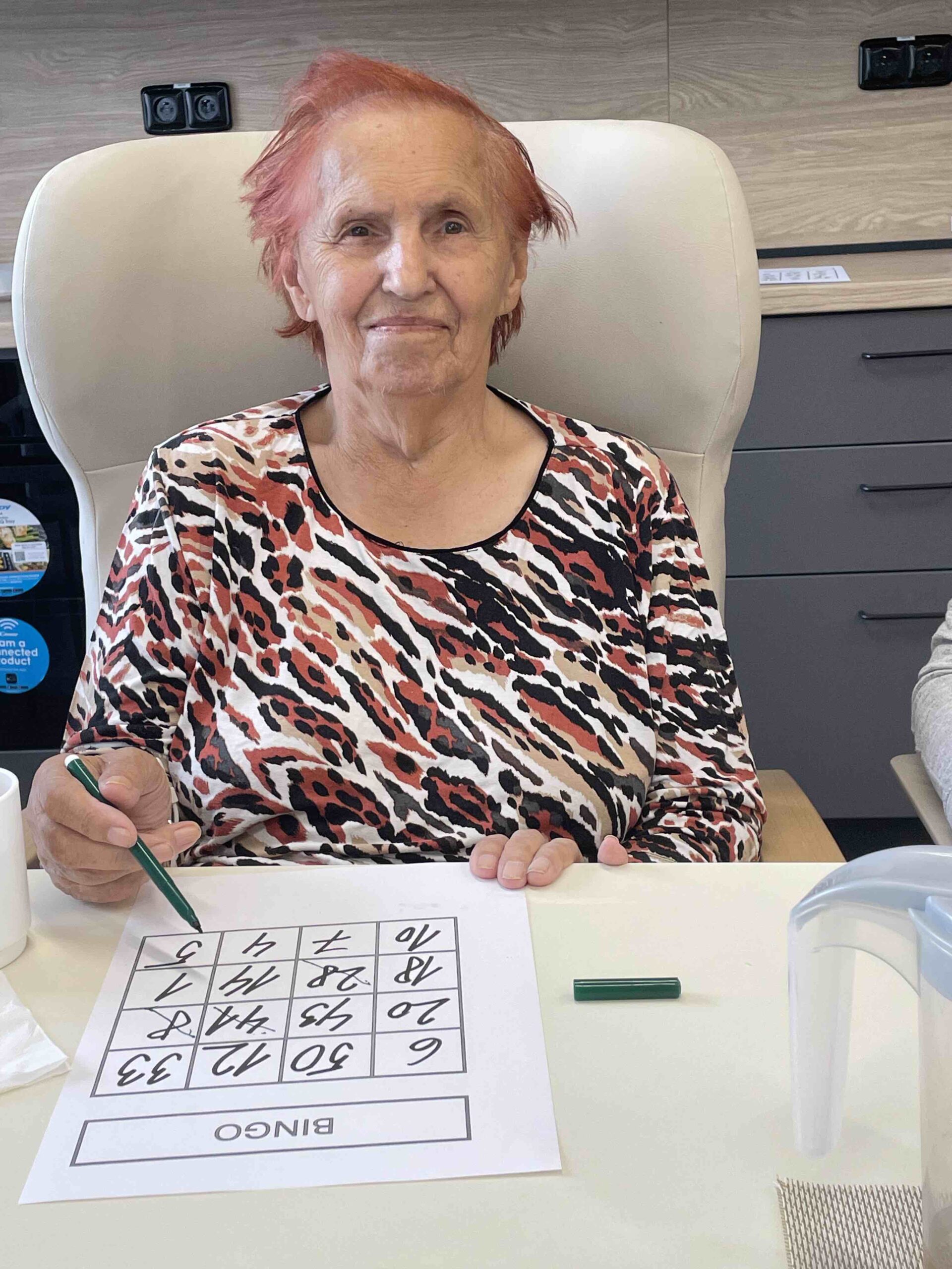 Klienti se na ni vždy těší. Bingo není jen hra, ale pomáhá procvičovat soustředění, postřeh i paměť a podporuje radost ze společného sdílení. 💛