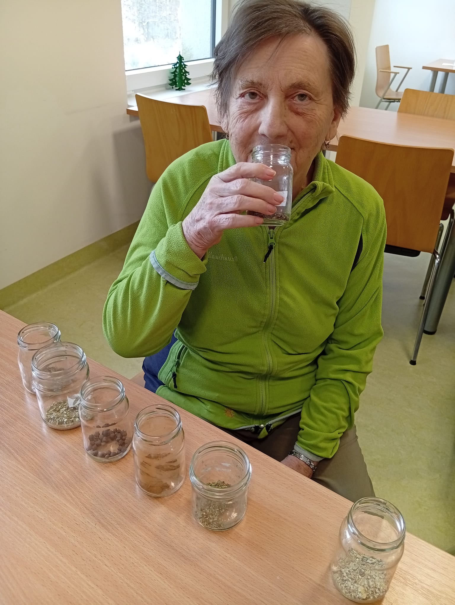 V Senevida Nepomuk klienti zapojili nos! 👃 Klienti se sešli k aktivitě zaměřené na smyslovou stimulaci, konkrétně na trénink čichu pomocí různých druhů koření. K dispozici byla celá řada intenzivních vůní – od skořice přes hřebíček. Smyslová aktivizace přinesla mnoho zábavy a probudila krásné vzpomínky.