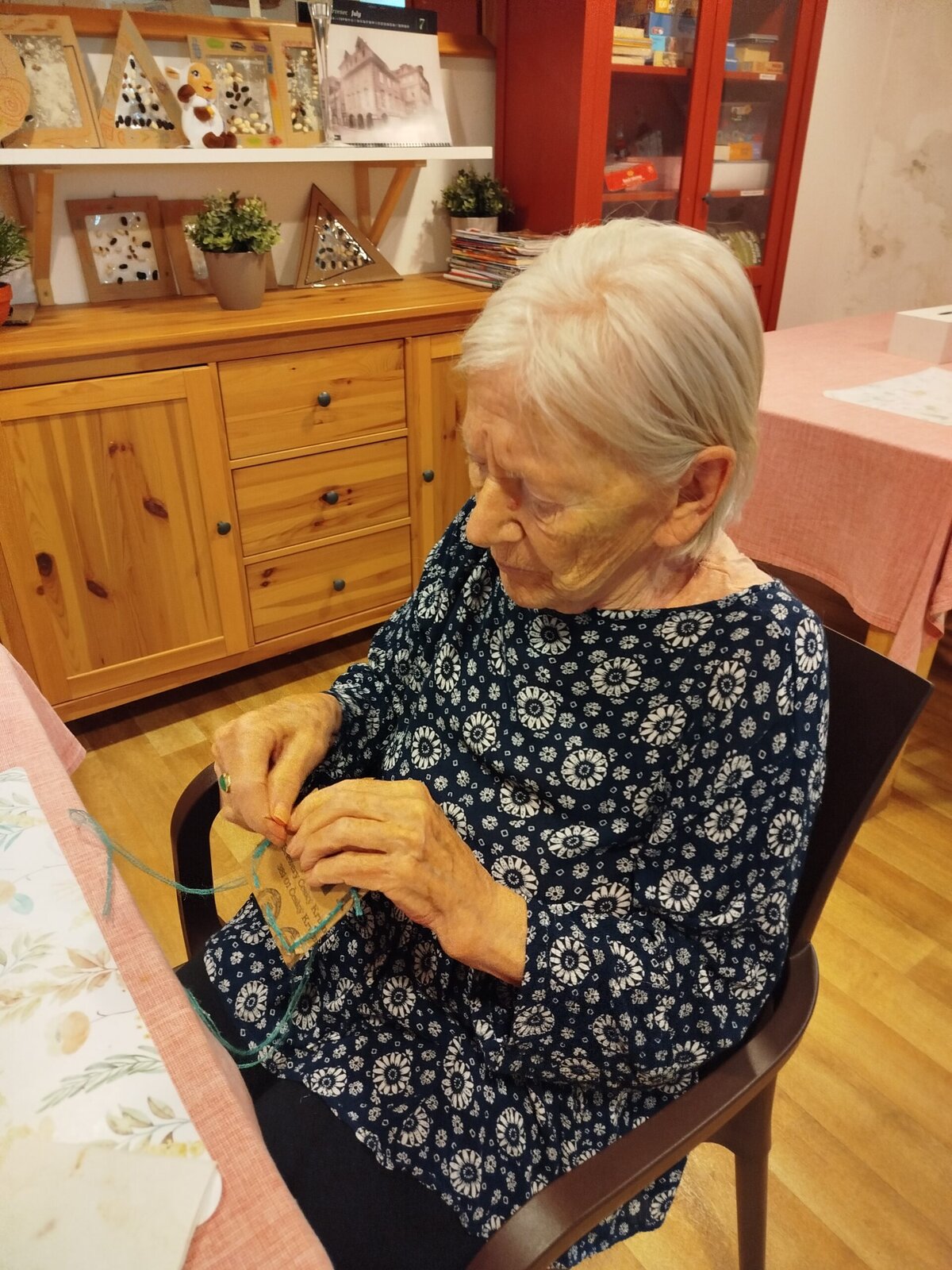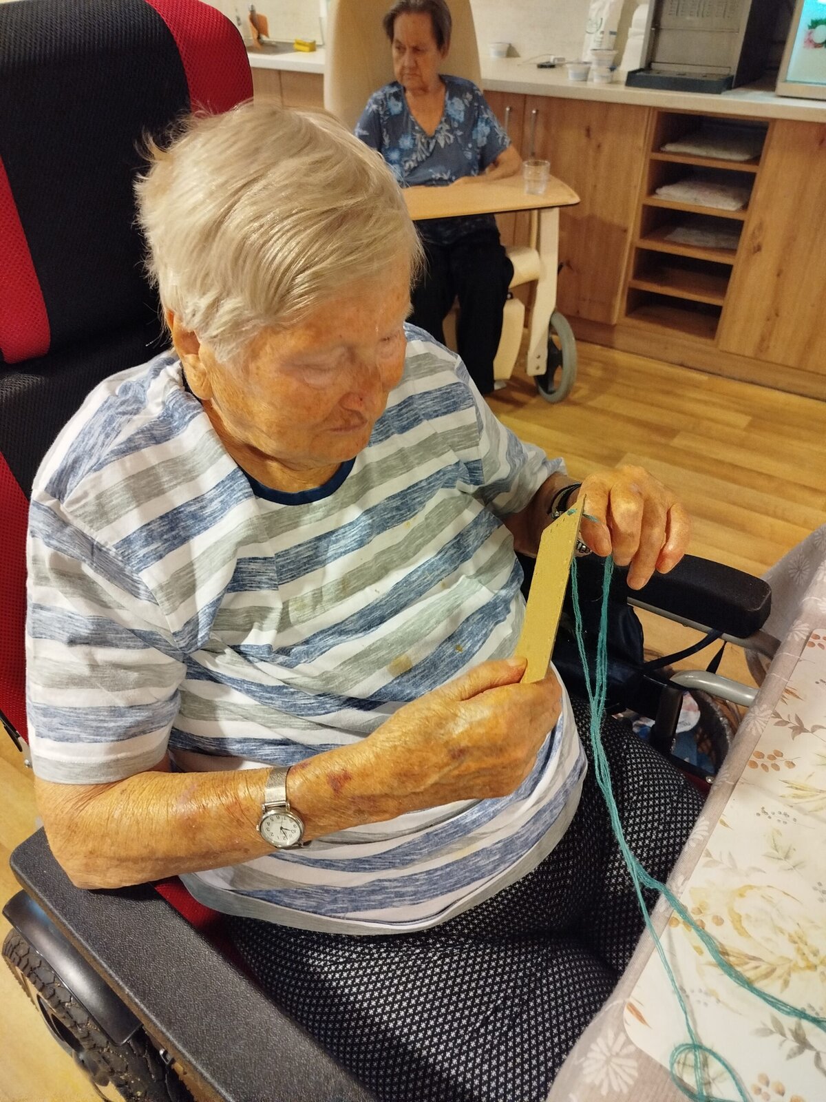 V Senevida Pyšely jsme rozvíjeli jemnou motoriku při obšívání.