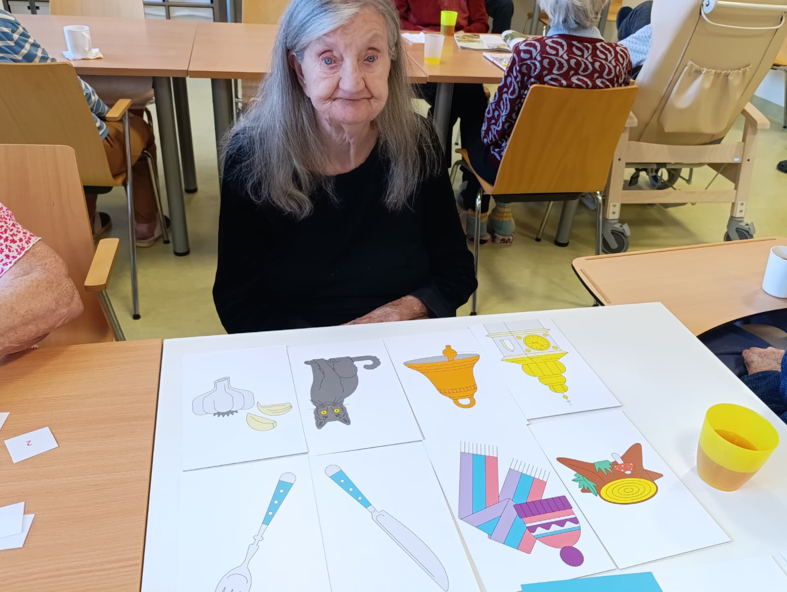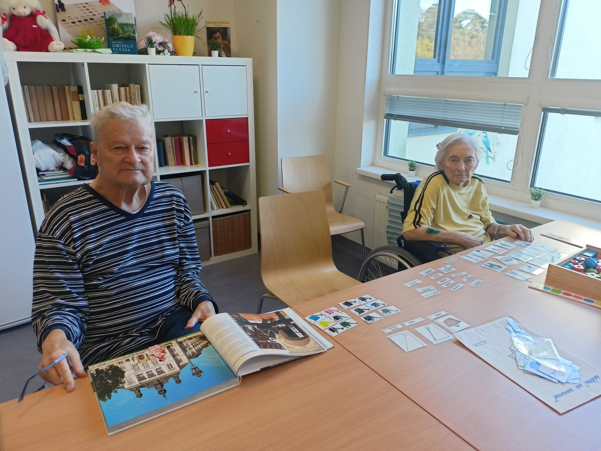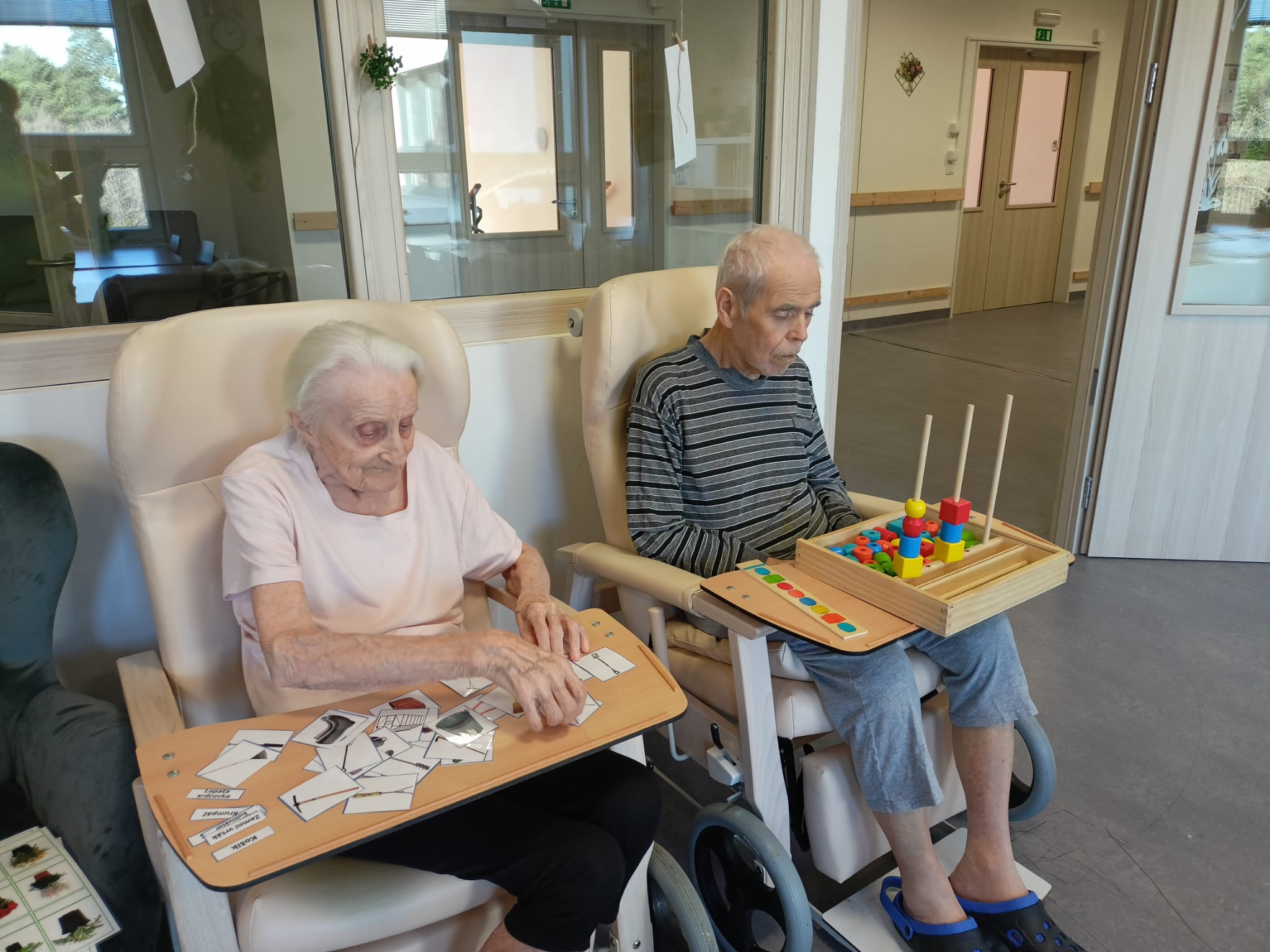 Dneska proběhla s klienty aktivizační činnost zaměřená na trénování paměti pomocí kartiček. Klienti pracovali s obrázkovými i slovními kartičkami, při kterých si procvičovali poznávání předmětů, vybavování slov a jednoduché otázky a odpovědi.