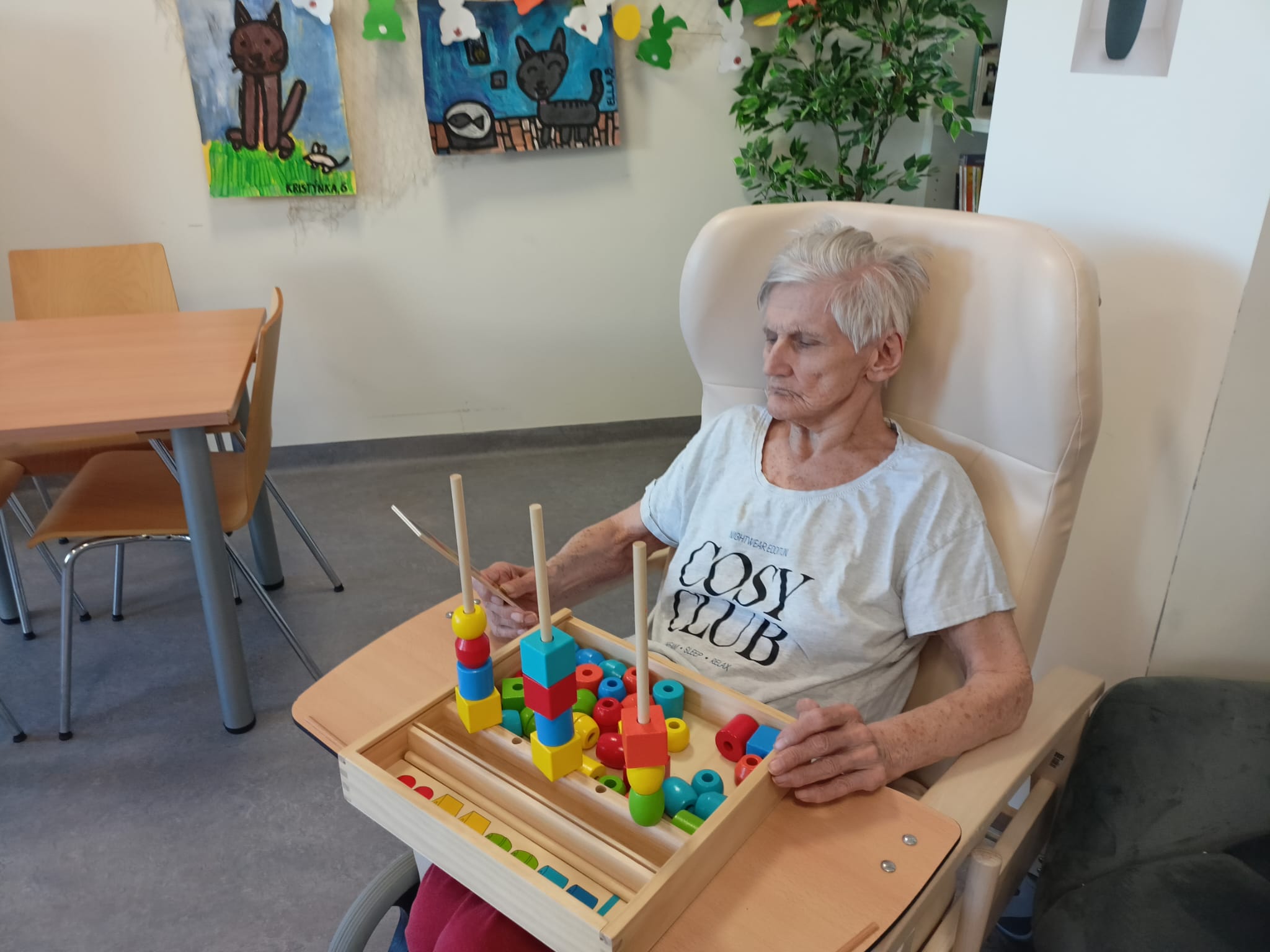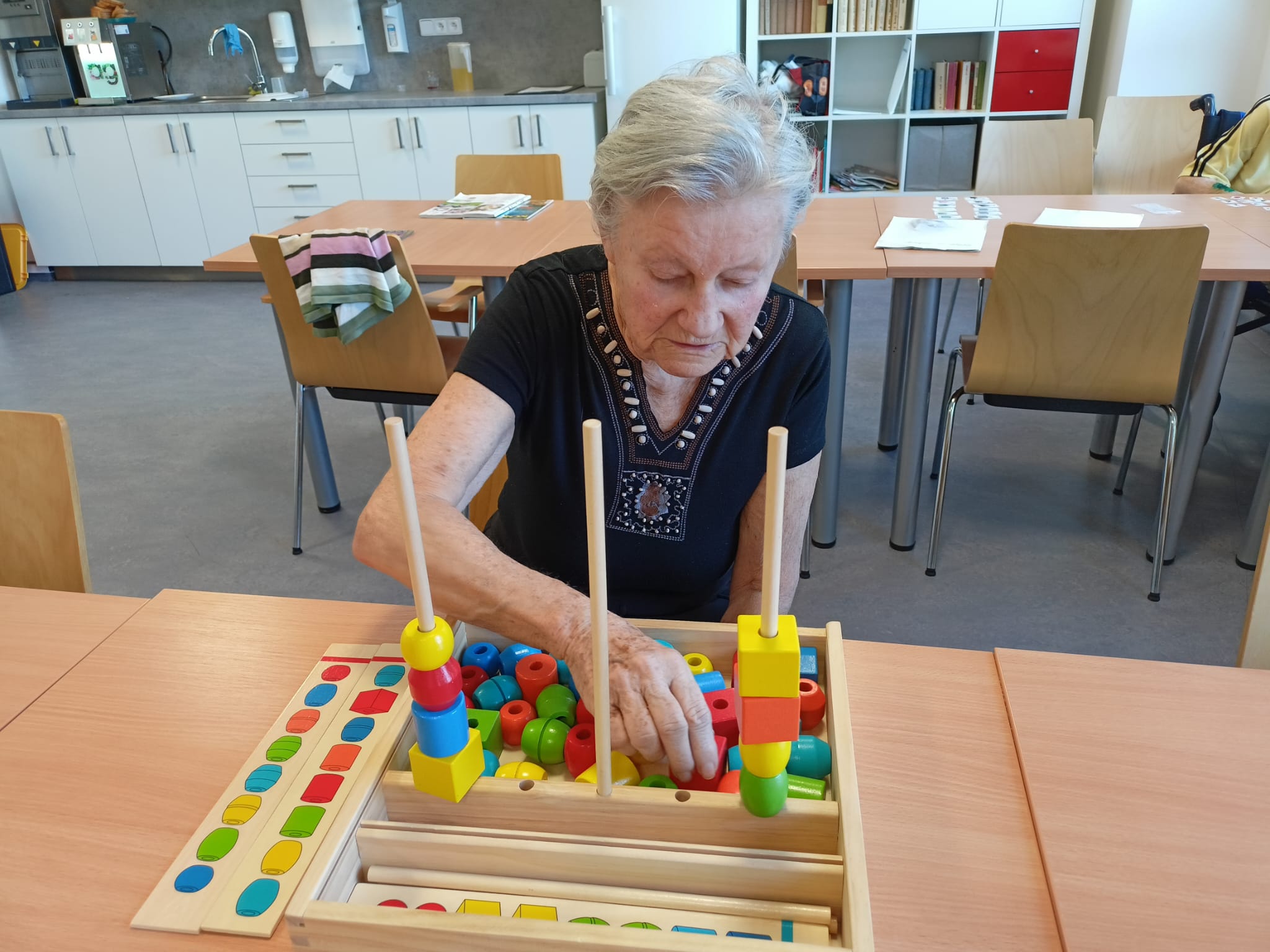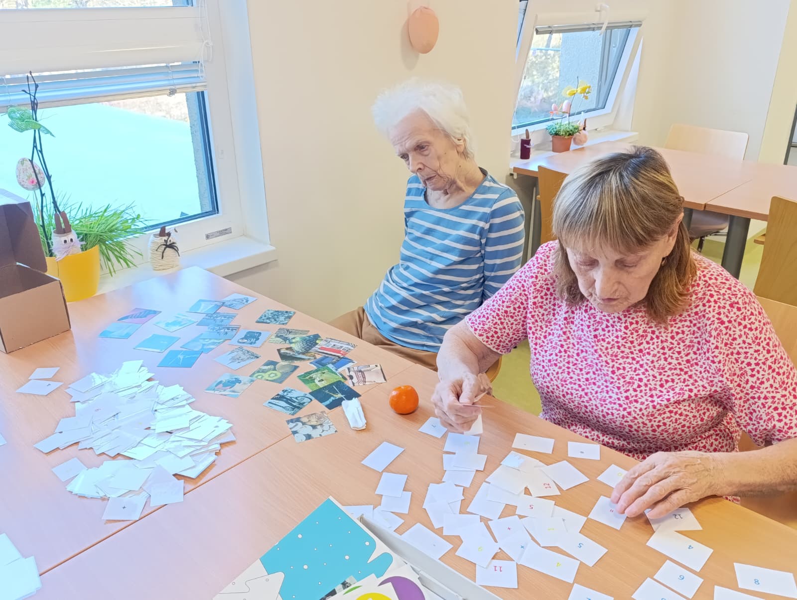 Dneska proběhla s klienty aktivizační činnost zaměřená na trénování paměti pomocí kartiček. Klienti pracovali s obrázkovými i slovními kartičkami, při kterých si procvičovali poznávání předmětů, vybavování slov a jednoduché otázky a odpovědi.
