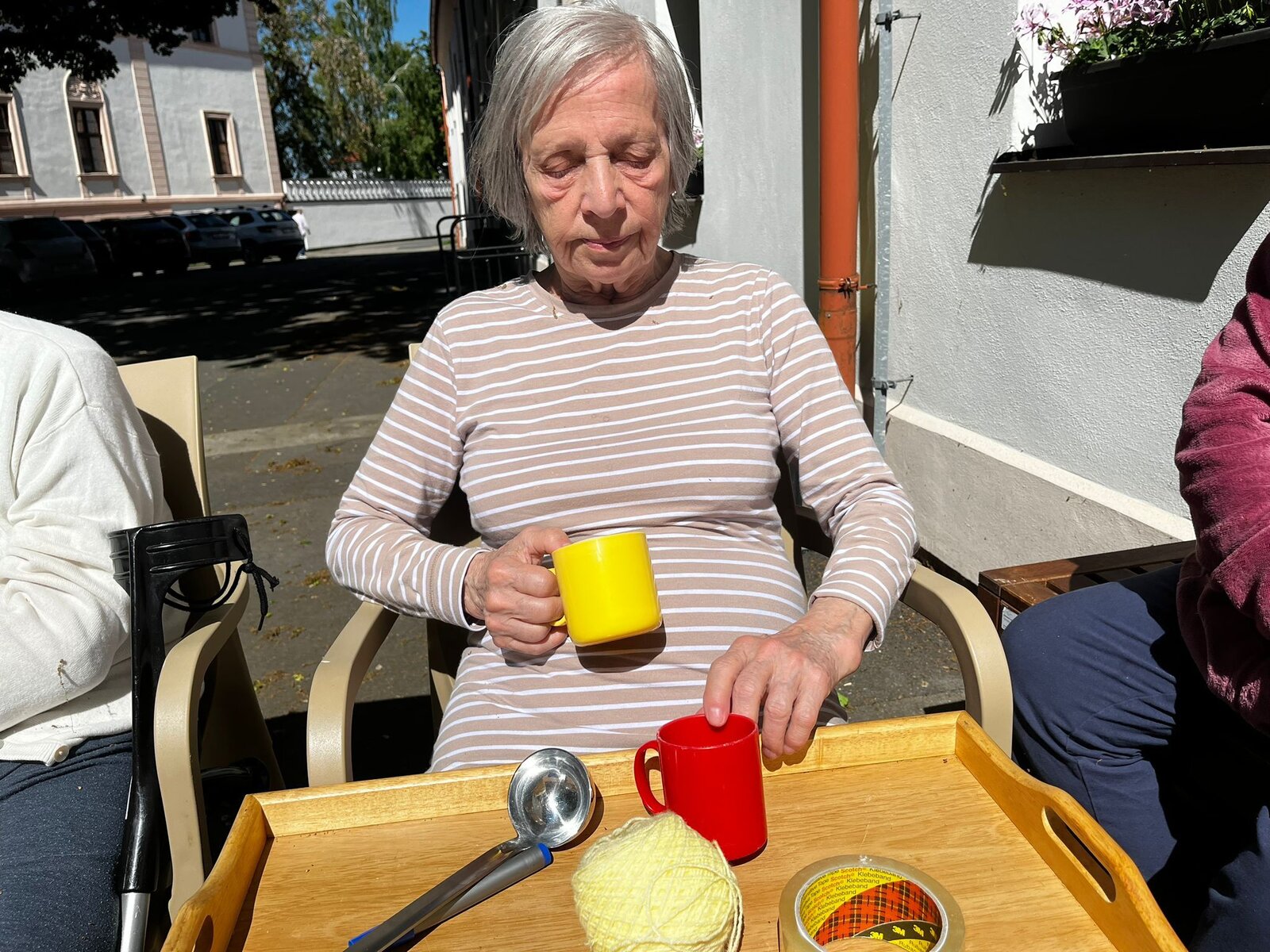 S klienty jsme trénovali krátkodobou paměť. Jejich úkolem bylo zapamatovat si co nejvíce předmětů. Dále jsme se snažili si zapamatovat nákupní seznam, nebo recept. Klienti se dobře bavili, a to to více, že se aktivita konala venku při krásném počasí.