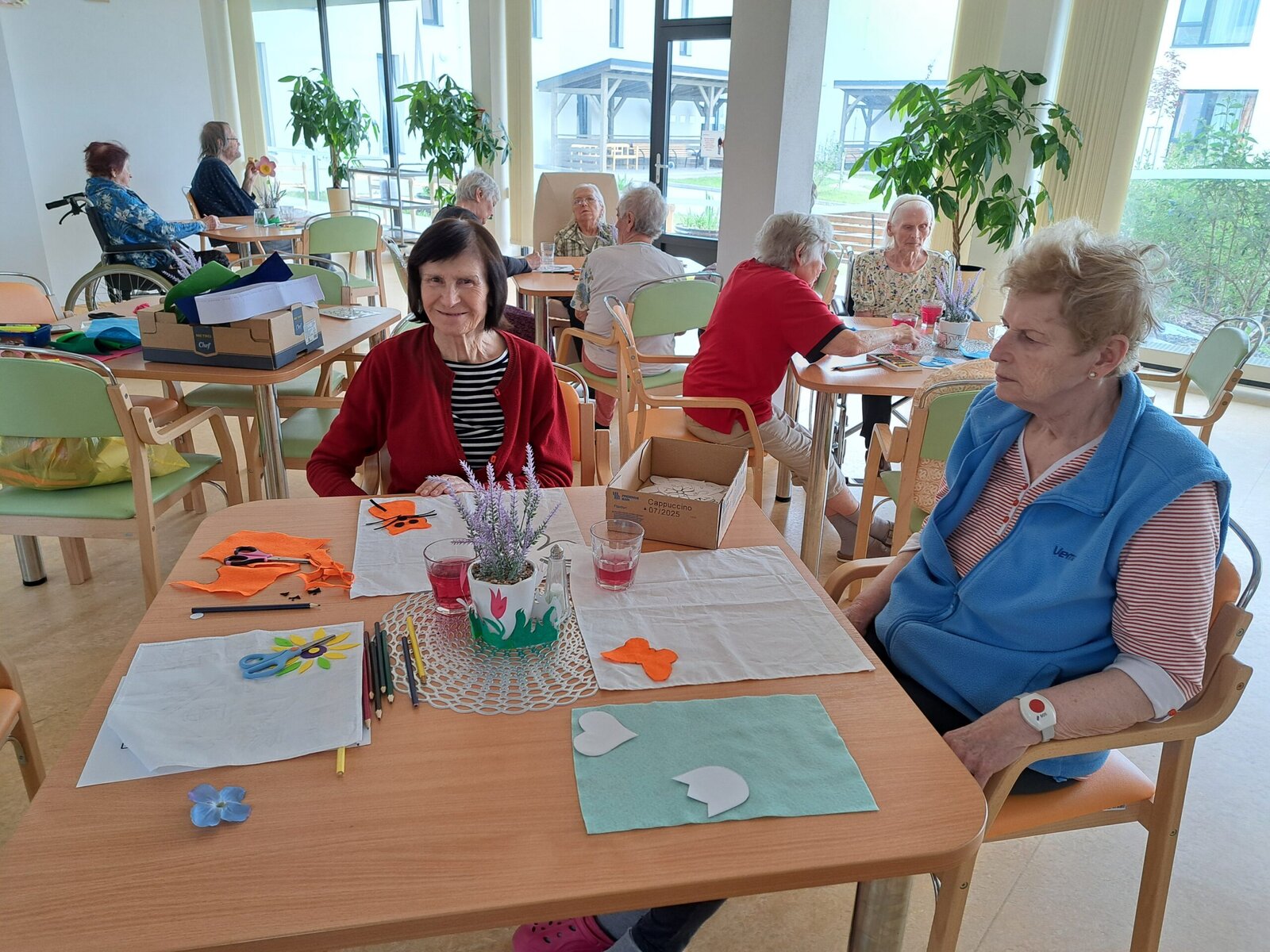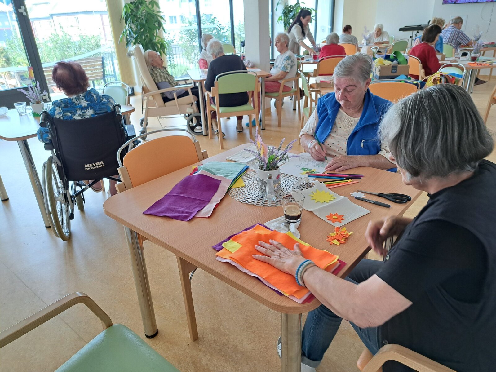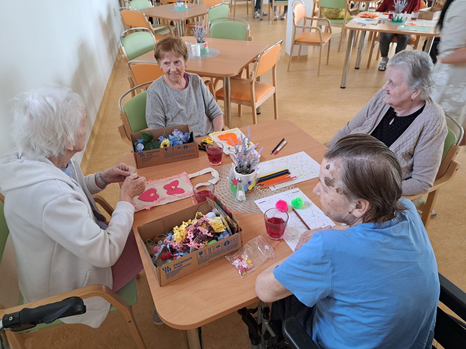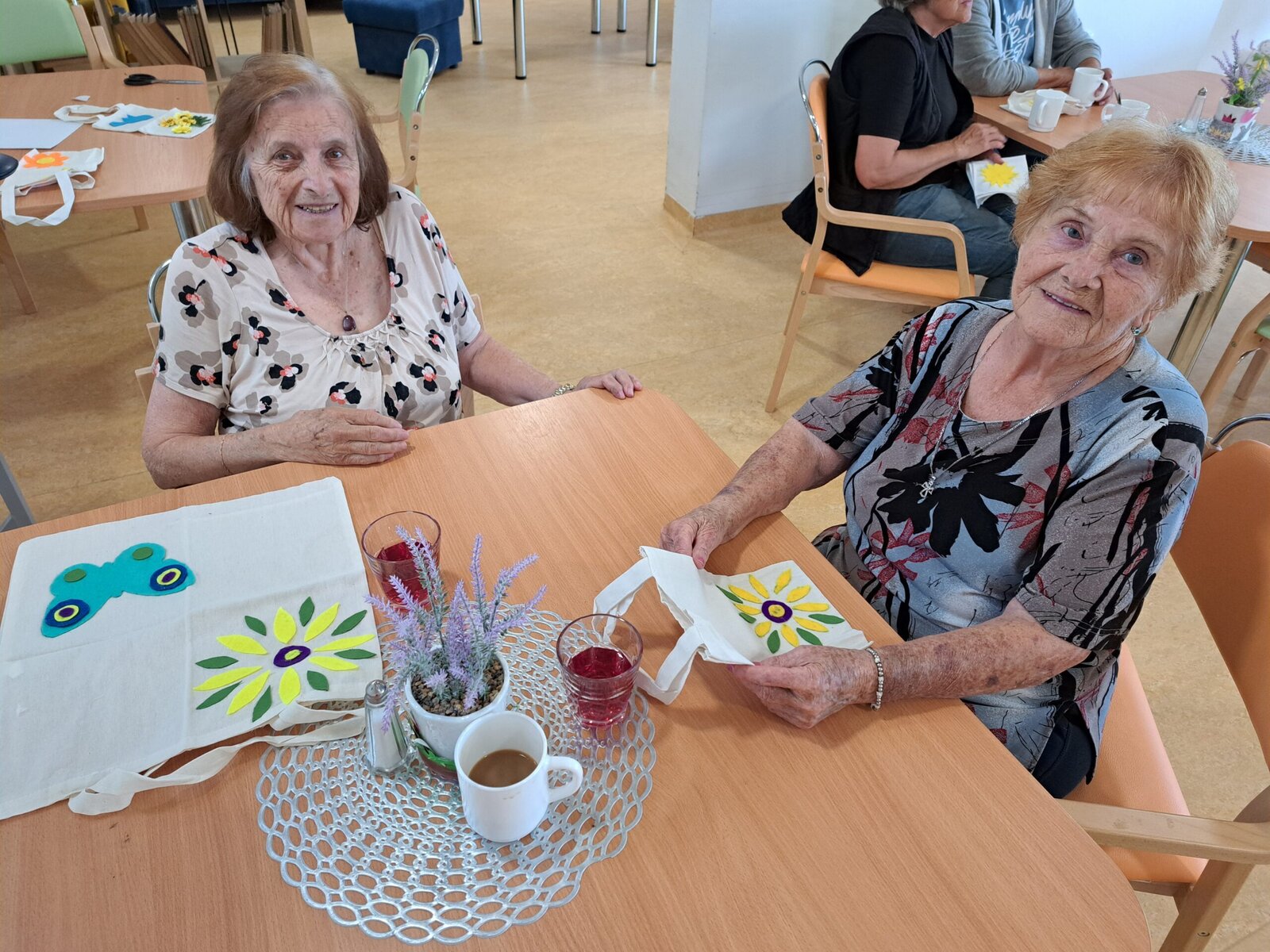 V rámci procvičování jemné motoriky naši klienti Senevida Boskovice společně s aktivizačními pracovnicemi zdobili textilní tašky a ubrousky. Pro tvoření využili flísové odstřižky různého tvaru, které přišívali nebo nalepovali na tašky či ubrousky. Na fotkách můžete vidět, jak jsme si společné tvoření užili a jak se nám výtvory povedly. 😊