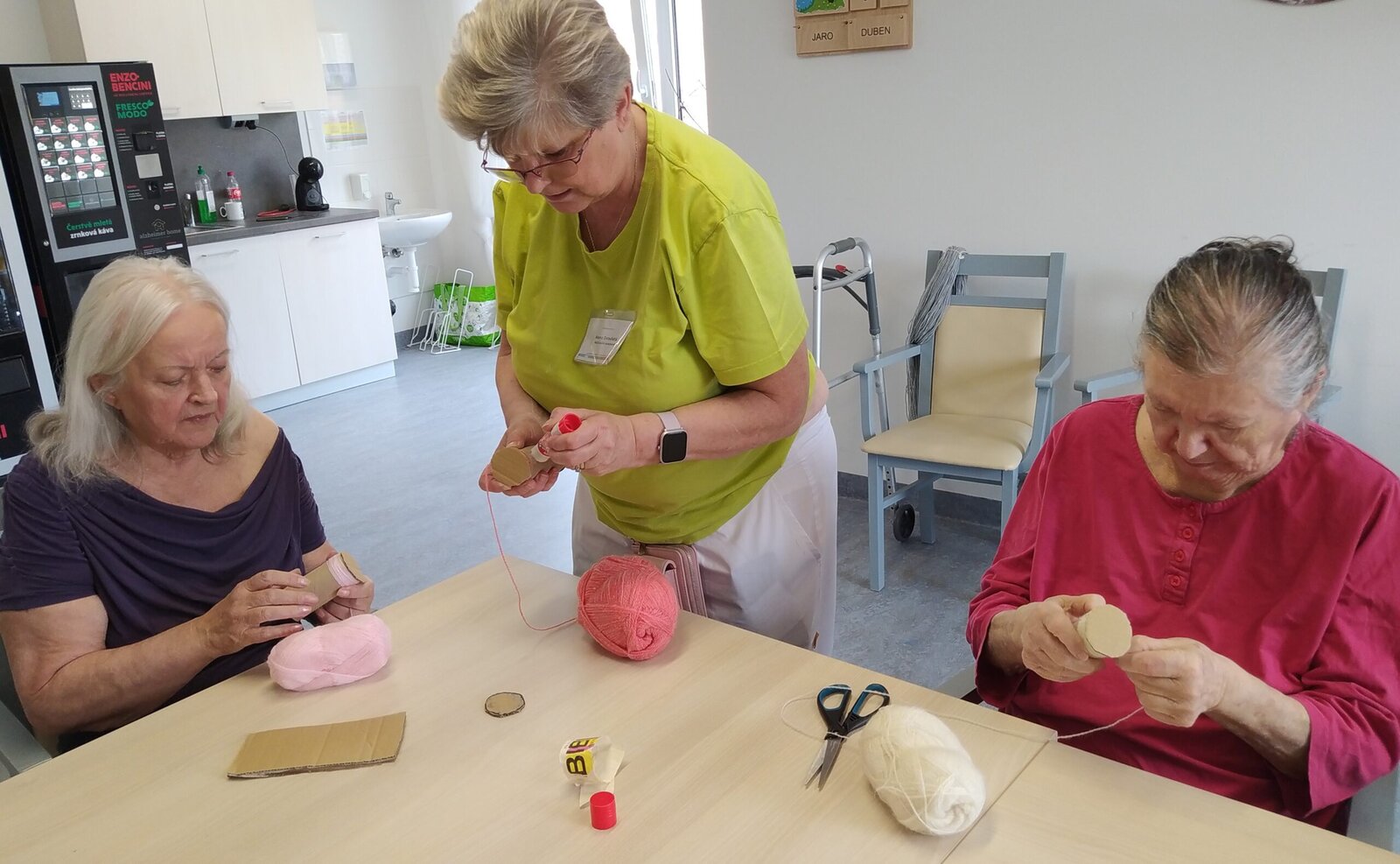 Dnes jsme se vrhli do tvoření rozkošných dárečků pro naše malé kamarády ze školky. 🧒 Děti nám často dělají radost nejen jejich návštěvou ale také tím, že nám často nosí krásné výrobky, které nám zdobí aktivizační místnosti a nástěnky. 😊 Při pohledu na tyto krásné výrobky si vždy vzpomeneme na tyto veselé návštěvy.