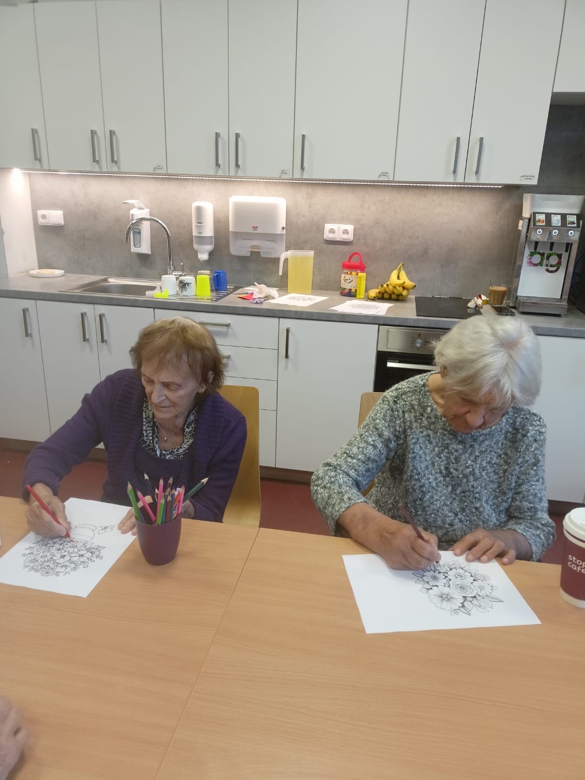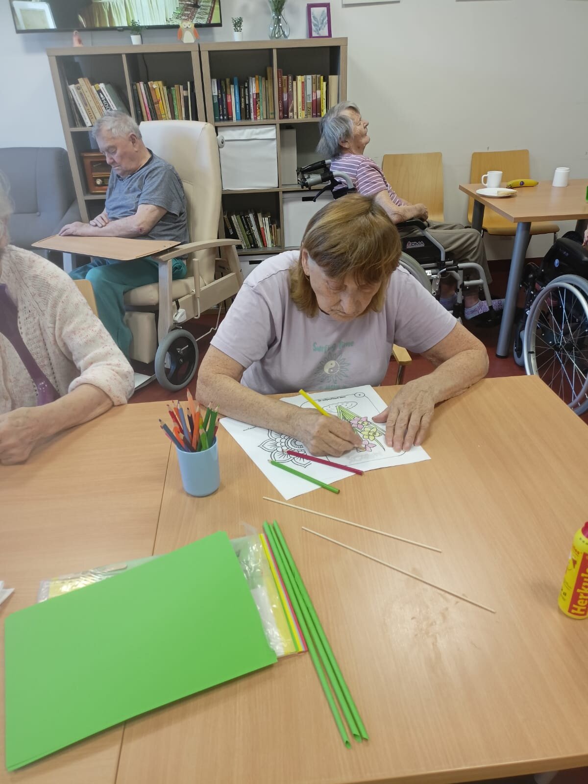 Tyto aktivity pomáhají rozvíjet jemnou motoriku a logické myšlení a navíc posilují přátelské vztahy mezi klienty.✏️🎨