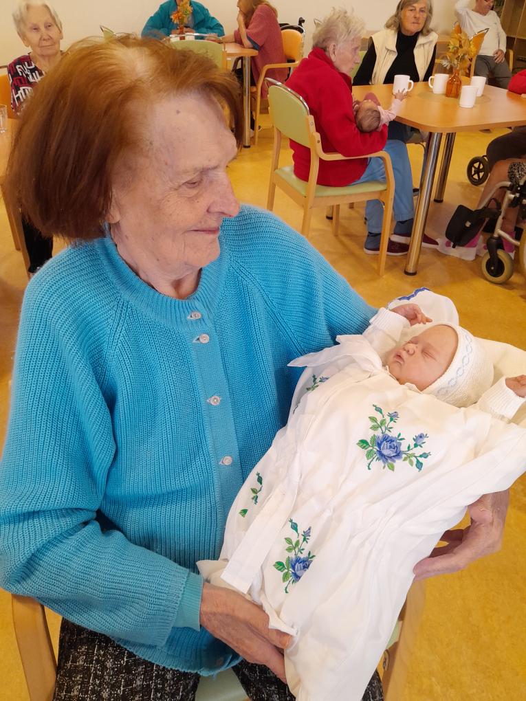 Po poutavé přednášce si mohli klienti každou z panenek pochovat, prohlédnout si je zblízka a vyzkoušet si, jak realisticky působí. Setkání vzbudilo velké nadšení – mnohým připomnělo mládí, rodičovské či prarodičovské vzpomínky, a atmosféra byla plná radosti i dojetí.