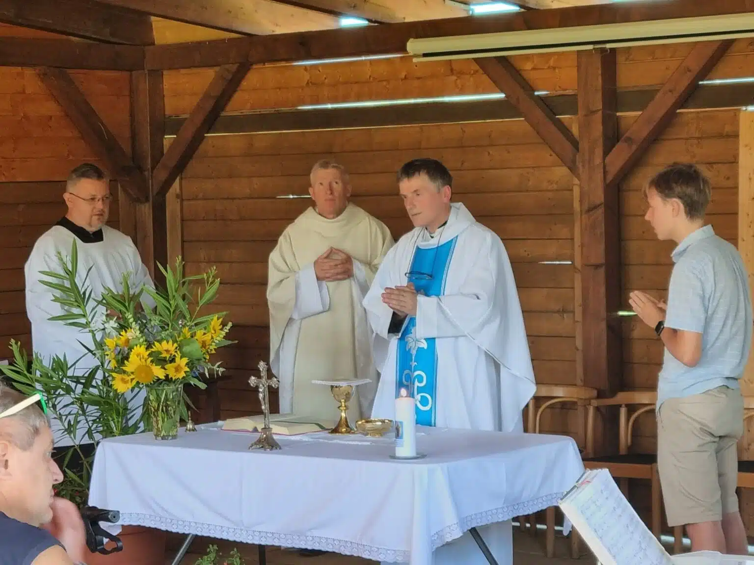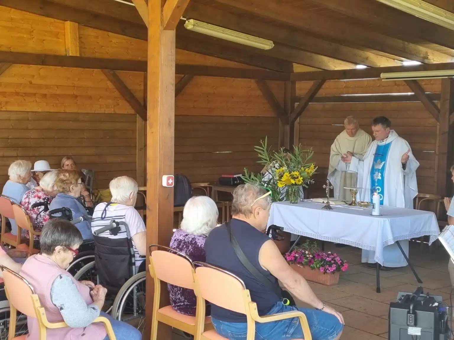 Od 9:30 proběhla pod venkovní pergolou Mše svatá, kterou celebrovali P. Pavel Merta a P. Marek Orko Vácha za účasti klientů, části rodin a zaměstnanců. V době před obědem dostali v první etapě sloužící zaměstnanci domova drobnou upomínku na tento slavnostní den společně s poděkováním za jejich píli a spolupráci při rozvoji Domova. Zároveň v jídelně Domova běžela prezentace s fotkami akcí od cca roku 2019. Rádi jsme si všichni zavzpomínali.