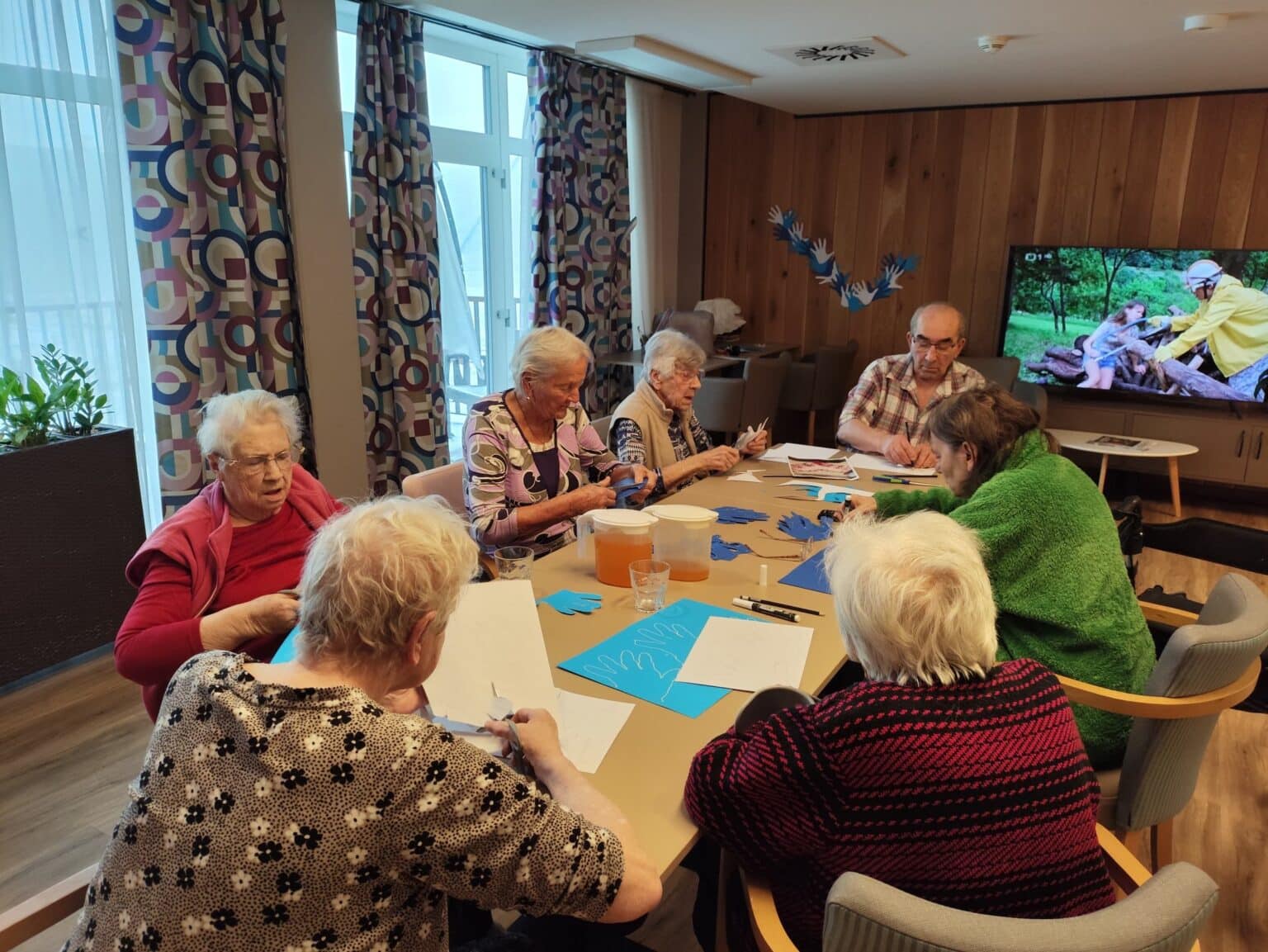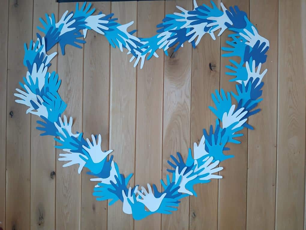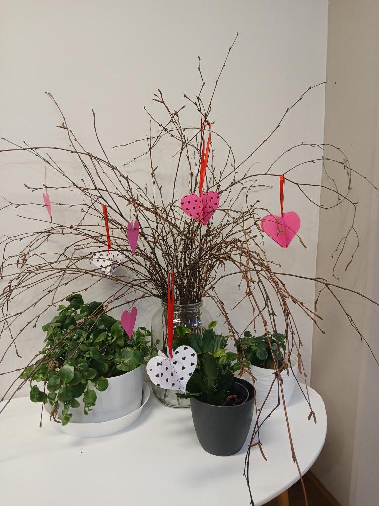 V rámci kreativních dílen se klienti našeho domova zaměřili na oslavu svatého Valentýna. Vyrobili papírová skládací srdce, která nyní zdobí větvičky na domácnostech a sesternách. Dále vytvořili velké srdce z vystřižených otisků svých rukou, v modro-bílé barvě, která symbolizuje barvy našeho domova SeneCura.