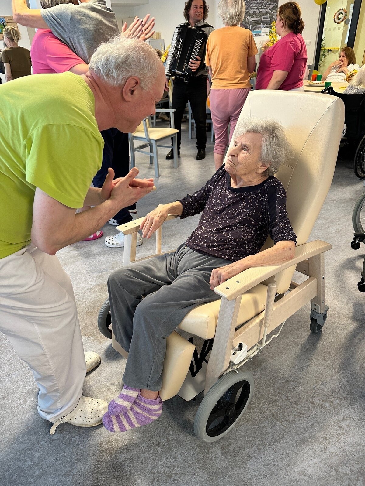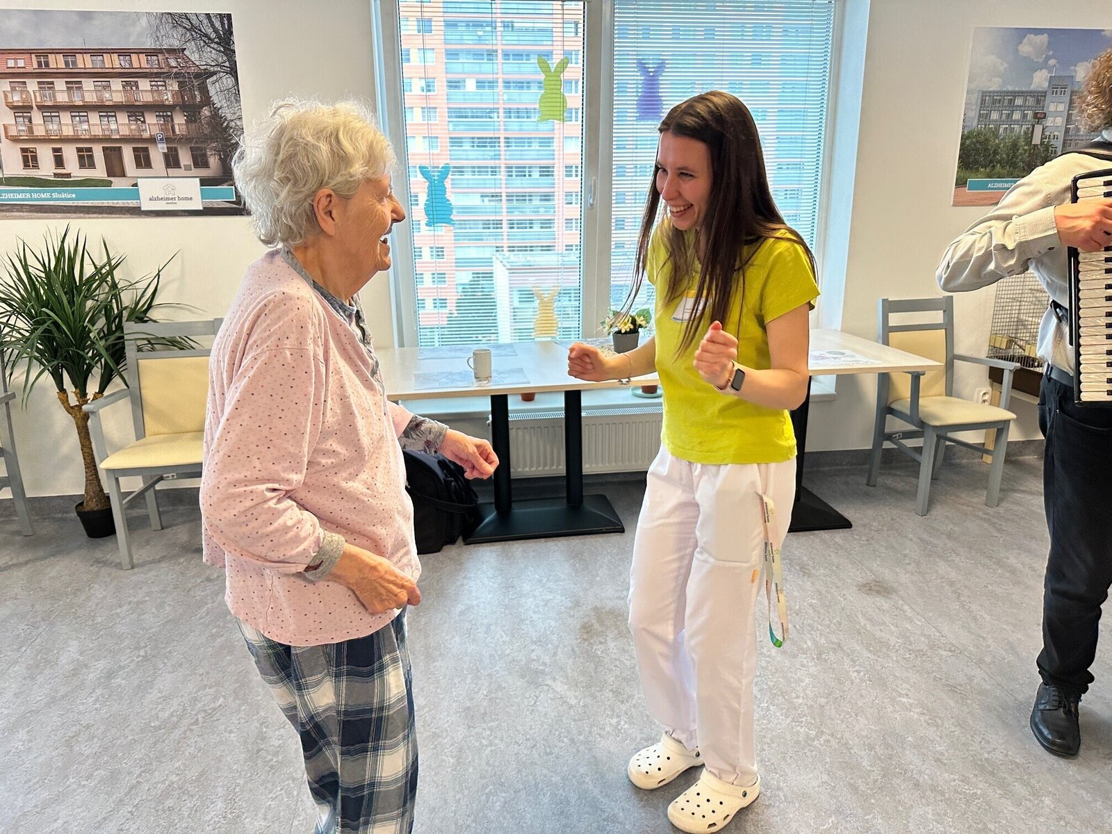 V Senevida Jasmín jsme spojili narozeninovou oslavu s oslavou Velikonoc. 🤩 Při této příležitosti jsme společně hudbou, zpěvem a tancem přivítali jaro pěkně zvesela! 😊 Za hudební doprovod opět chceme poděkovat panu Radku Andělovi a zároveň největší dík patří našim klientům, kteří se rozhodli si oslavu užít naplno a protančili s námi střevíce.