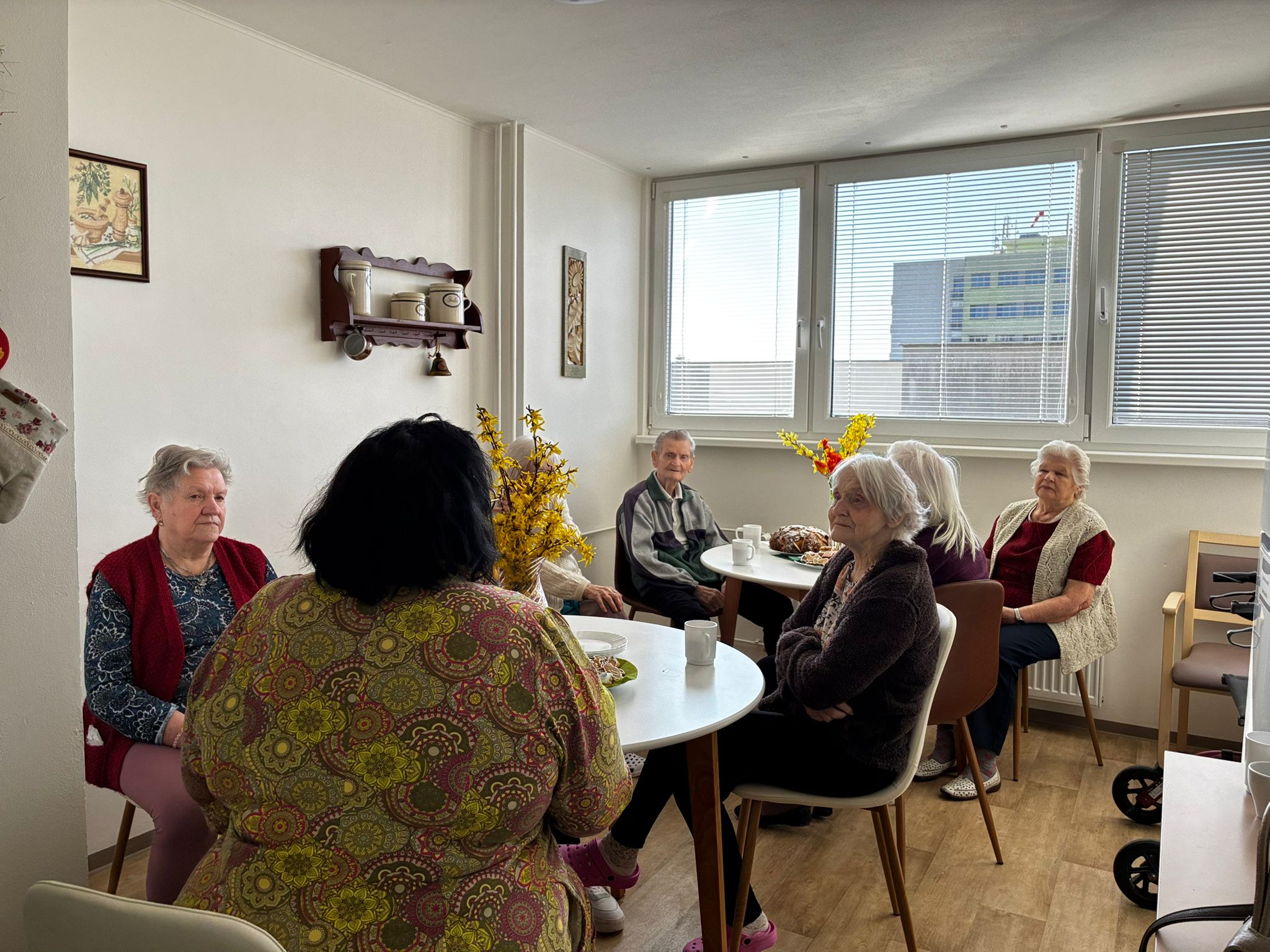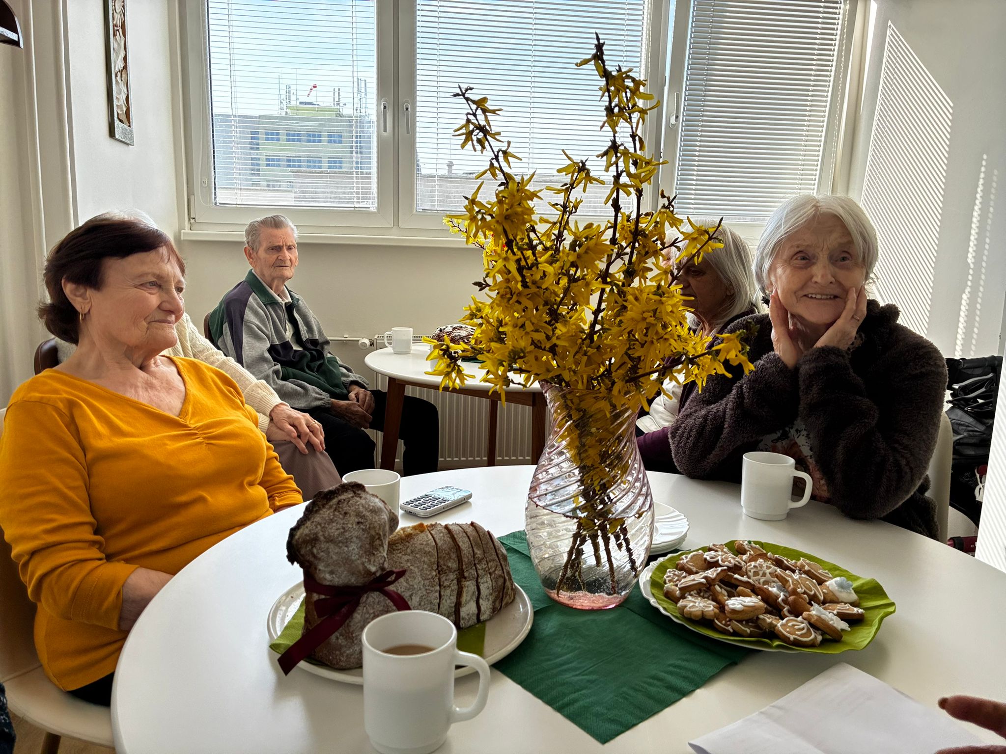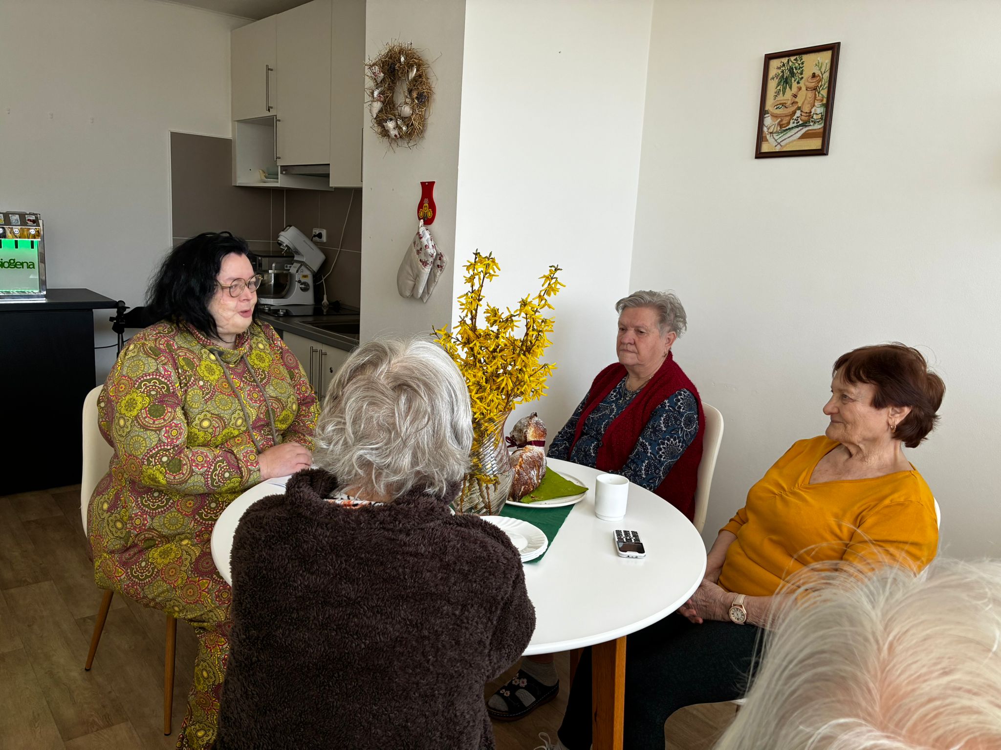 Na fotografiích zachycujeme příjemné chvíle, kdy si naše klientky a klienti společně s paní farářkou povídali o významu Velikonoc, jejich tradicích a zvycích. Setkání bylo doplněno o milé velikonoční pohoštění, které si klienti sami s radostí připravili a napekli.