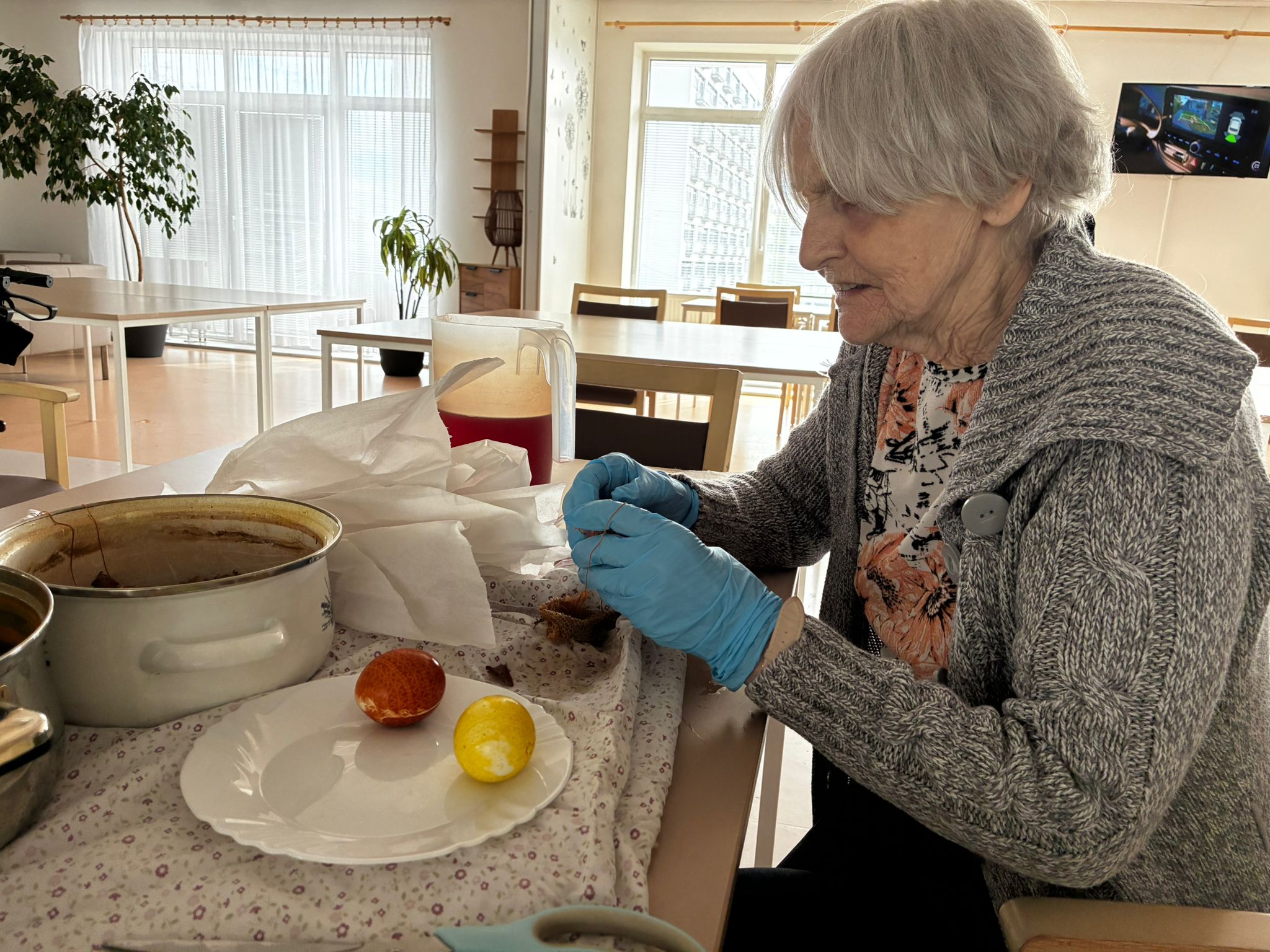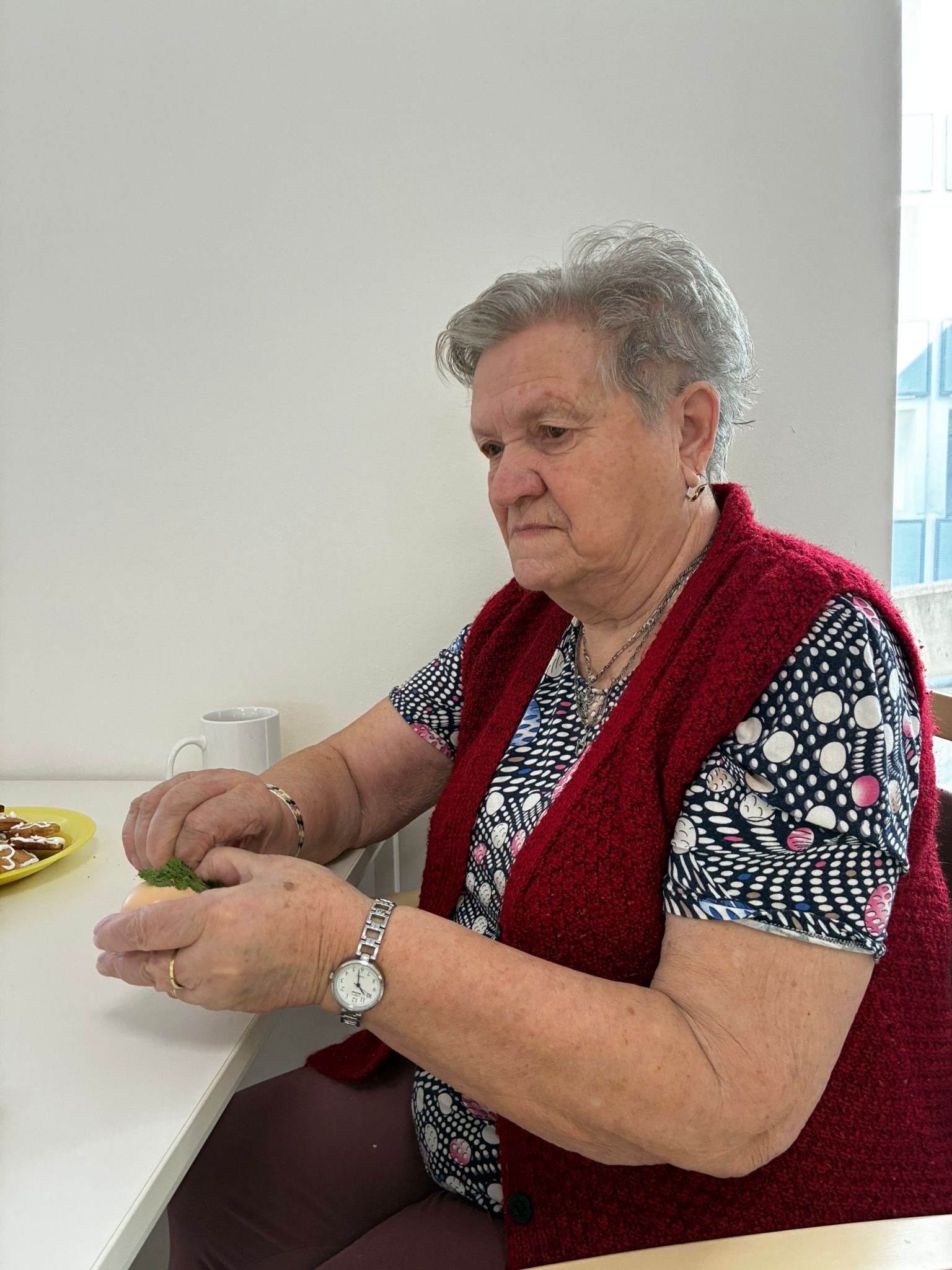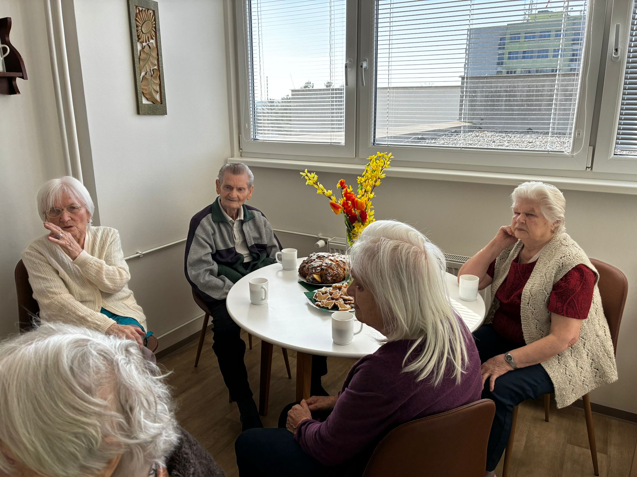 Na fotografiích zachycujeme příjemné chvíle, kdy si naše klientky a klienti společně s paní farářkou povídali o významu Velikonoc, jejich tradicích a zvycích. Setkání bylo doplněno o milé velikonoční pohoštění, které si klienti sami s radostí připravili a napekli.