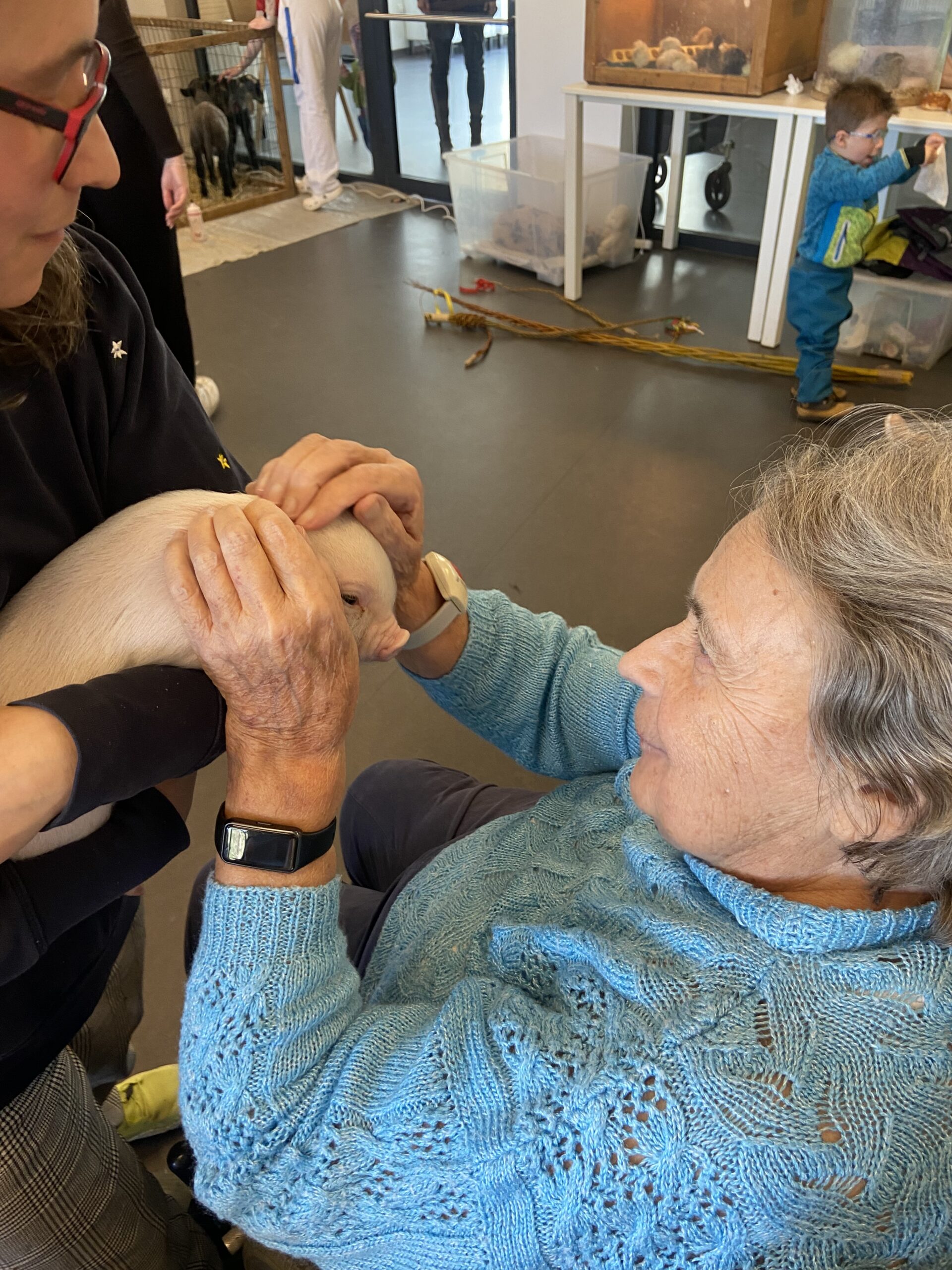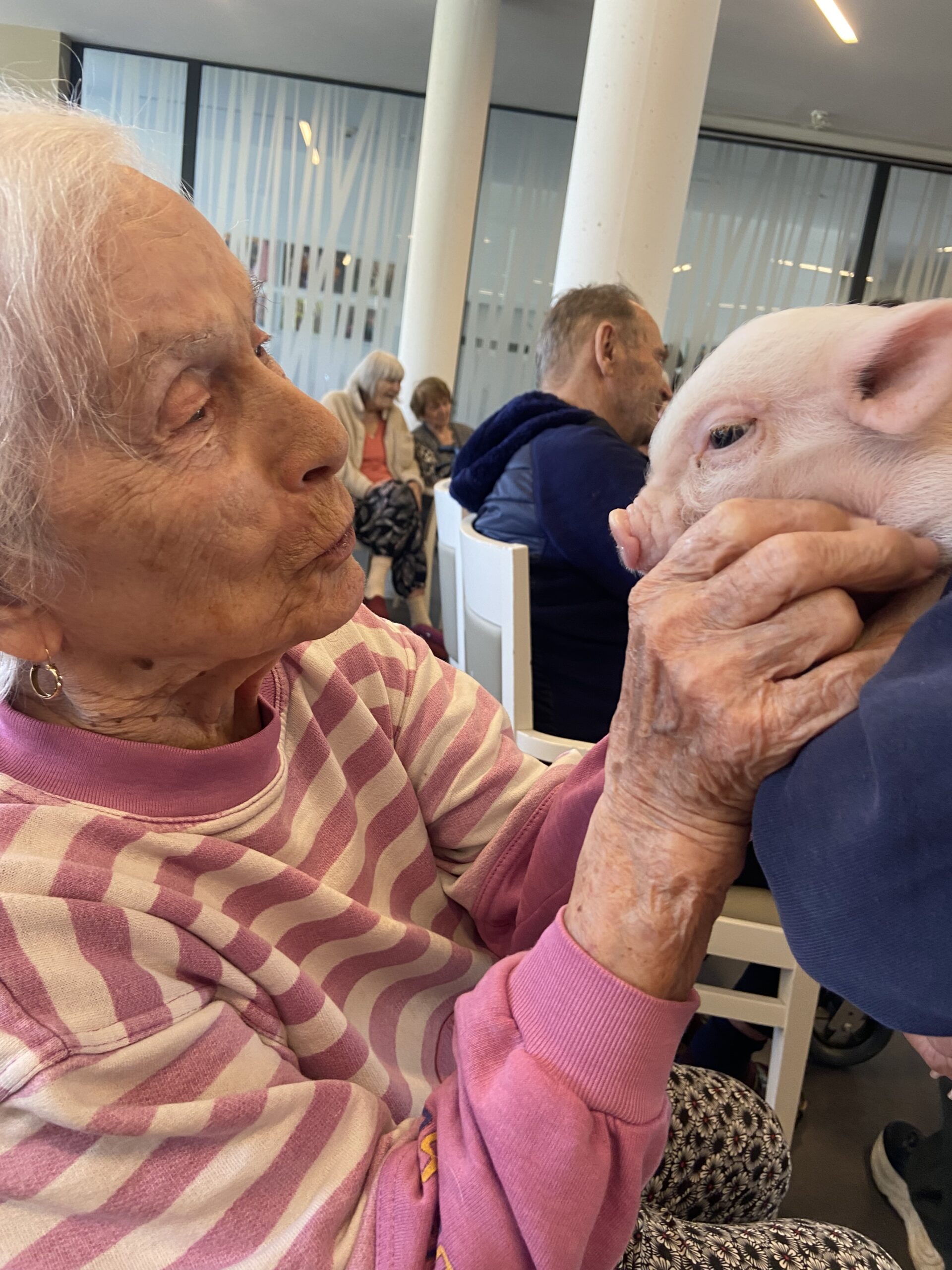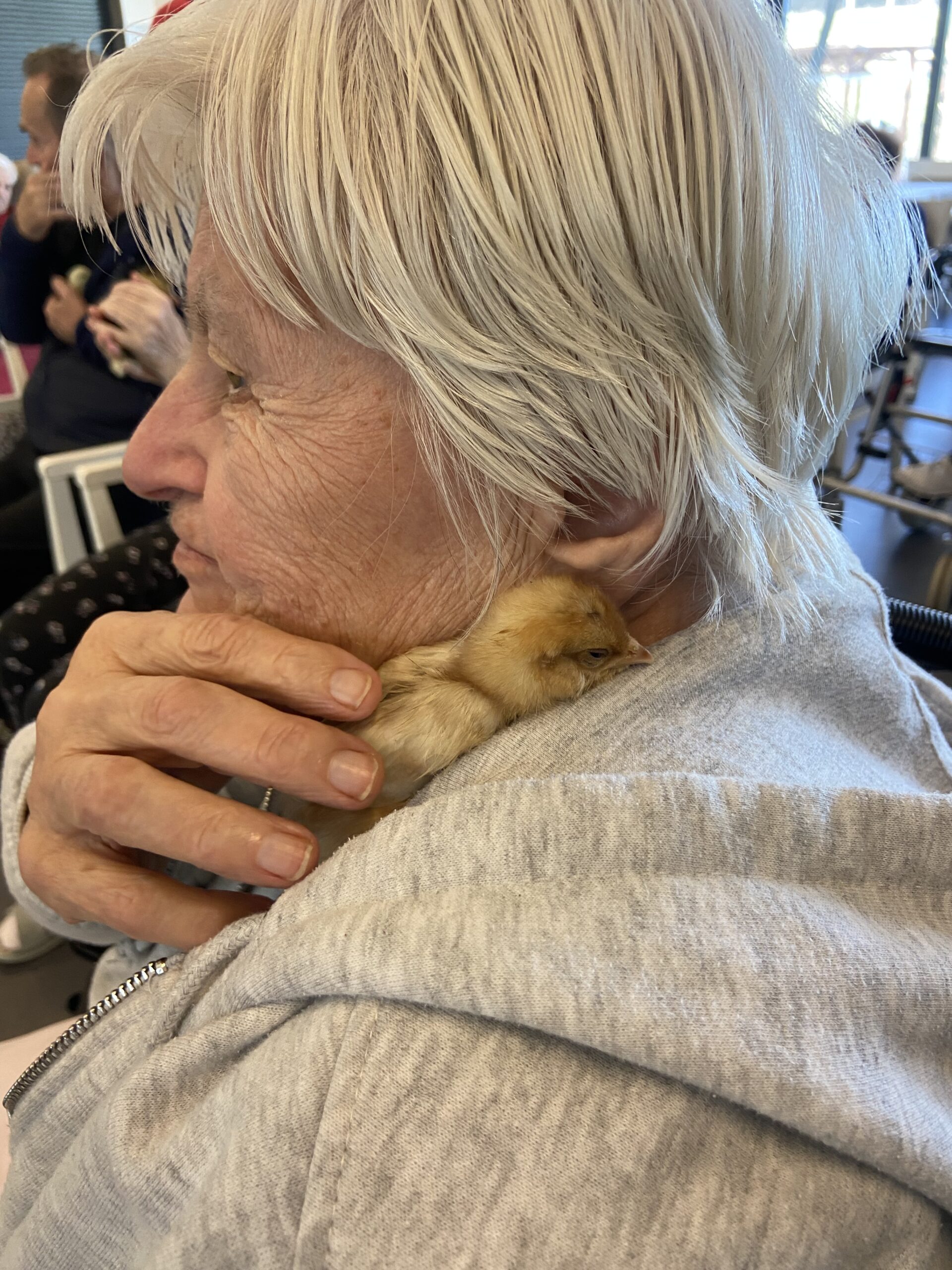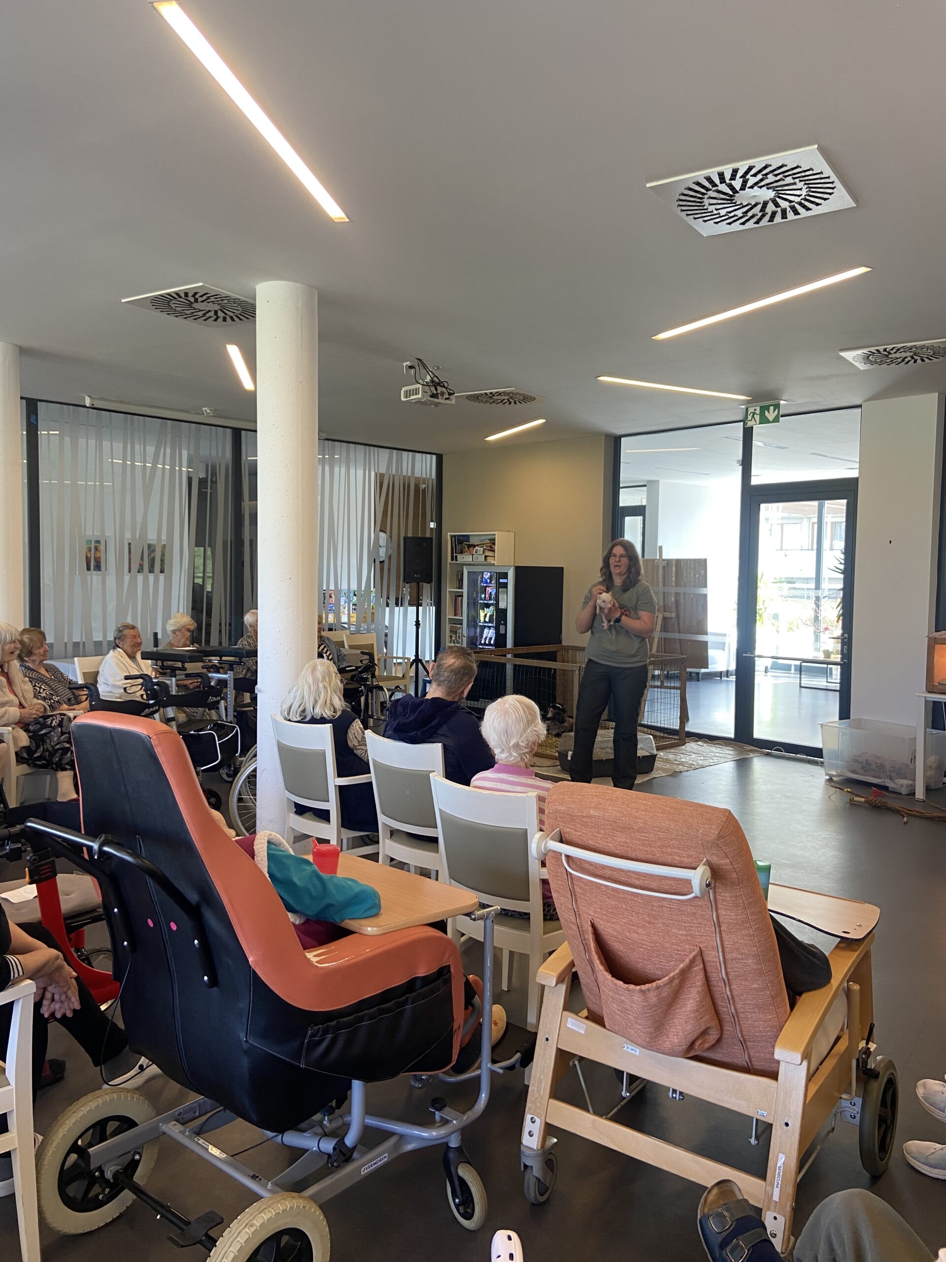 Ve čtvrtek 2. 4. se naše jídelna proměnila v malou venkovskou farmu. Do domova za námi přijeli paní z Vysočiny s interaktivním programem minizoo. Paní přednášela o Velikonocích, jejich tradicích a zvycích. Klienti se aktivně zapojovali, odpovídali na otázky a společně vzpomínali na to, jak se tyto svátky slavily dříve.