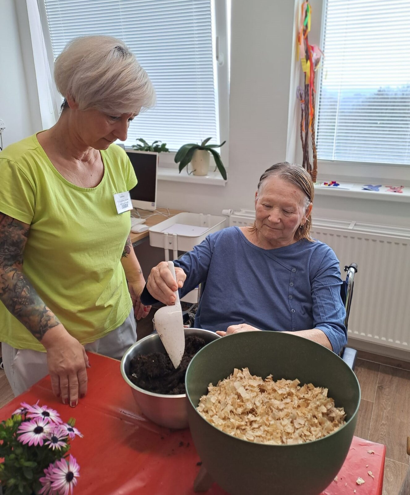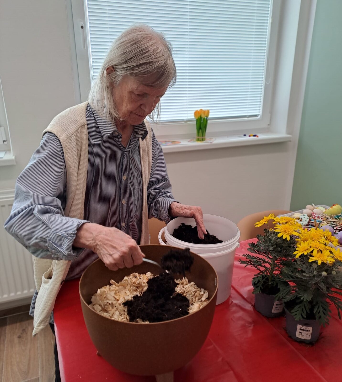S našimi klienty Senevida Ostrov jsme si společně užili příjemné poledne plné jarní atmosféry. Zdobily se velikonoční truhlíky – sázeli jsme květiny a přidávali tematickou výzdobu, která krásně doladila celkový dojem. Nechyběla ani veselá nálada, smích a povídání. A protože se blíží Velikonoce, nechali jsme se unést tradicí a „nanečisto“ jsme si vyzkoušeli i pomlázku. 😀🐣