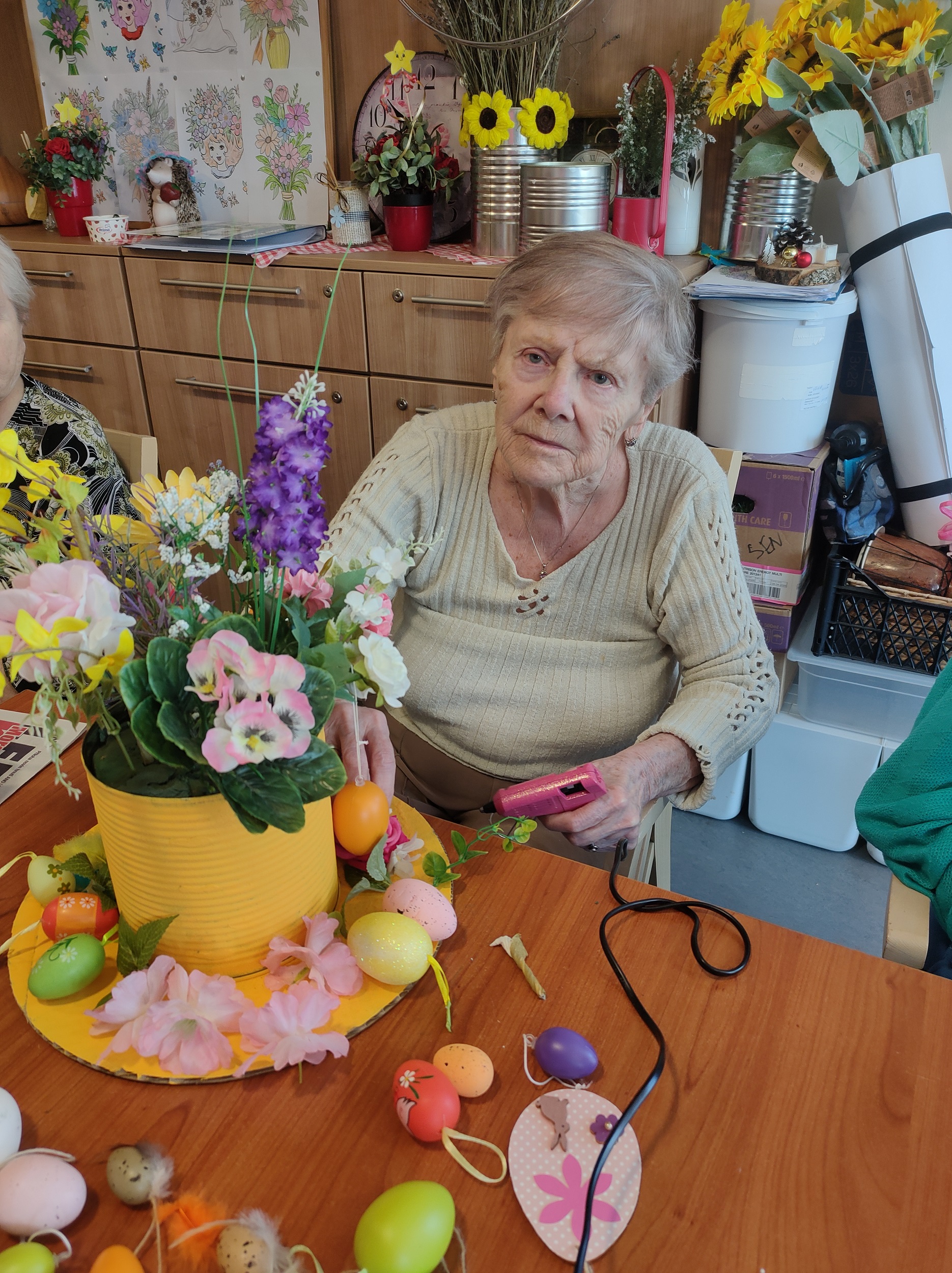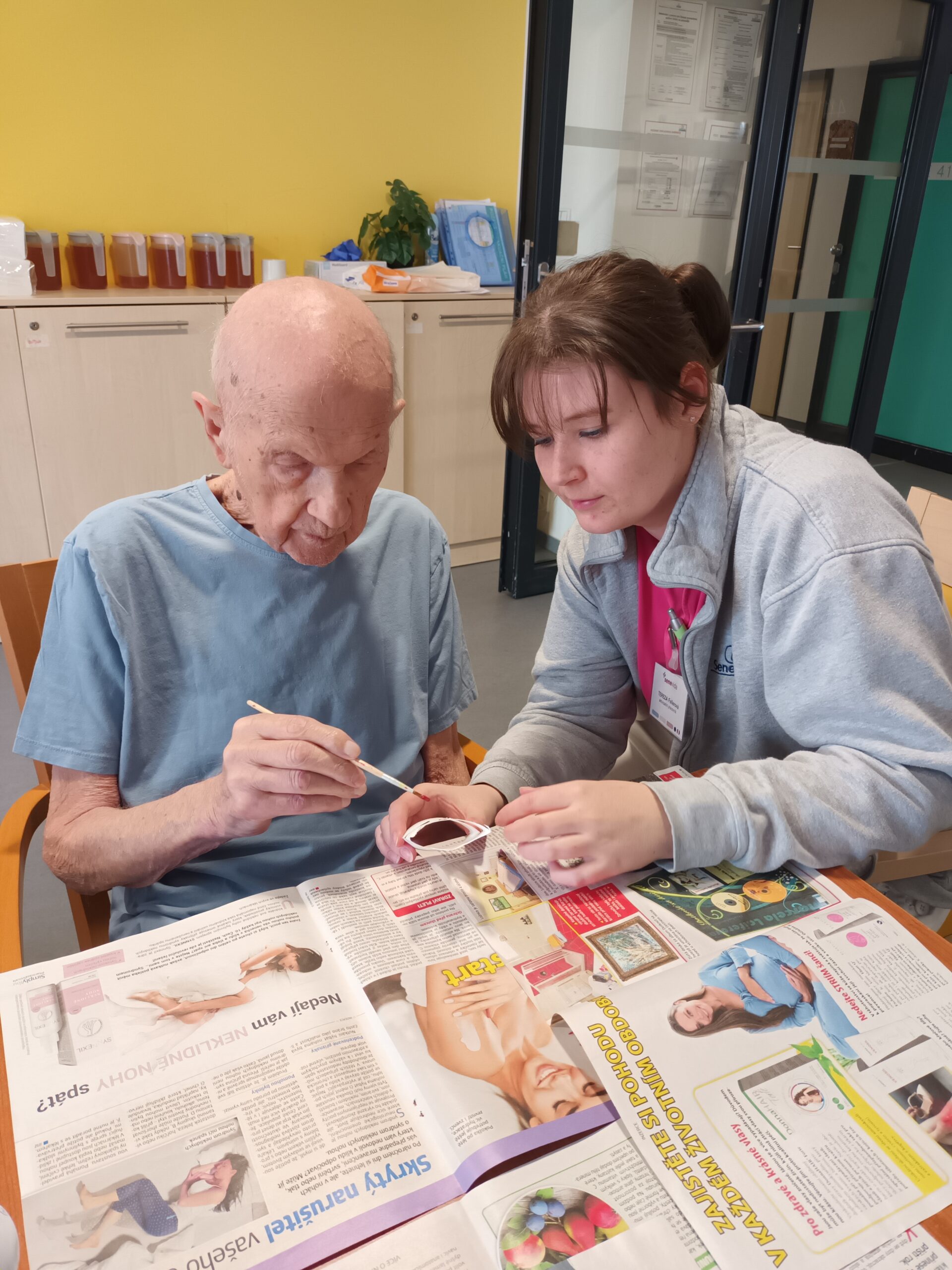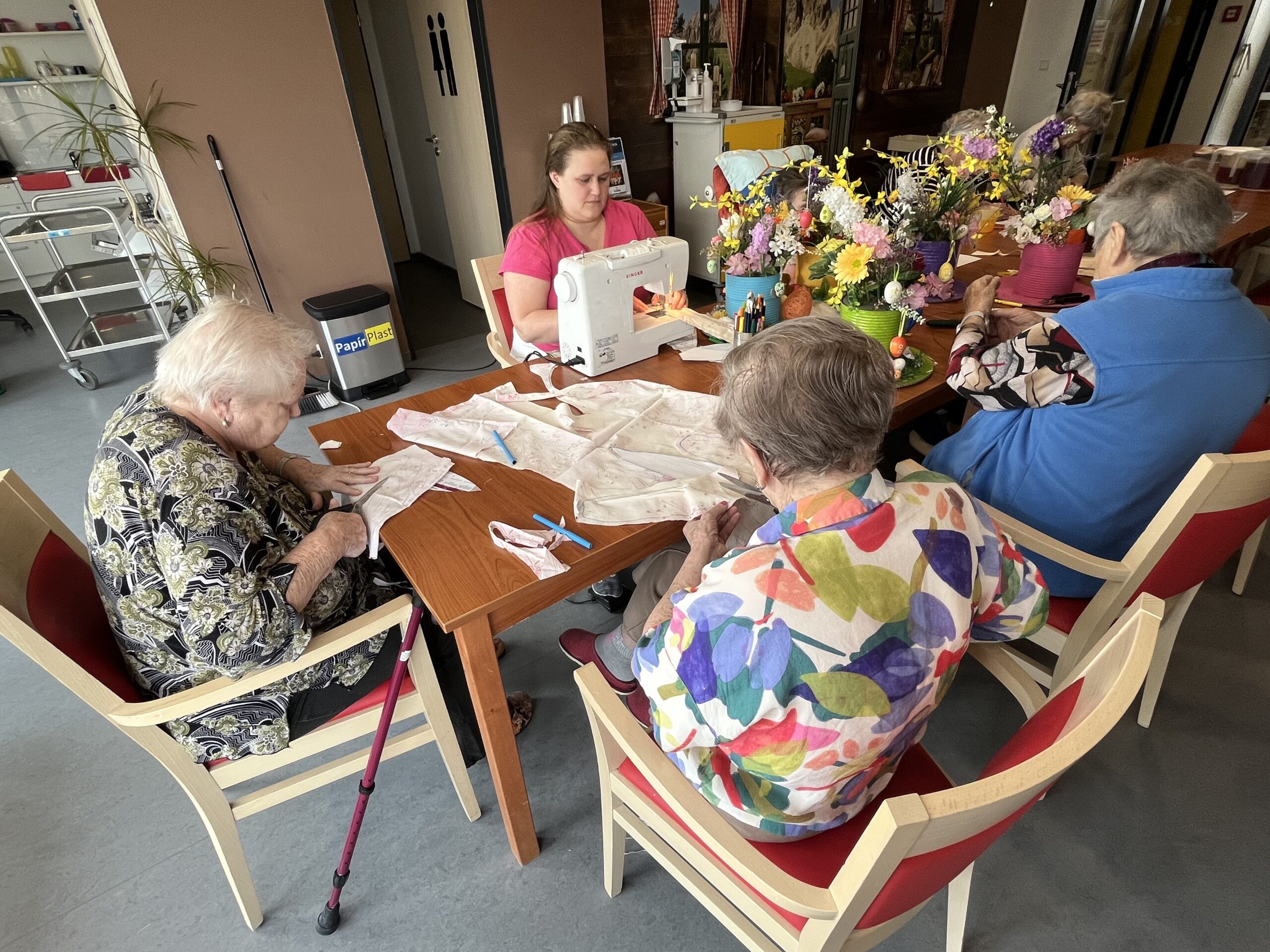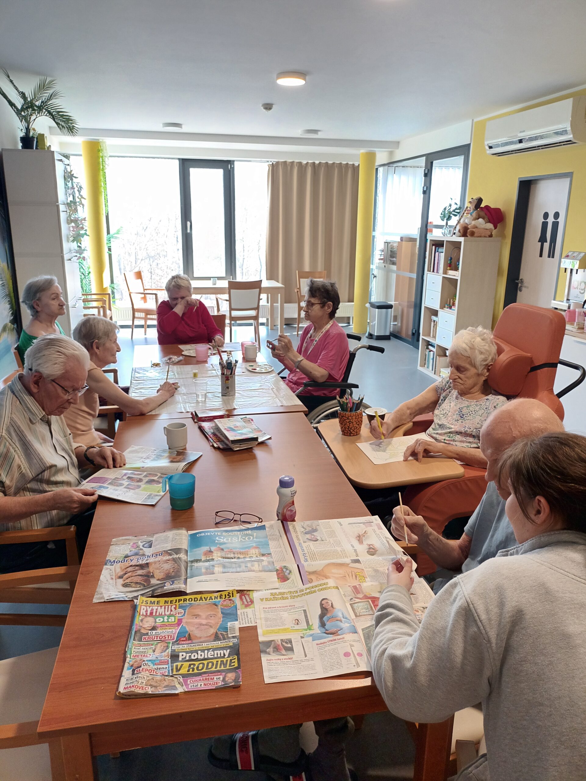 Každý přispěl dle svých možností. Pro zkrácení dlouhé chvíle jsme pro naše klienty připravili i množství nejrůznějších omalovánek, samozřejmě opět s motivem květin, jara a Velikonoc. Při výzdobě domova jsme nezapomněli ani na tradiční kočičky či zlatý déšť. Všichni jsme se tak postupně ladili na přicházející jaro a sváteční čas.