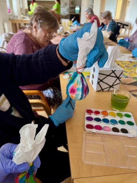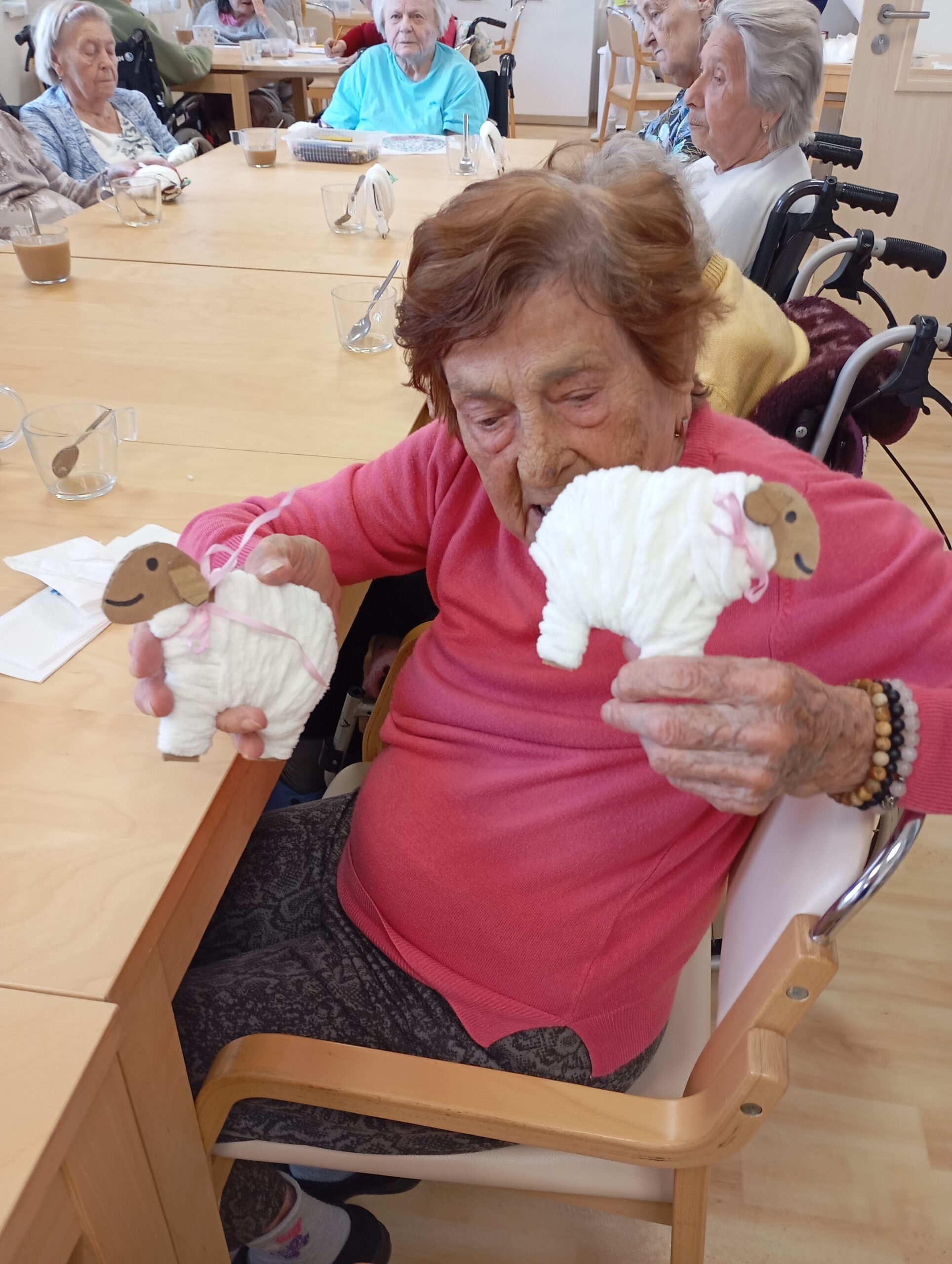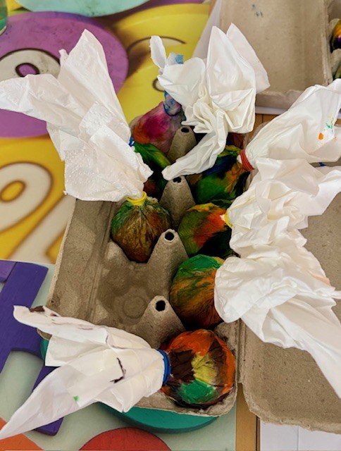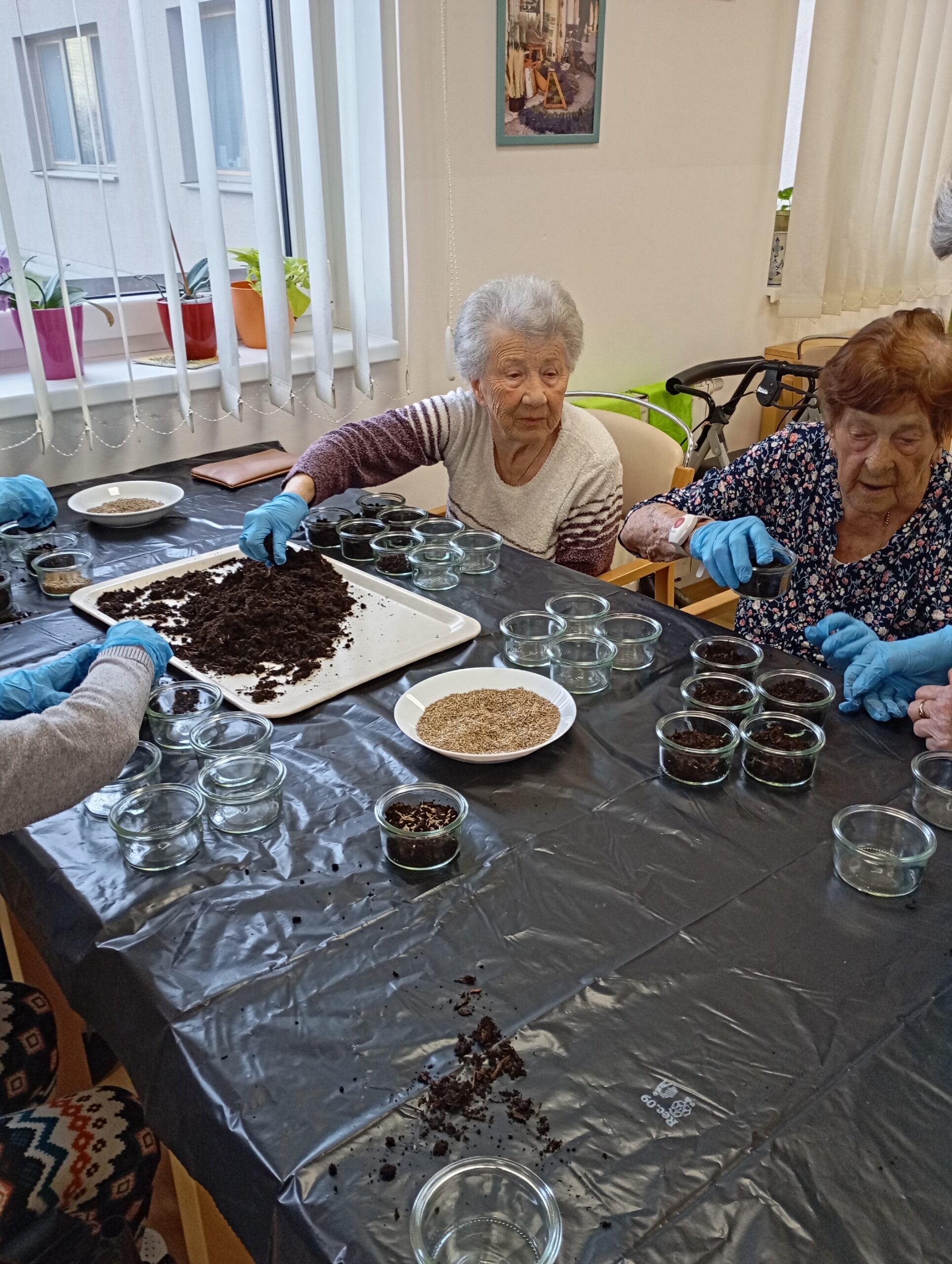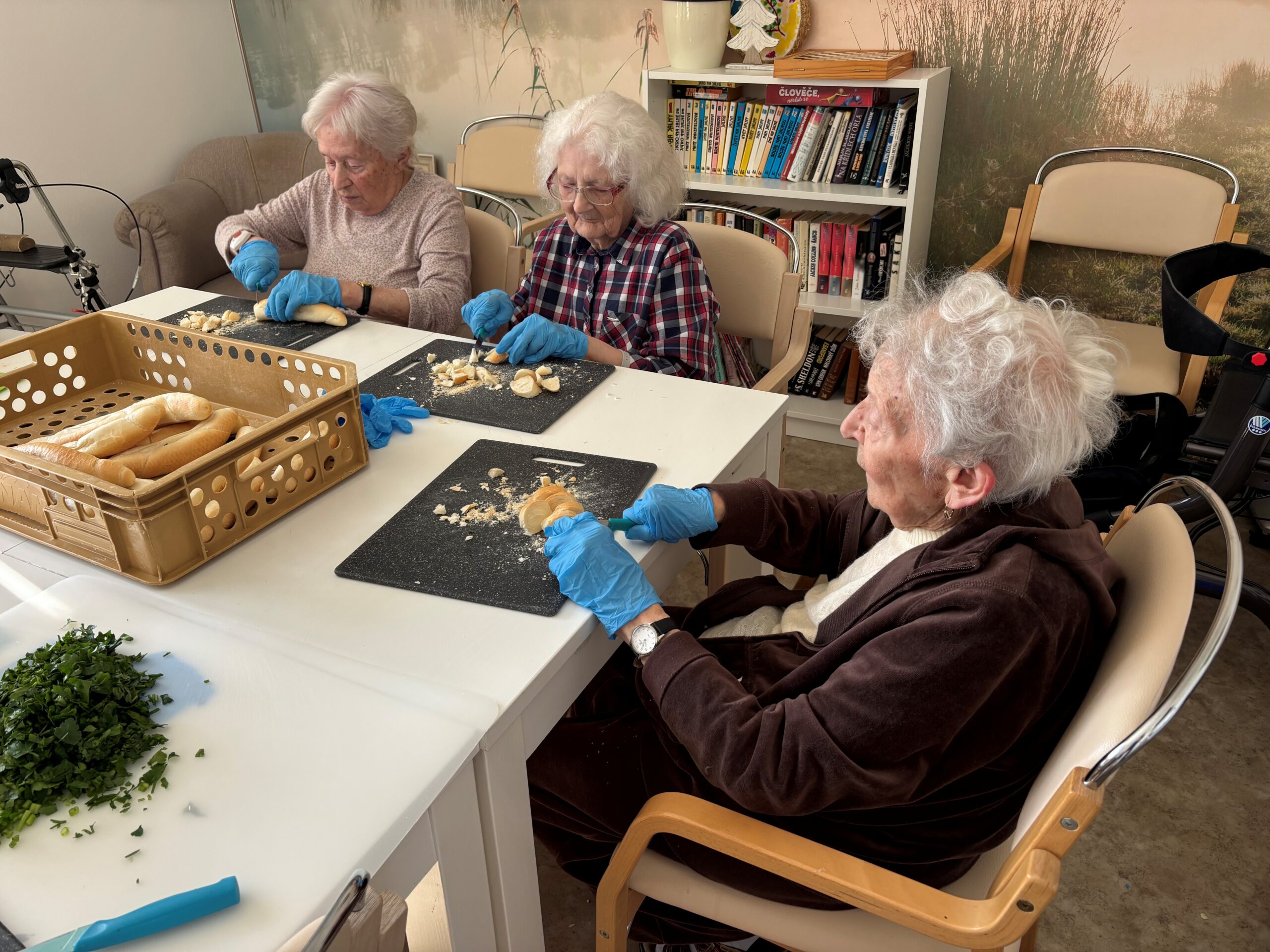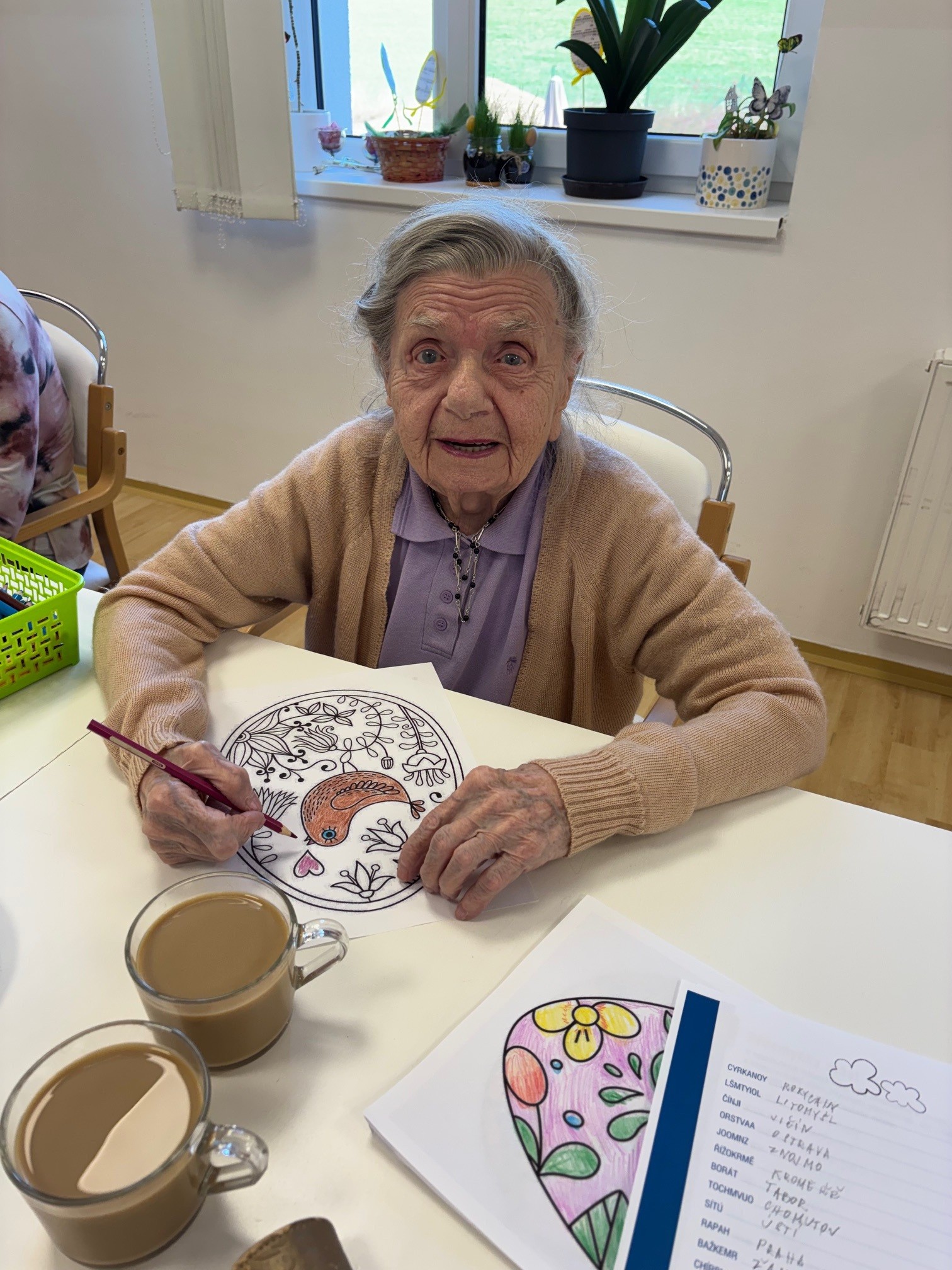 V letošním roce naše klientky přípravu na svátky velikonoční opravdu nepodcenily. Aktivit na toto téma si užily v hojné míře. Začínalo to sázením osení do kelímků. Do nich si vyráběly ozdobná barevná zapichovátka ve tvaru vajíček. Jimi si vyzdobily své pokoje.