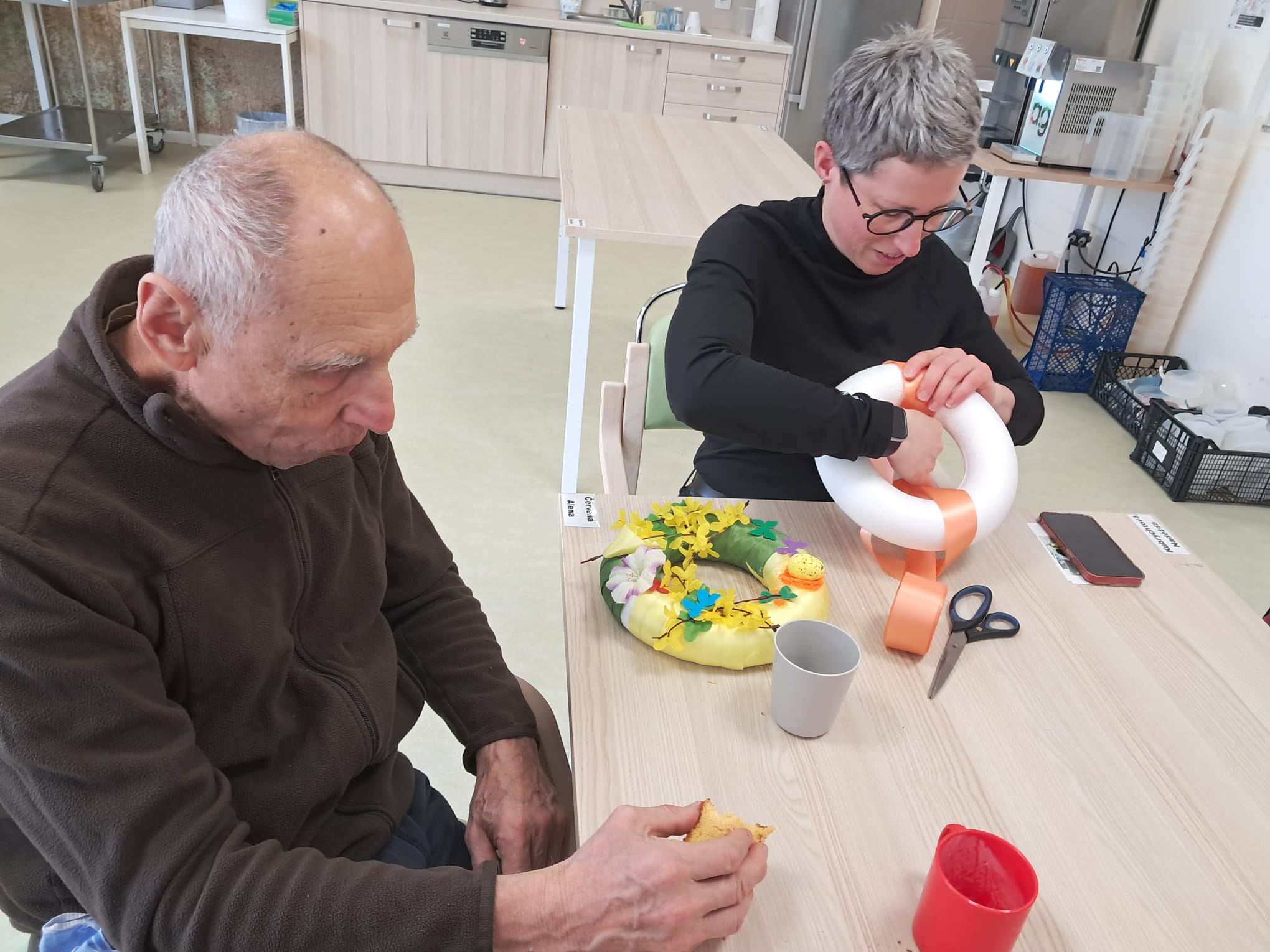 Klienti si užili společné chvíle při výrobě jarních a velikonočních dekorací a hlavně přítomnost svých blízkých, která odpoledni dodala hřejivou atmosféru.