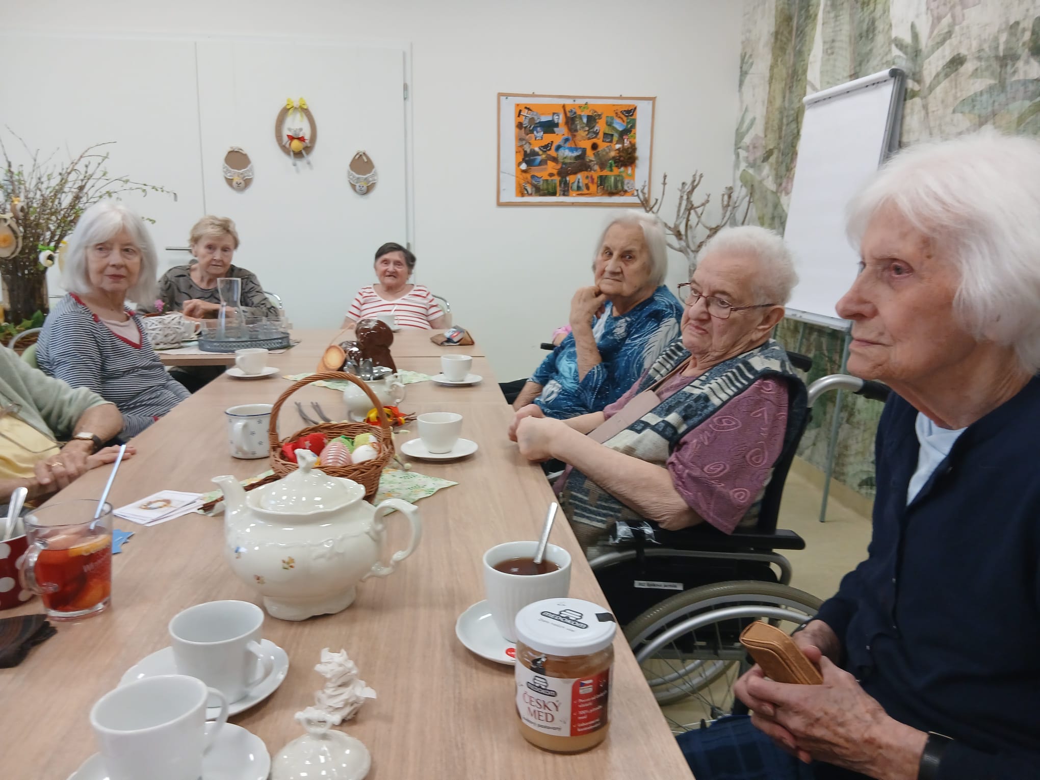 Povídali jsme si o malování vajíček, pletení pomlázek i o koledování. Každý přidal svou vzpomínku a společně jsme si připomněli, jak krásné tyto svátky vždy byly. Nakonec jsme vytvořili velikonoční koláž.