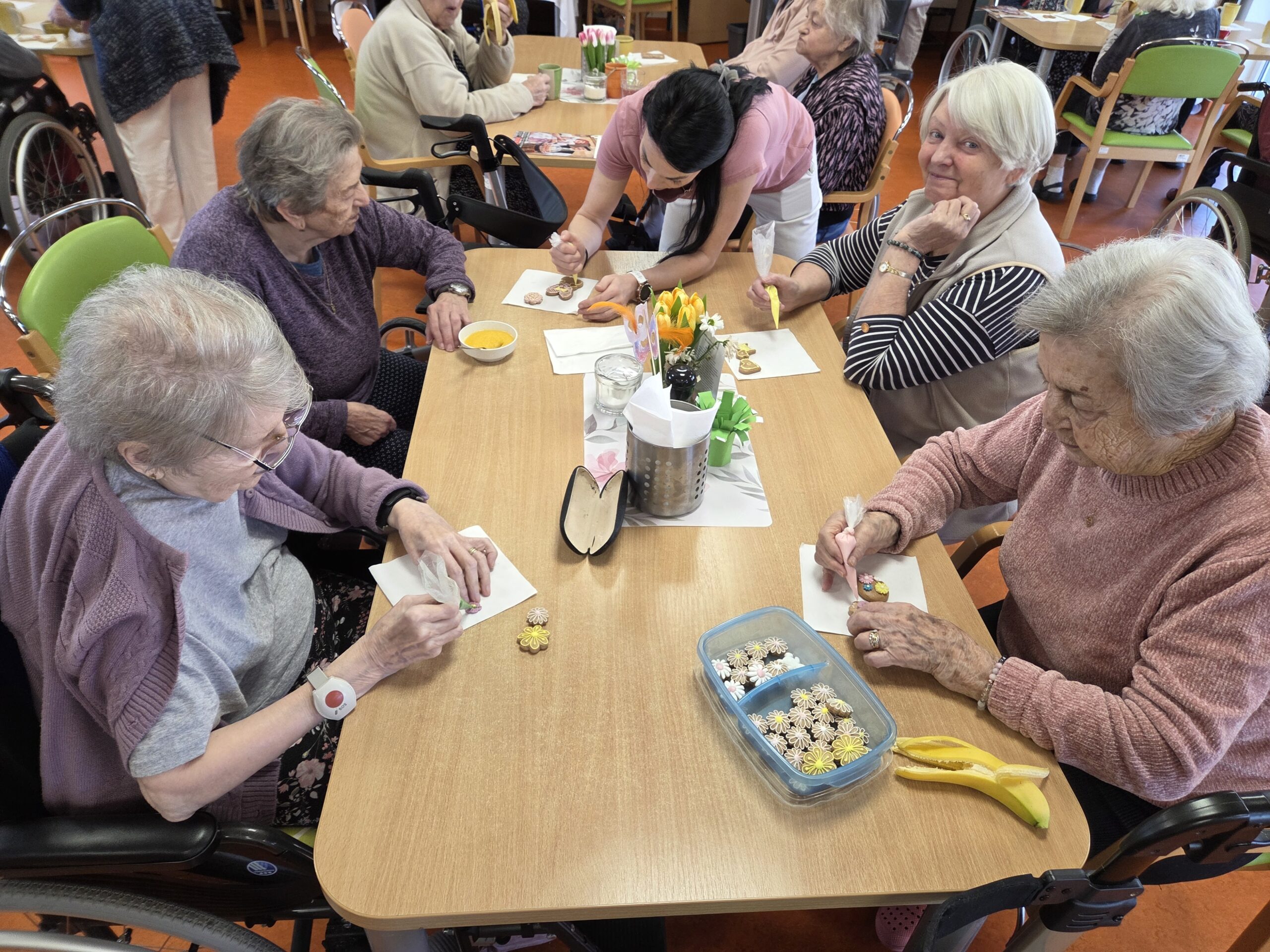 V pondělním dopoledni se v Senevida Olomouc nesla příjemná předvelikonoční atmosféra ve znamení tradic, vůní a tvořivosti. Klienti se zapojili do zdobení velikonočních perníčků i výroby tradičních beránků, které k tomuto období neodmyslitelně patří.