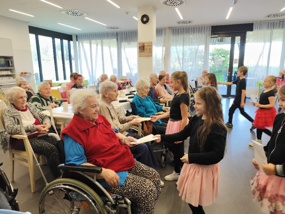 V Senevida Havířov se konala radostná akce, kdy k nám zavítaly děti z 2. třídy ZŠ Moravská. Mladí umělci nám představili několik moderních tanců na populární písničky, které všechny přítomné nadchly. Jejich nadšení a energie se rychle přenesly i na naše klienty. Děti poté zazpívaly známou písničku „Pátá“. Atmosféra byla plná smíchu a vzpomínek, když se k nim připojili i naši klienti a zpívali lidové písničky, které mají rádi.