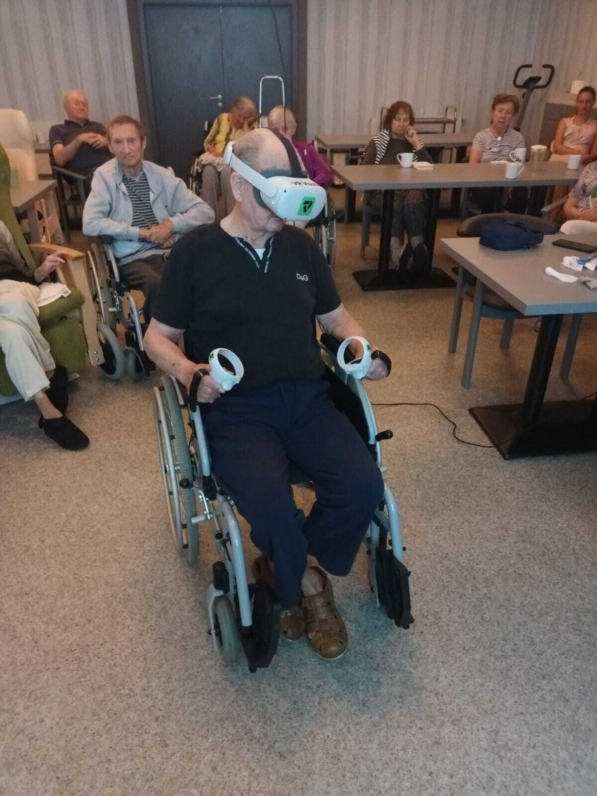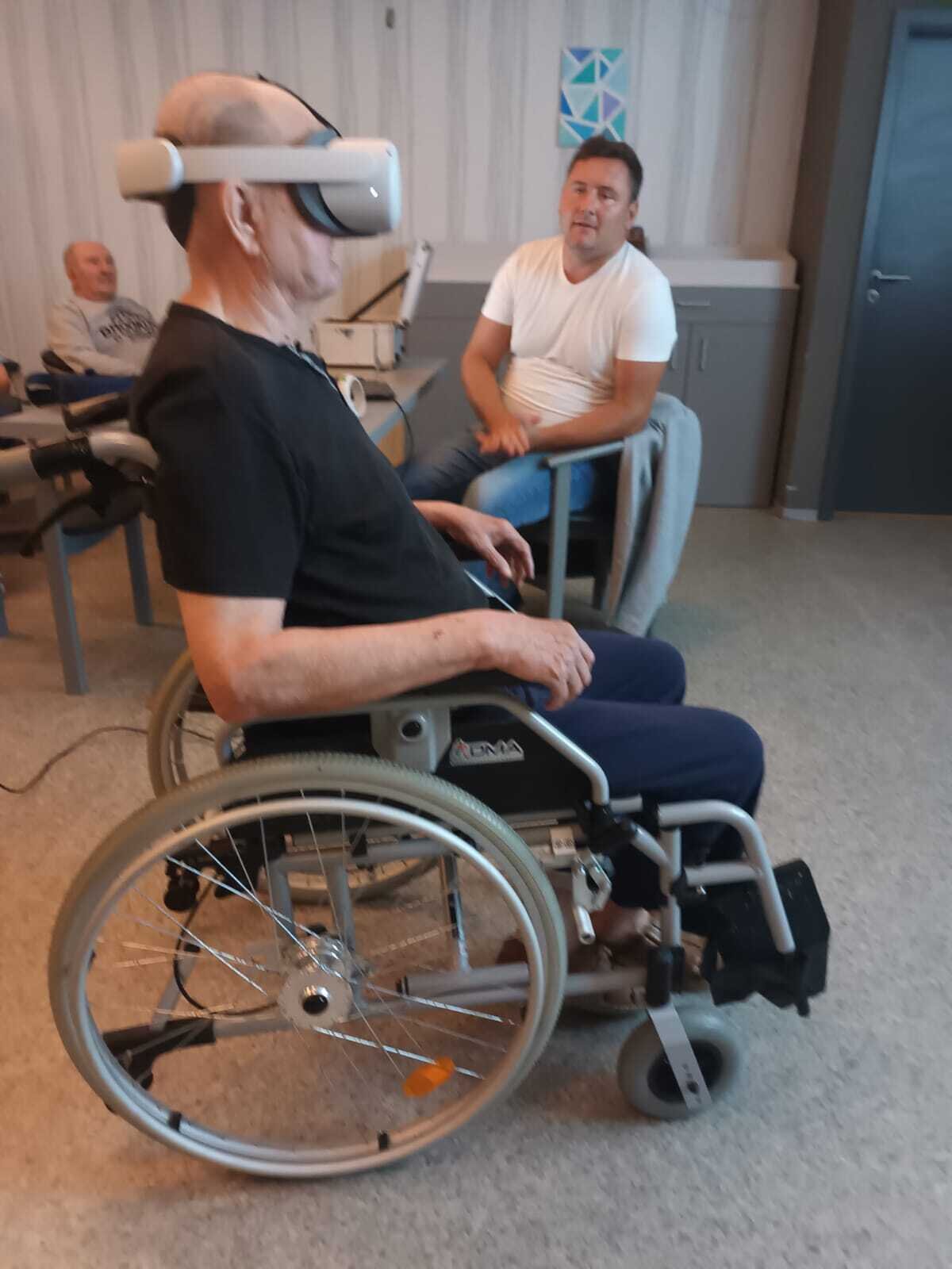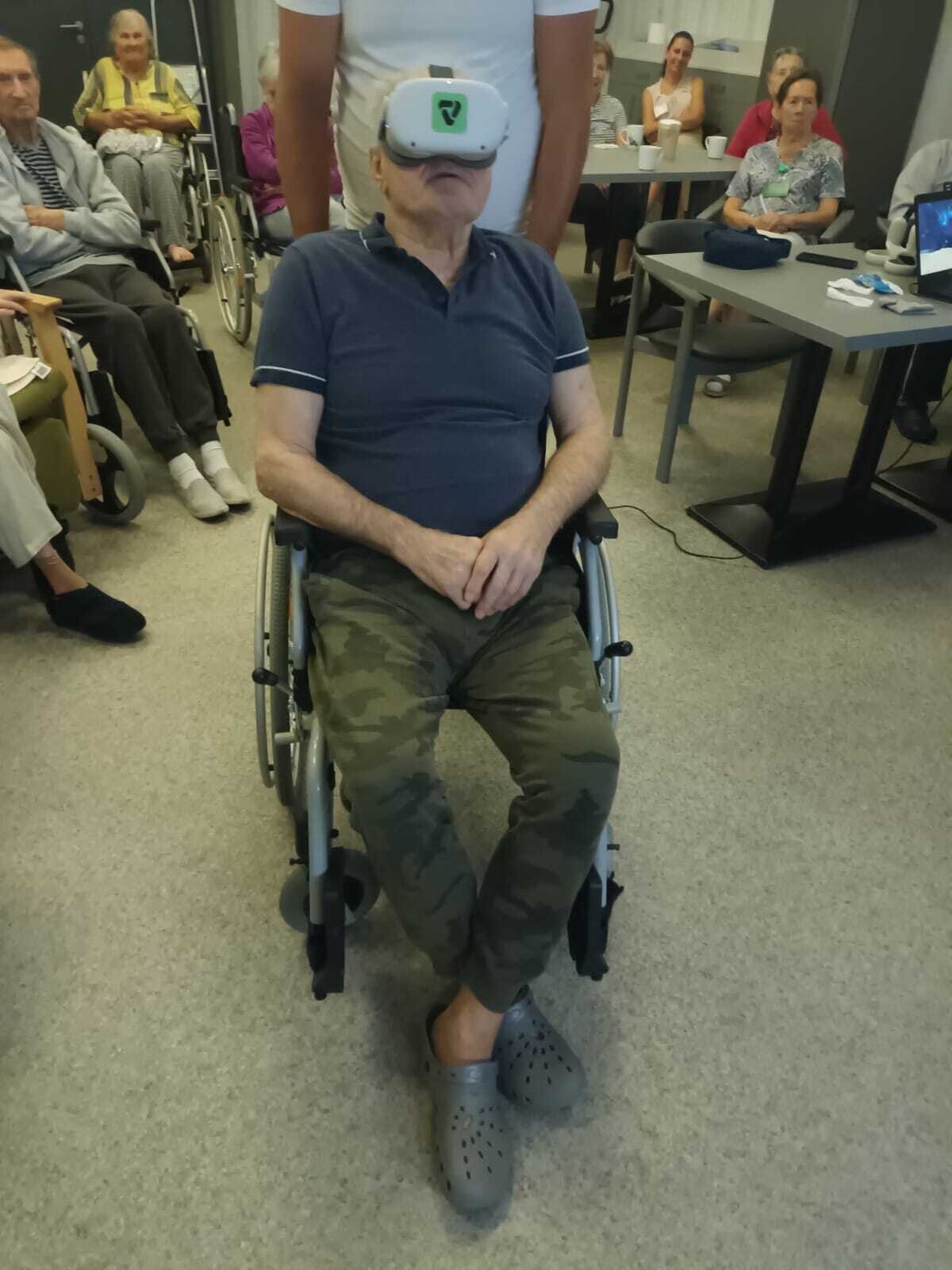 Dnes nás přijel navštívit pán, který nám přivezl ukázat virtuální realitu v praxi. Klienti si mohli vyzkoušet různé druhy kognitivního tréninku, zalévání květin, skládání puzzle, poznávání obrázků, prošli se virtuální přírodou africké savany, ocitli se ve vesmíru, chytali motýly, procvičili si jemnou i hrubou motoriku. Pro naše klienty to byla velmi zajímavá zkušenost.