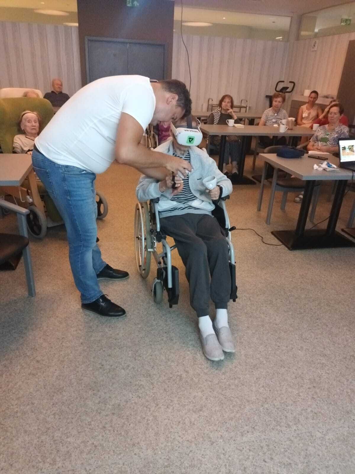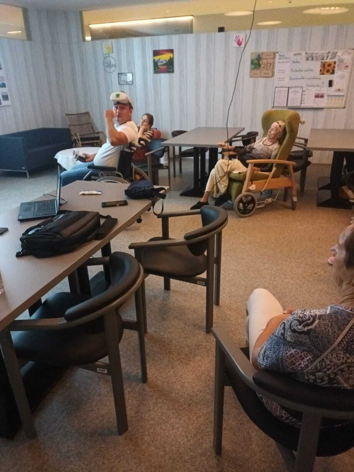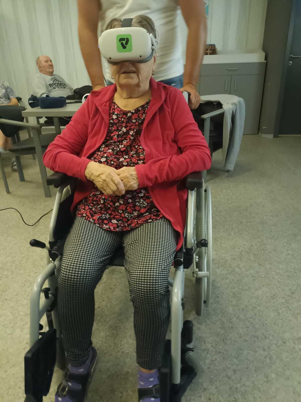 Dnes nás přijel navštívit pán, který nám přivezl ukázat virtuální realitu v praxi. Klienti si mohli vyzkoušet různé druhy kognitivního tréninku, zalévání květin, skládání puzzle, poznávání obrázků, prošli se virtuální přírodou africké savany, ocitli se ve vesmíru, chytali motýly, procvičili si jemnou i hrubou motoriku. Pro naše klienty to byla velmi zajímavá zkušenost.