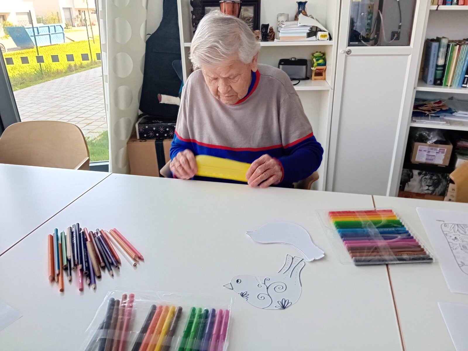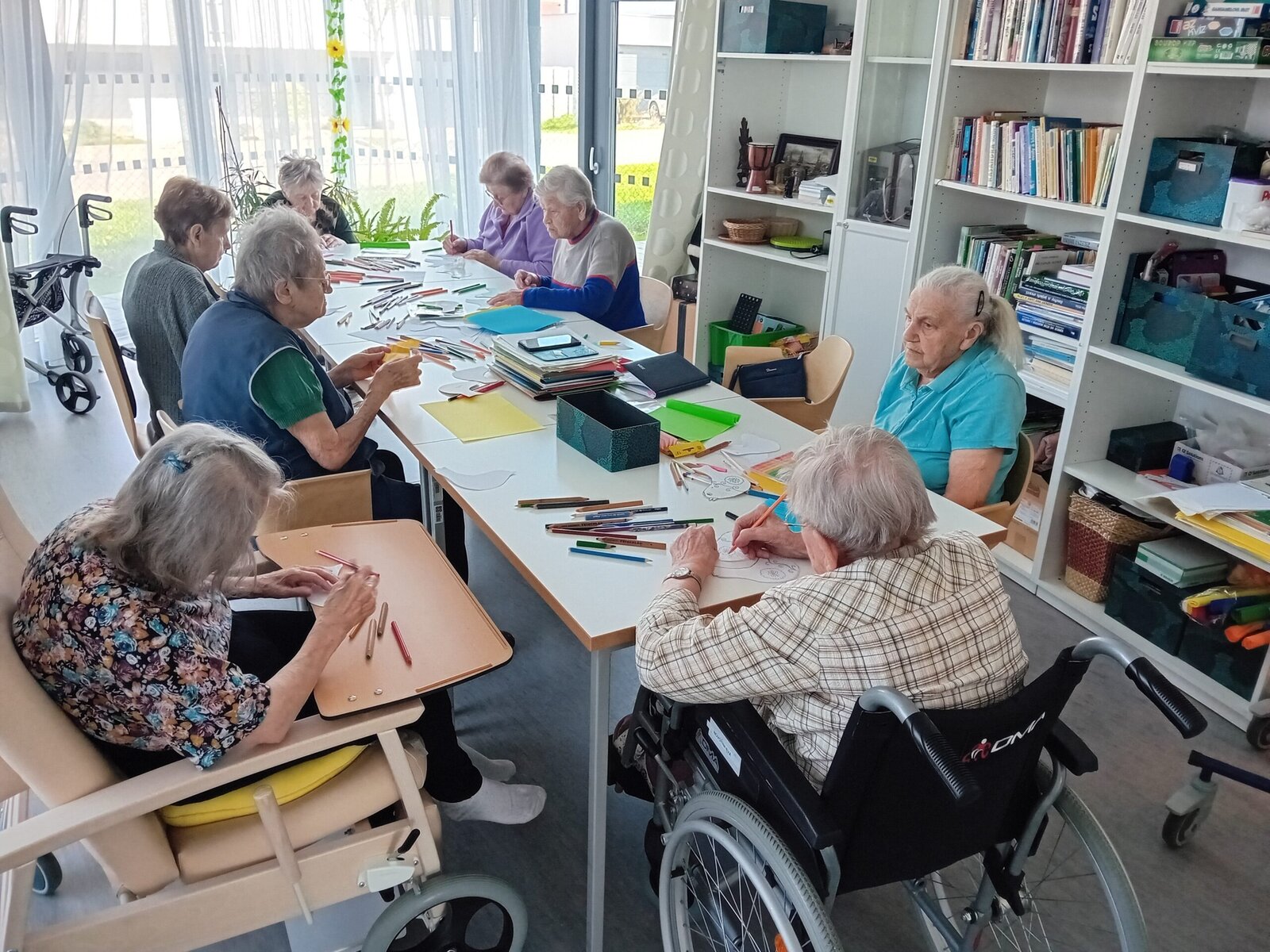 Čtvrteční dopoledne se neslo v duchu tvořivosti. Abychom s klienty aktivně přívítali jaro nejen při pobytu na zahradě, sešli jsme se tentokrát v naší společenské místosti při výrobě barevných ptáčků, které nám opět budou zdobit naše společné prostory v Senevida Slavkov u Brna.