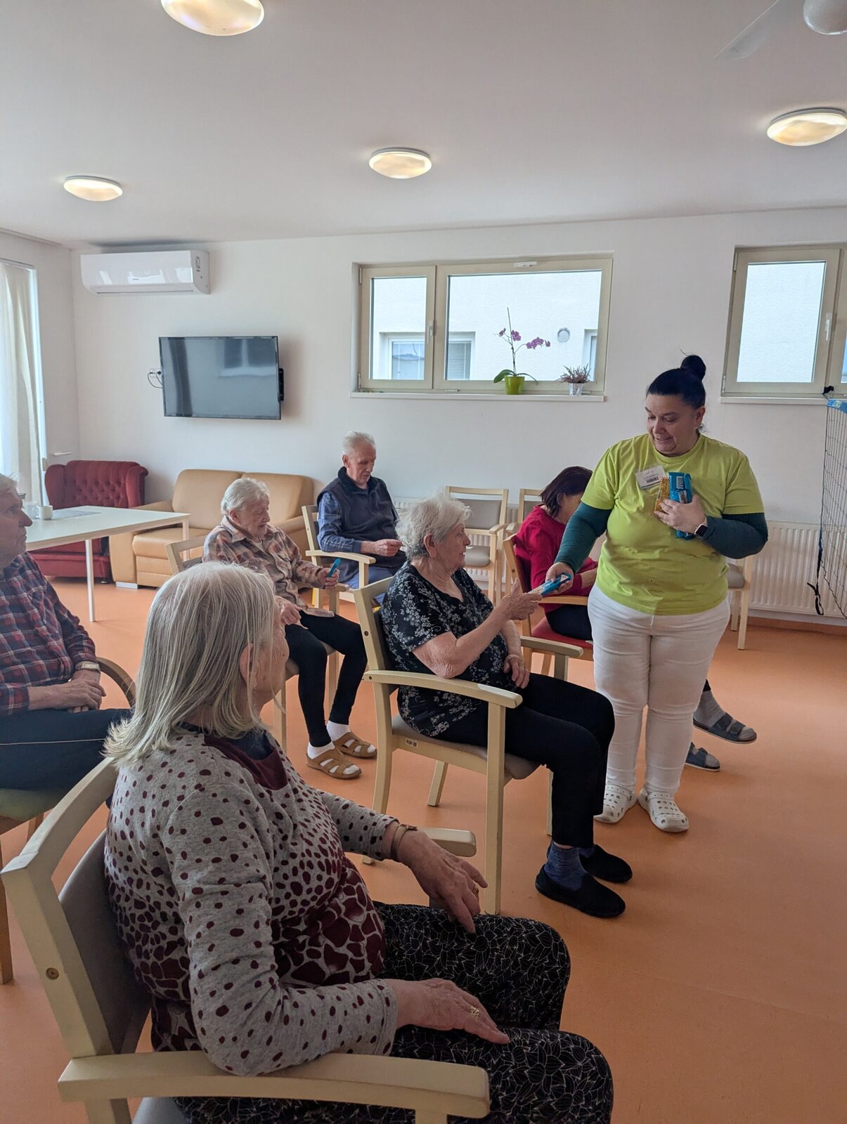 S klienty Senevida Zlín jsme se učili hrát volejbal. Někteří ho hráli poprvé, jiní po mnoha letech. Náš trénink vzbudil i velký zájem ostatních v zařízení. Postupně se obecenstvo obměňovalo a tleskali při každém našem zdaru. Na závěr nechyběl potlesk a sladká odměna a pro zúčastněné.