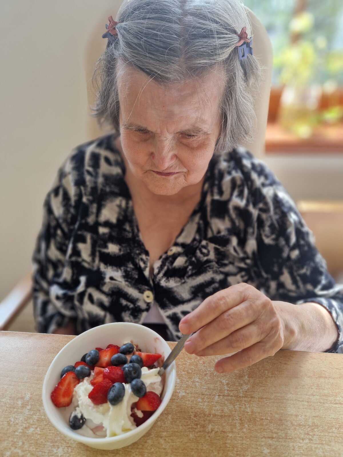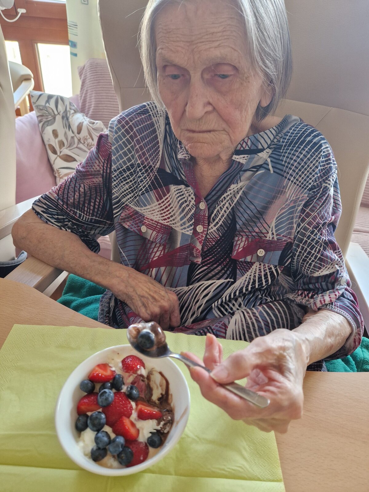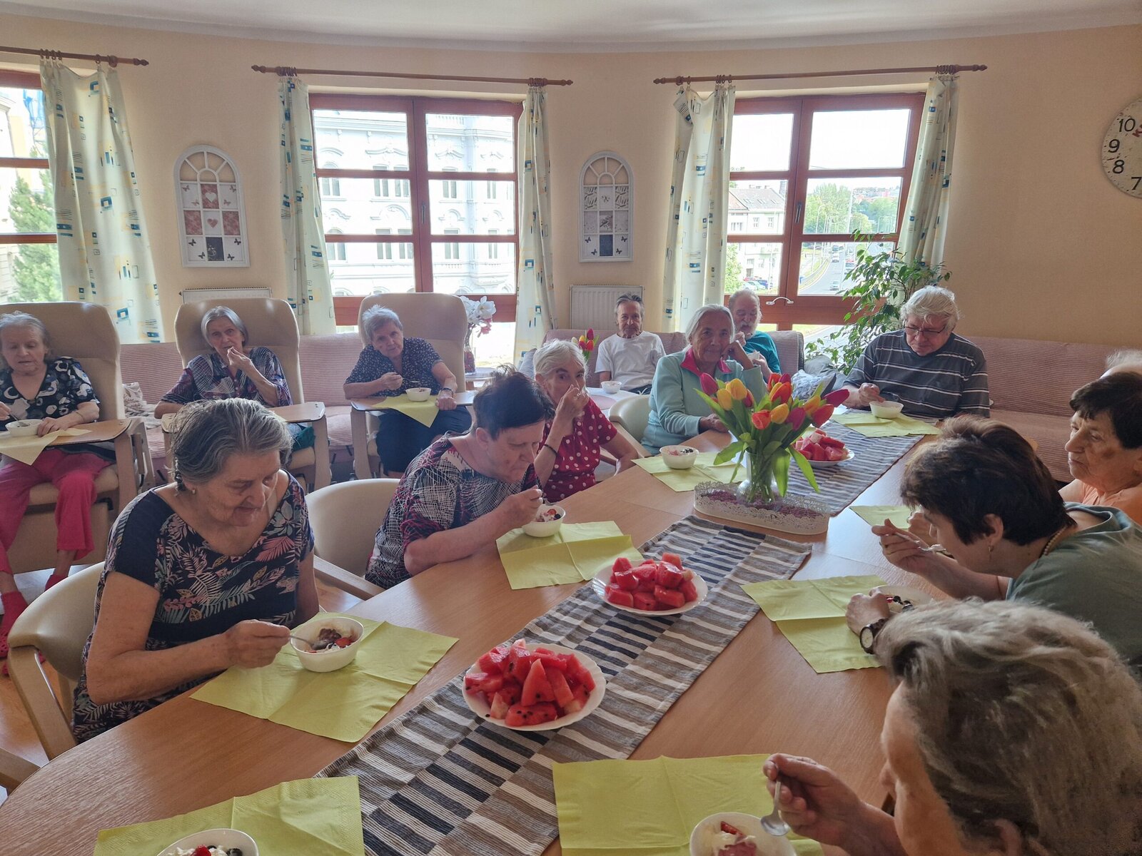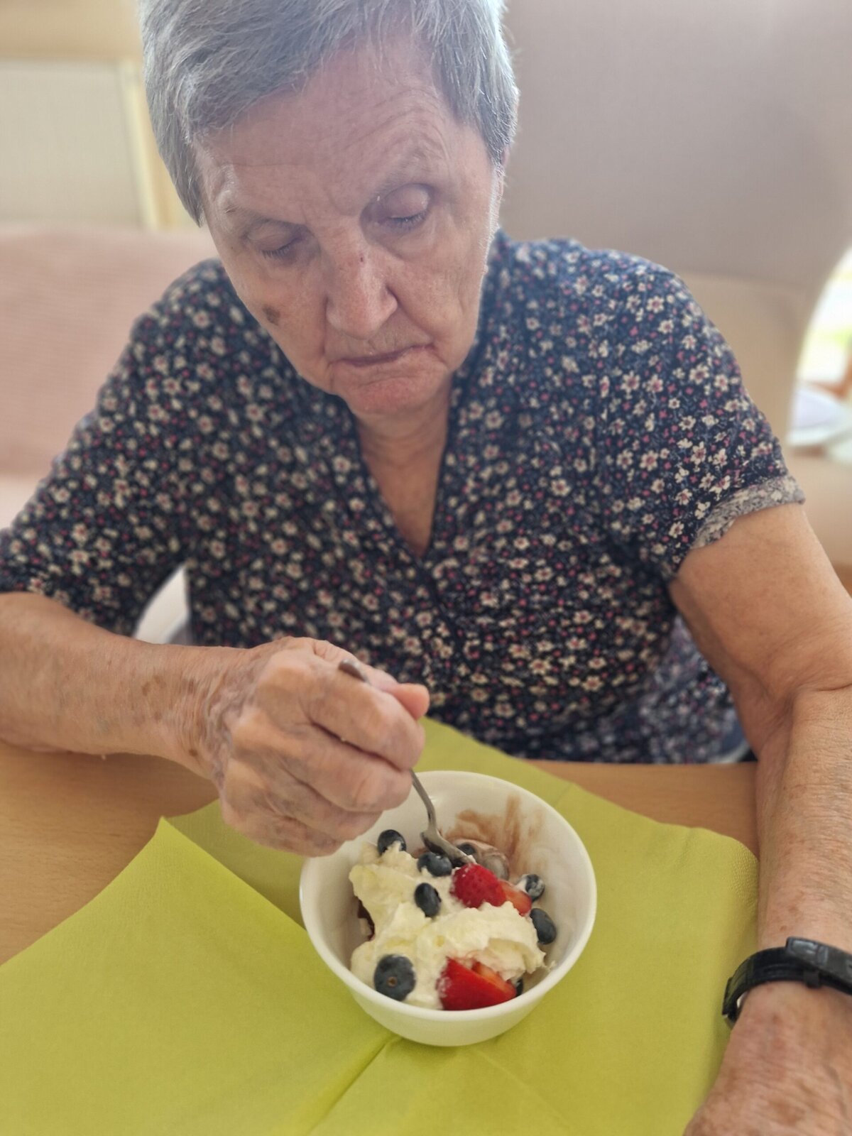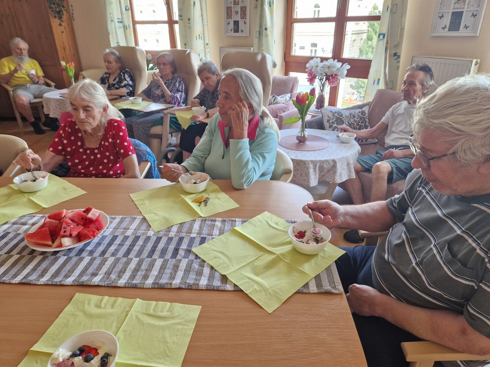 Letní dny si u nás v Senevida Frýdek-Místek umíme zpříjemnit. 🍨 V rámci tradičního Výboru obyvatel si klienti pochutnali na lahodných zmrzlinových pohárech s ovocem a šlehačkou.