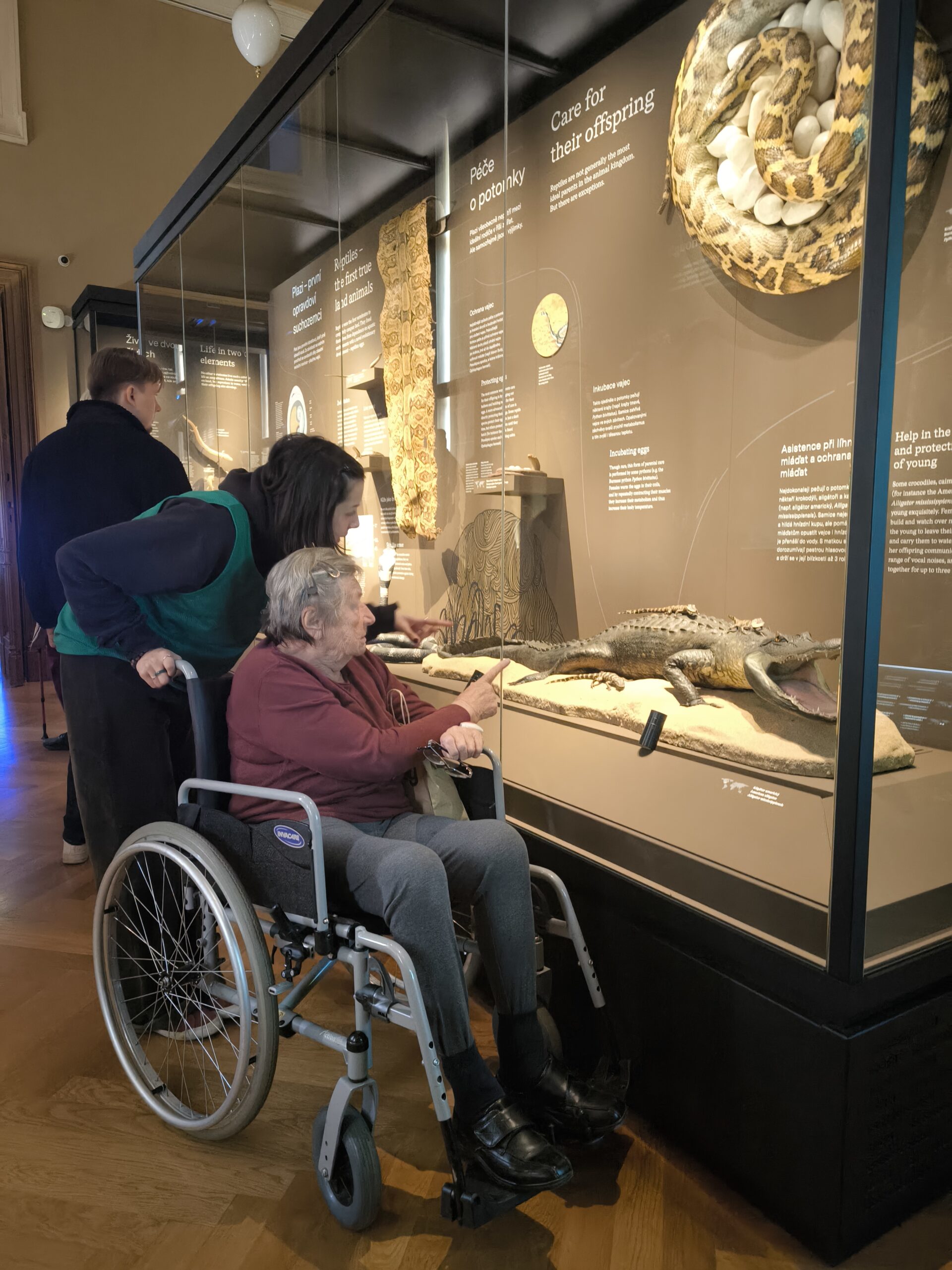 Vybrali jsme si na začátek expozici s názvem Zázraky evoluce, kde si klienti mohli prohlédnout přibližně 1500 exponátů, včetně ikonické kostry plejtváka myšoka. Dále jsme pokračovali do expozice s názvem Okna do pravěku, kde jsme si prohlédli, jak vypadal život na našem území před mnoha miliony let. Na závěr jsme navštívili také sál minerálů.