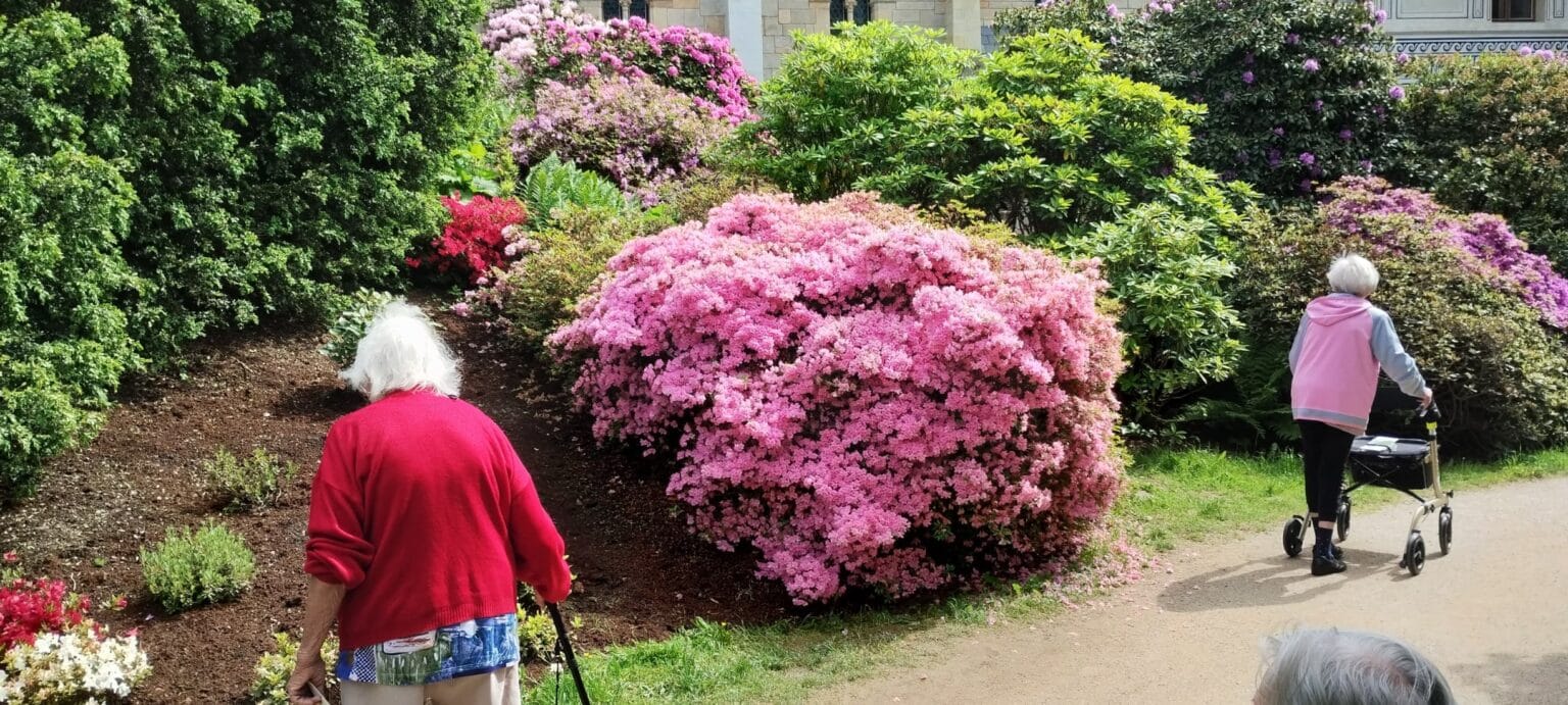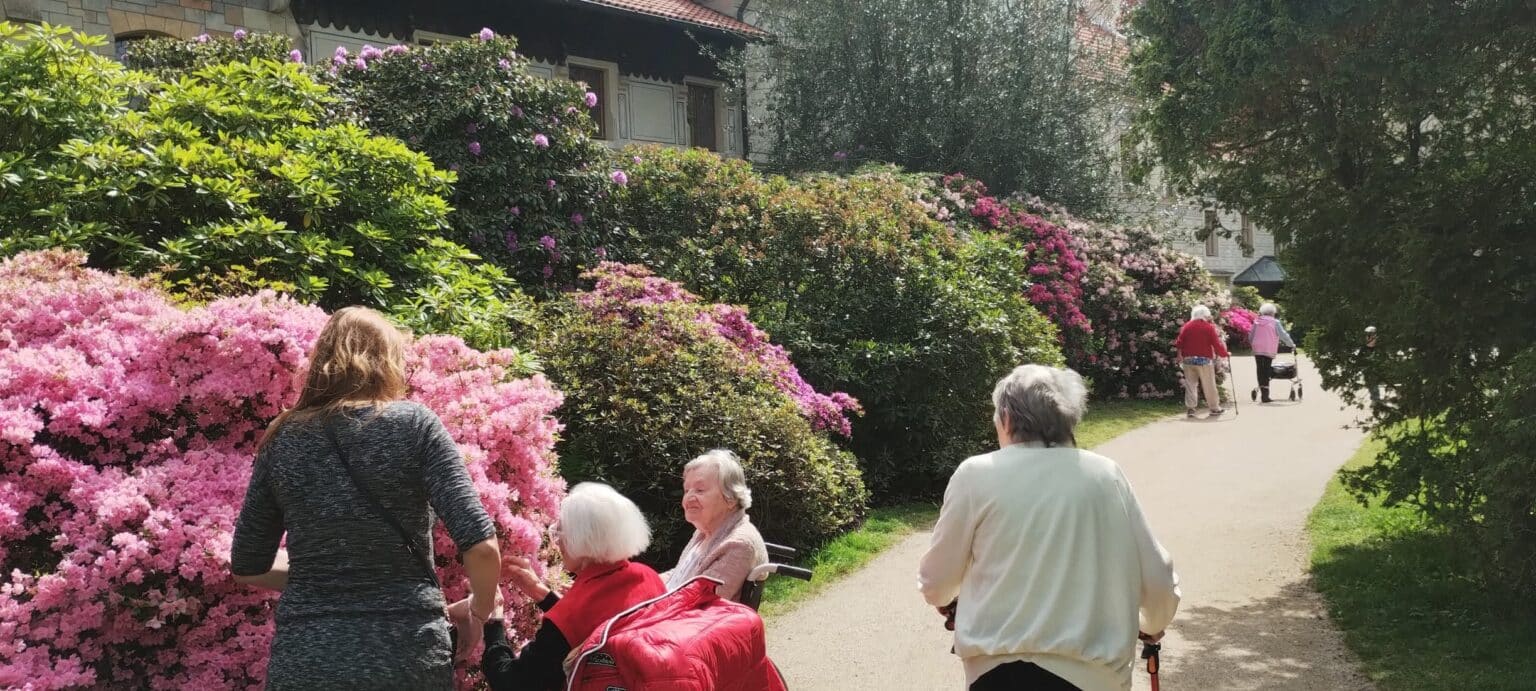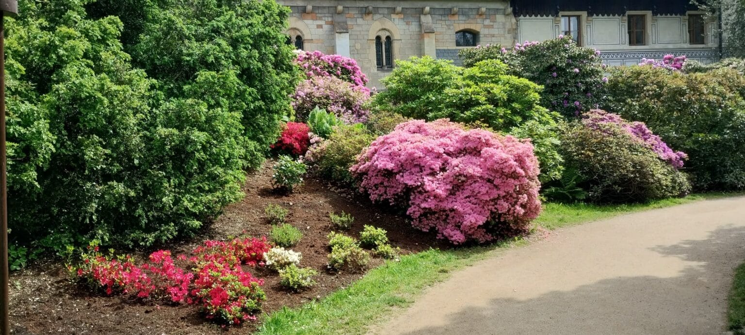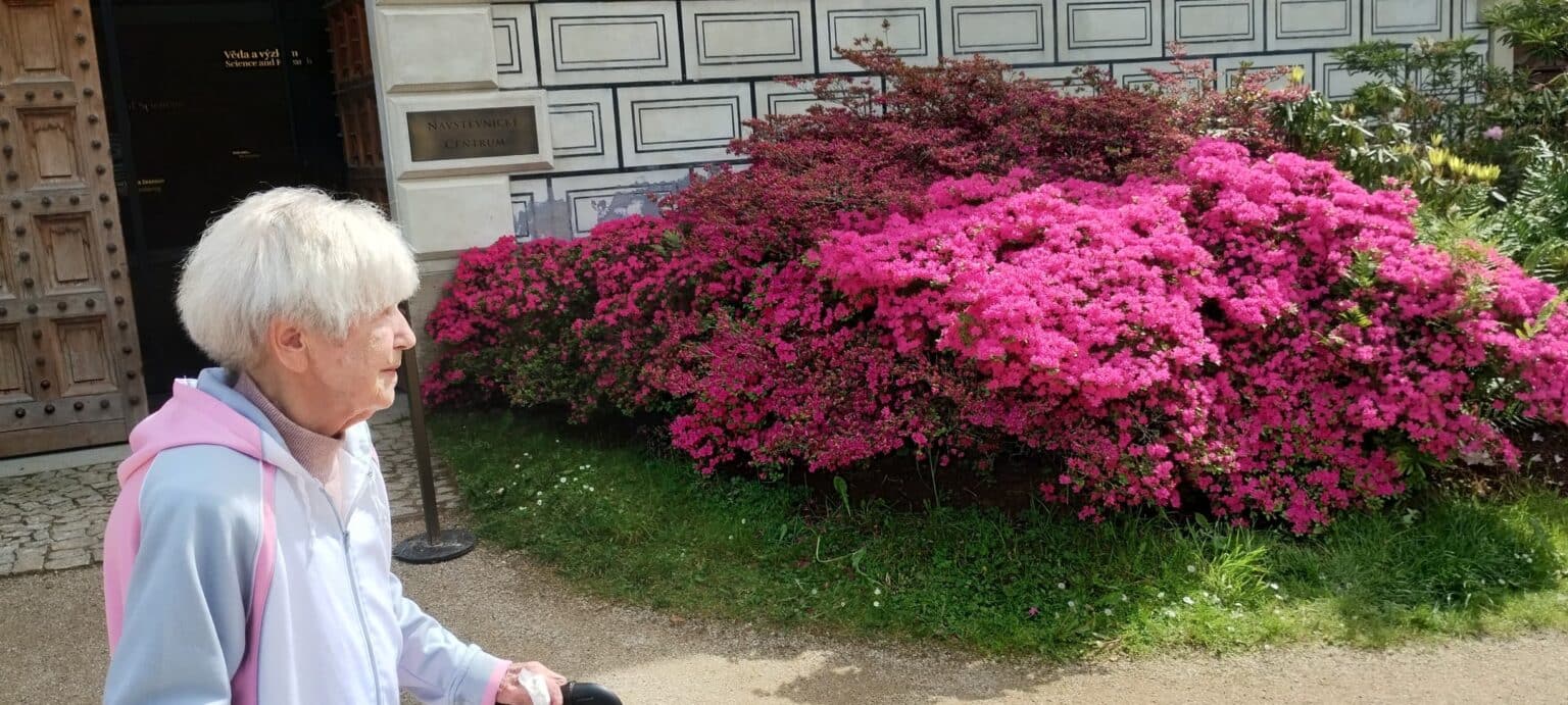 Procházka rozkvetlým parkem potěšila všechny milovníky přírody. Obdivovali jsme pestrobarevné rododendrony, azalky i další kvetoucí rostliny, které vytvářely doslova pohádkovou atmosféru. Společné chvíle na čerstvém vzduchu byly nejen krásné, ale také příjemně osvěžující.