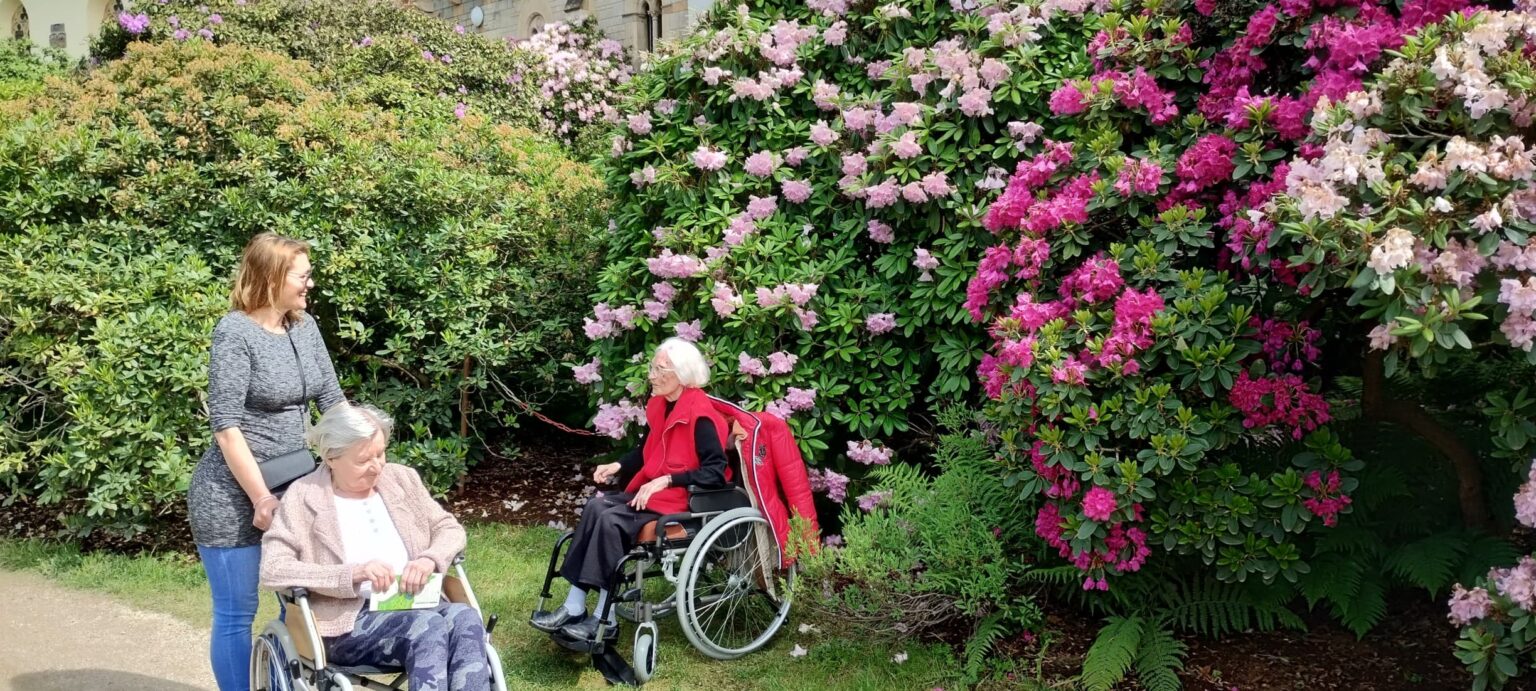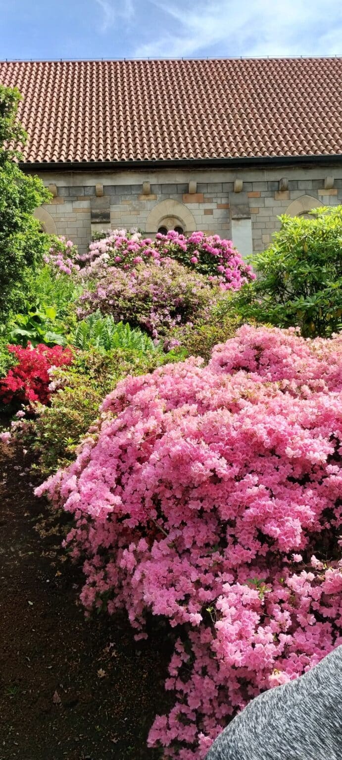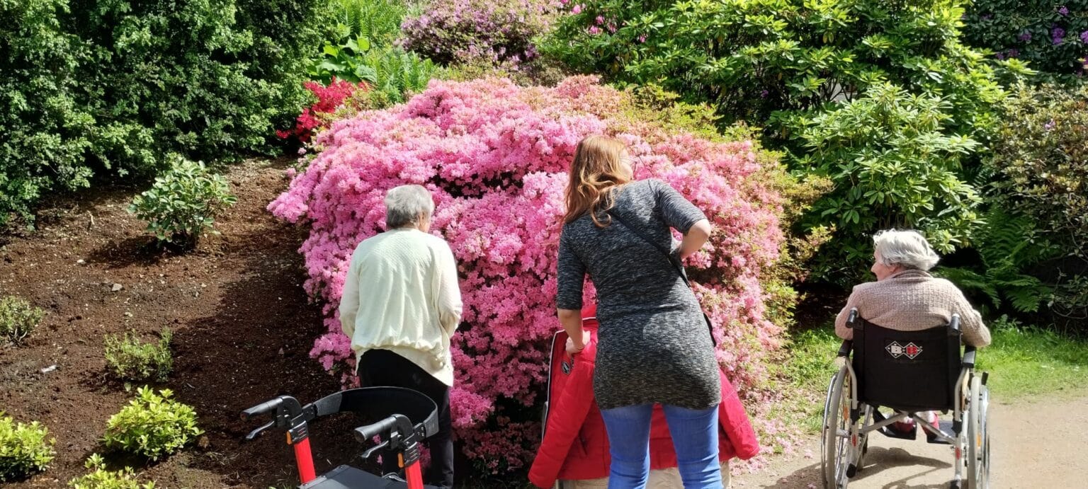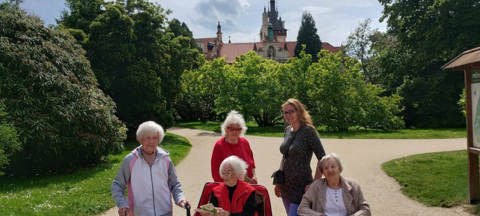 Procházka rozkvetlým parkem potěšila všechny milovníky přírody. Obdivovali jsme pestrobarevné rododendrony, azalky i další kvetoucí rostliny, které vytvářely doslova pohádkovou atmosféru. Společné chvíle na čerstvém vzduchu byly nejen krásné, ale také příjemně osvěžující.