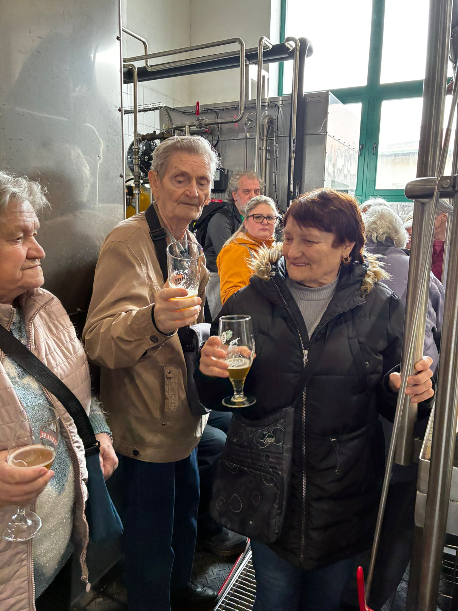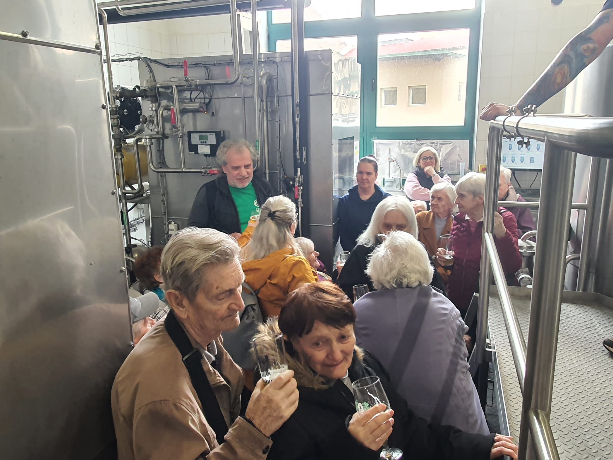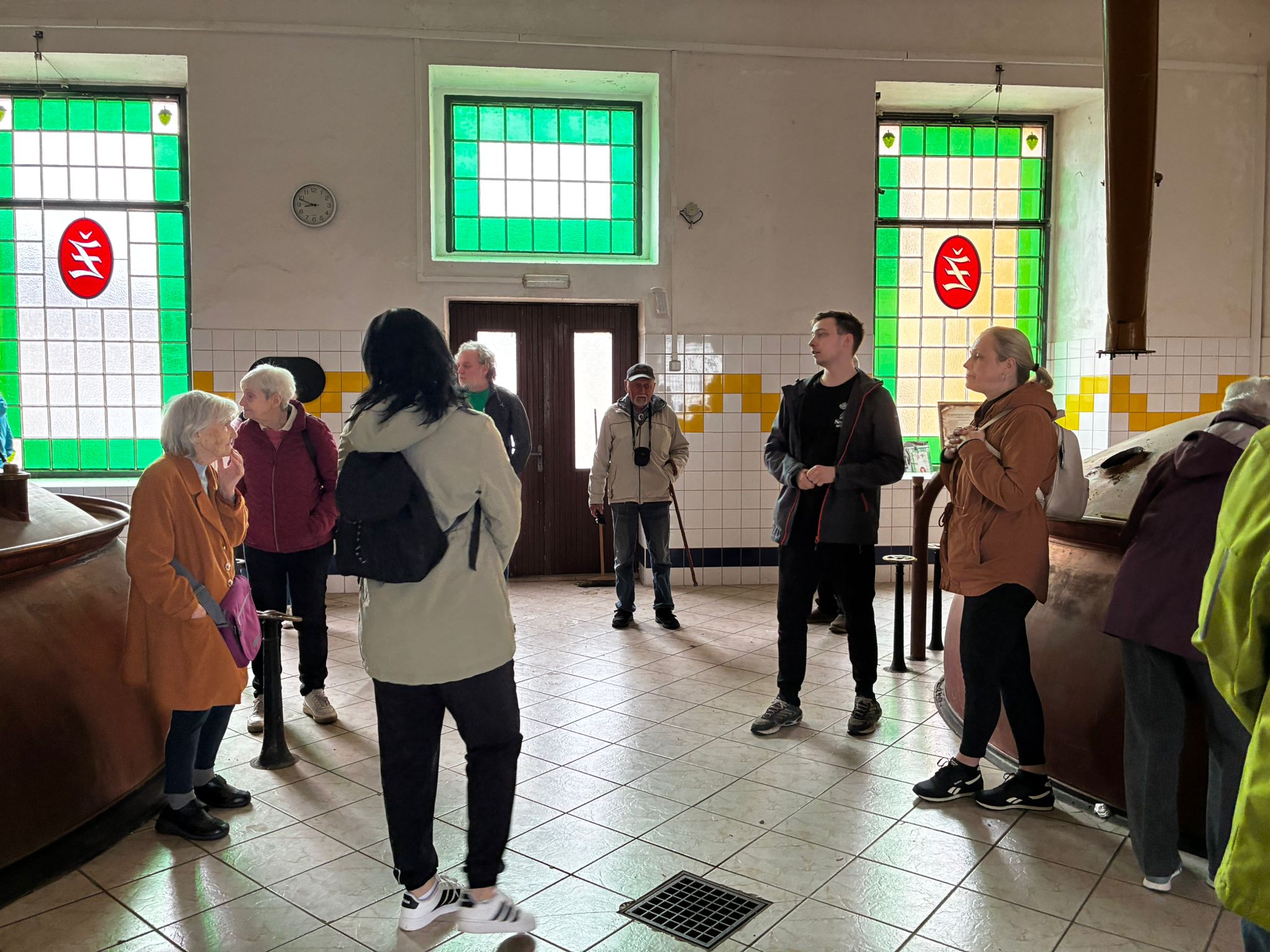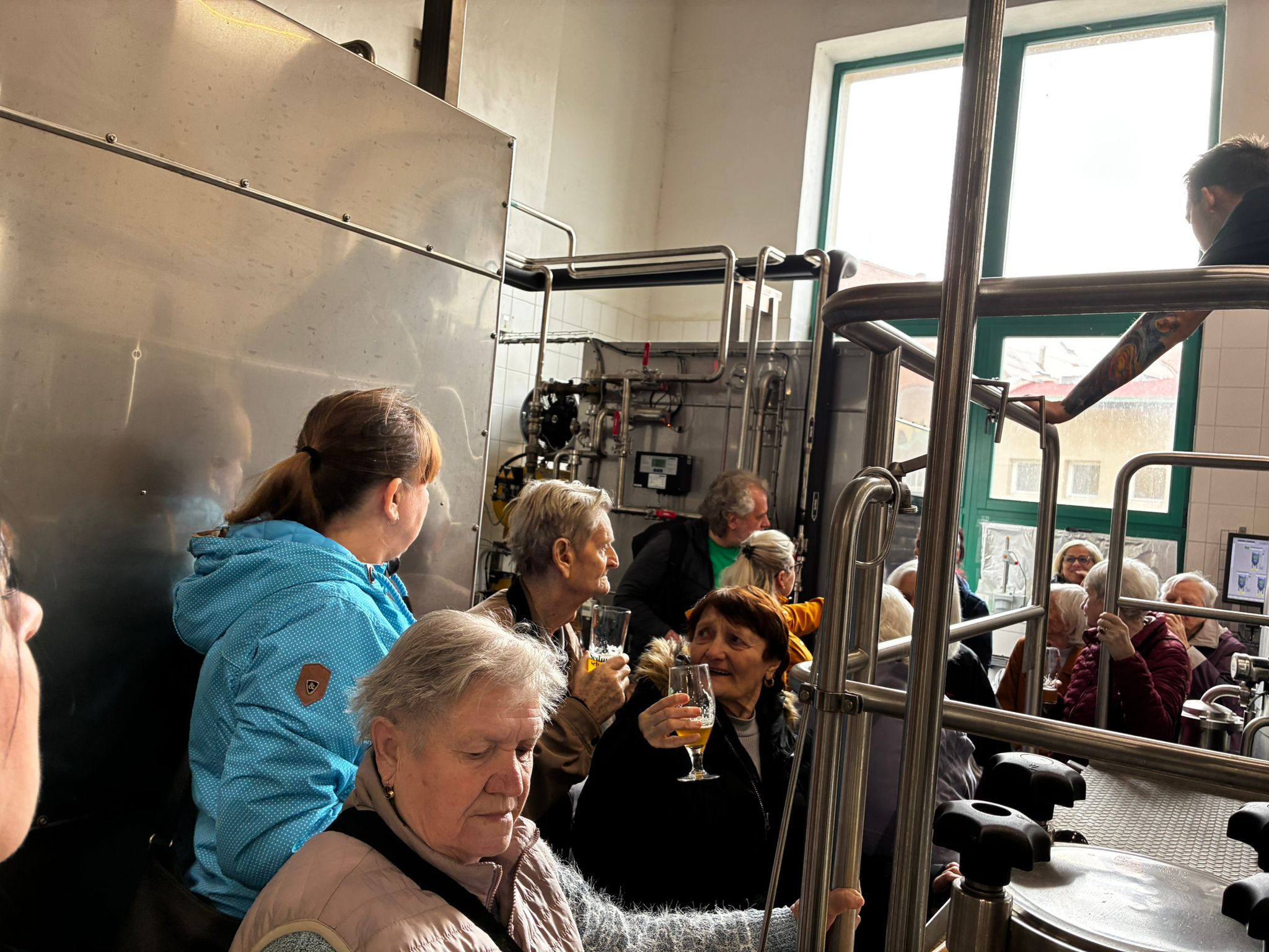 Prohlídku vedl žatecký sládek František, který klientům podrobně vysvětlil celý proces výroby piva. Klienti si prohlídli varnu piva, stáčírnu a nakonec ochutnali pivo Sedmý schod.