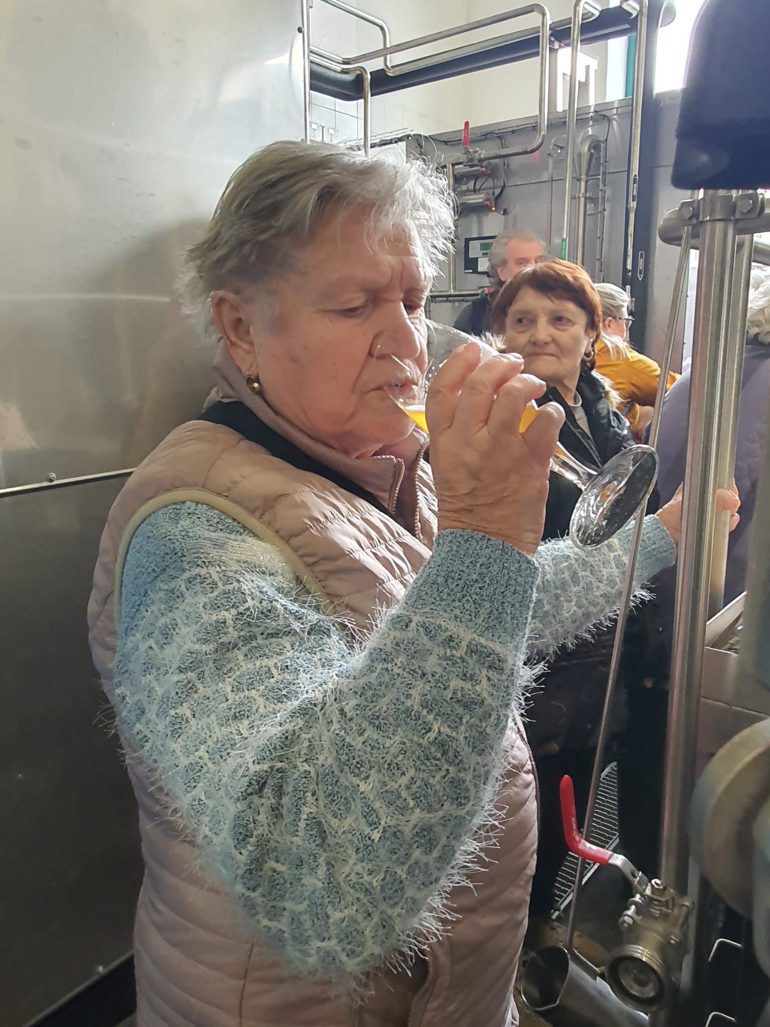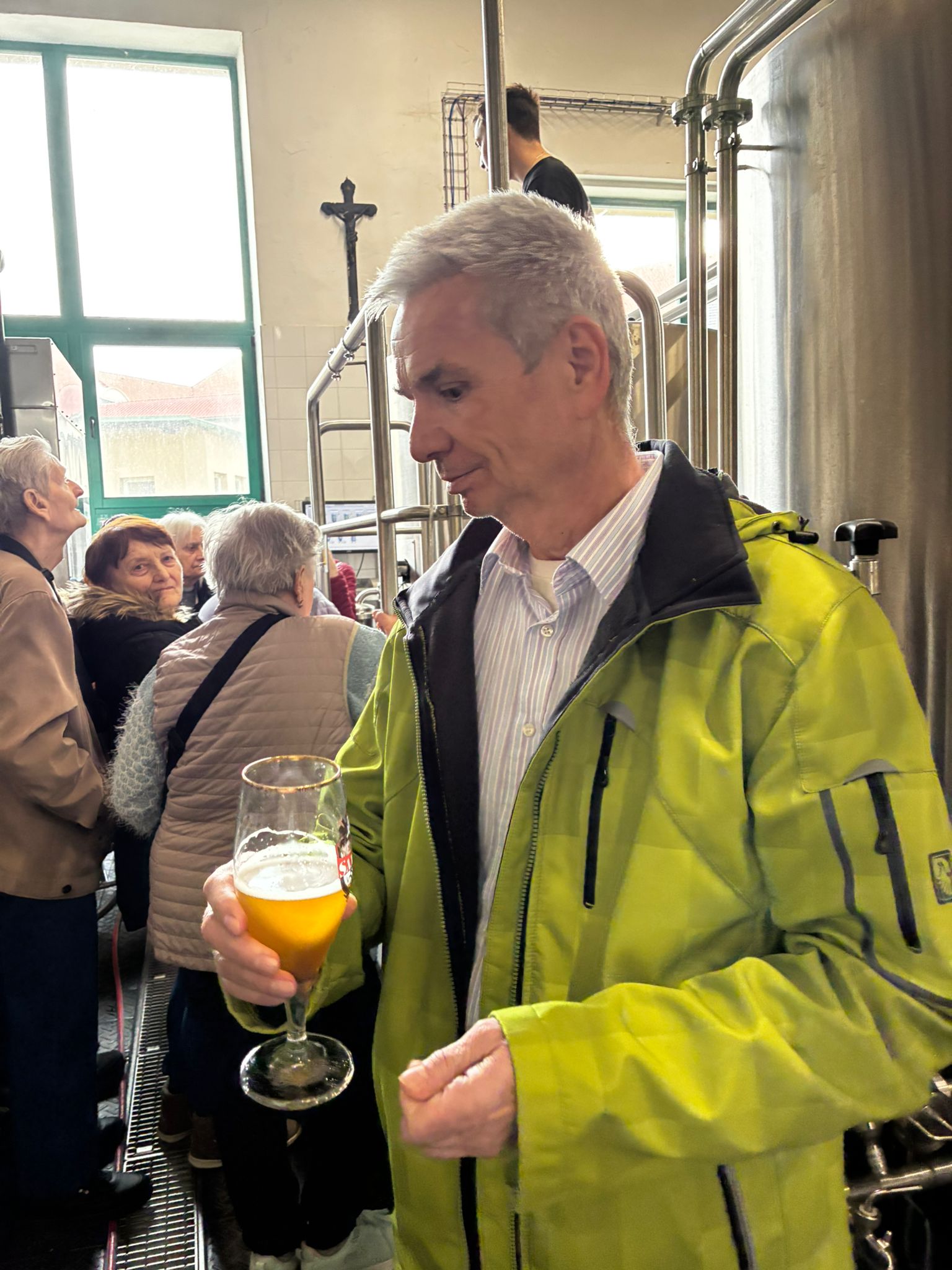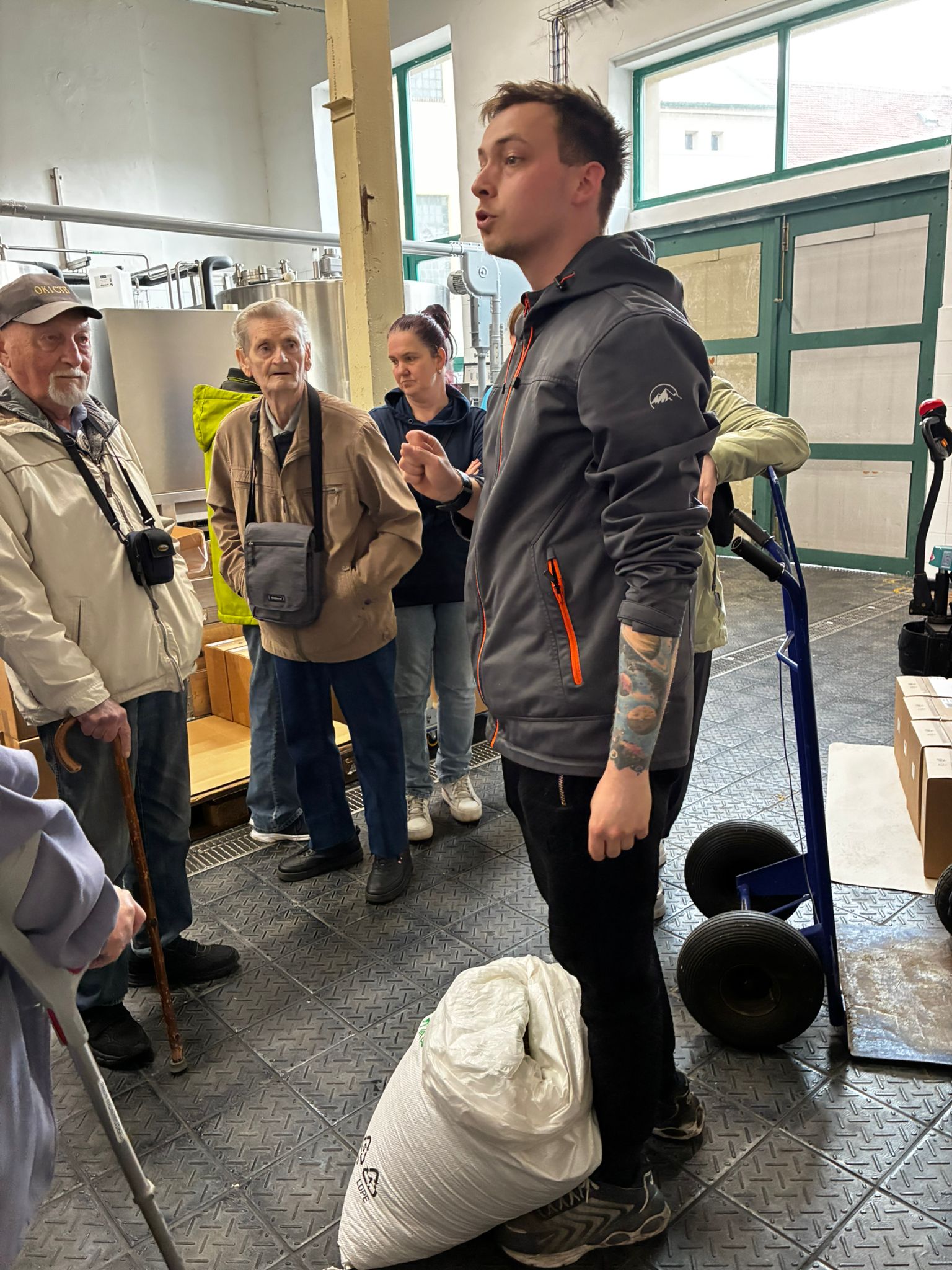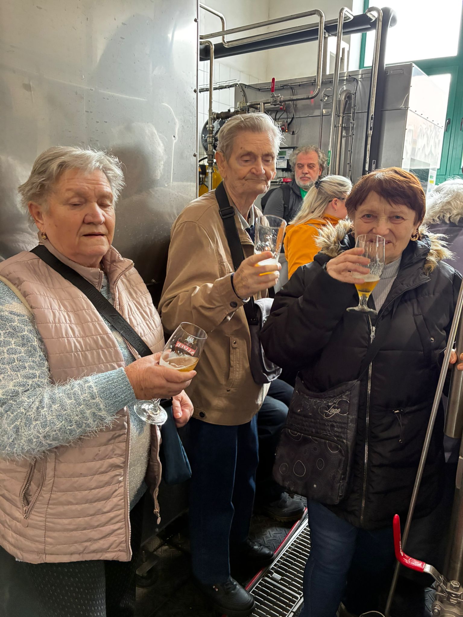 Prohlídku vedl žatecký sládek František, který klientům podrobně vysvětlil celý proces výroby piva. Klienti si prohlídli varnu piva, stáčírnu a nakonec ochutnali pivo Sedmý schod.