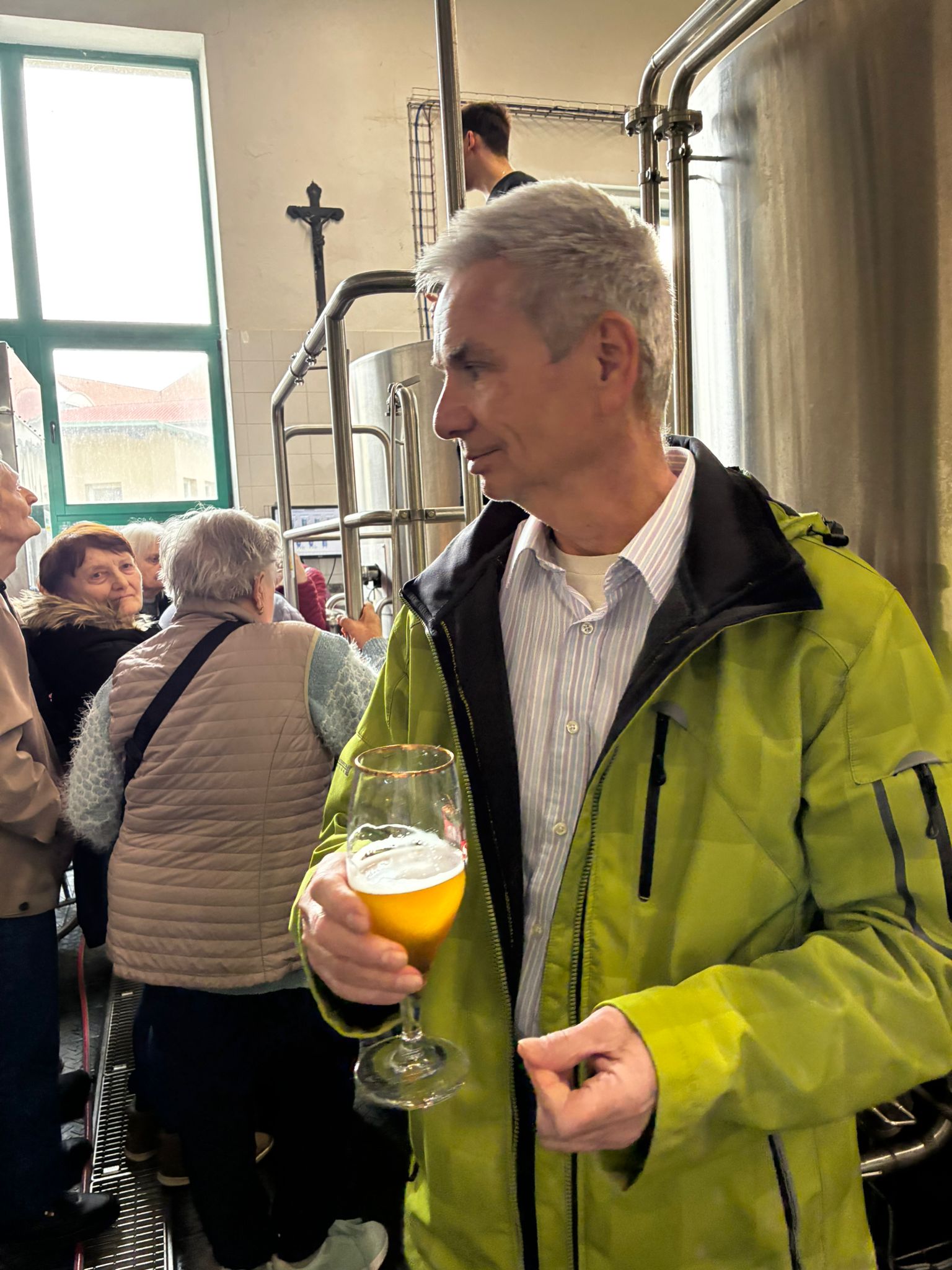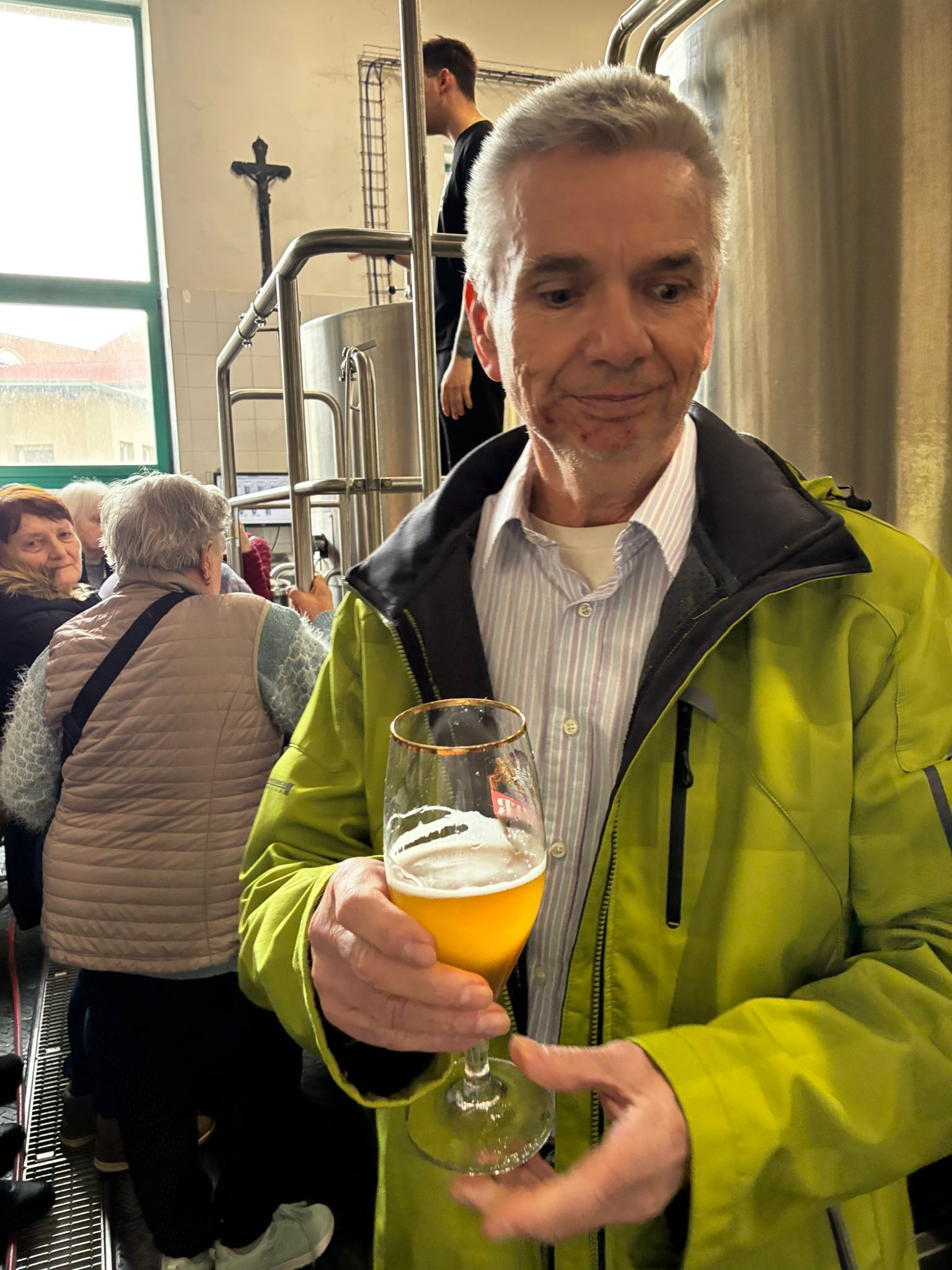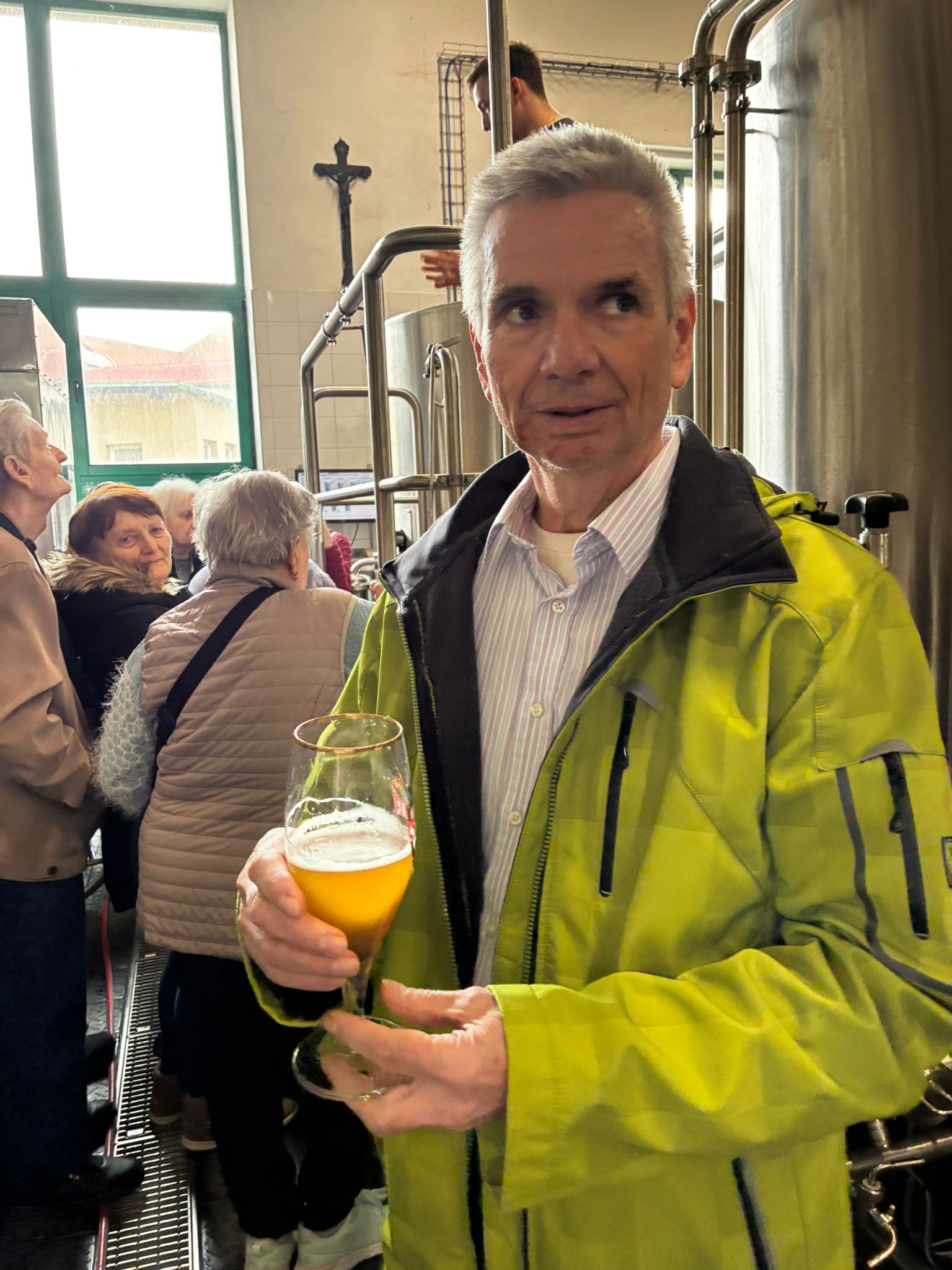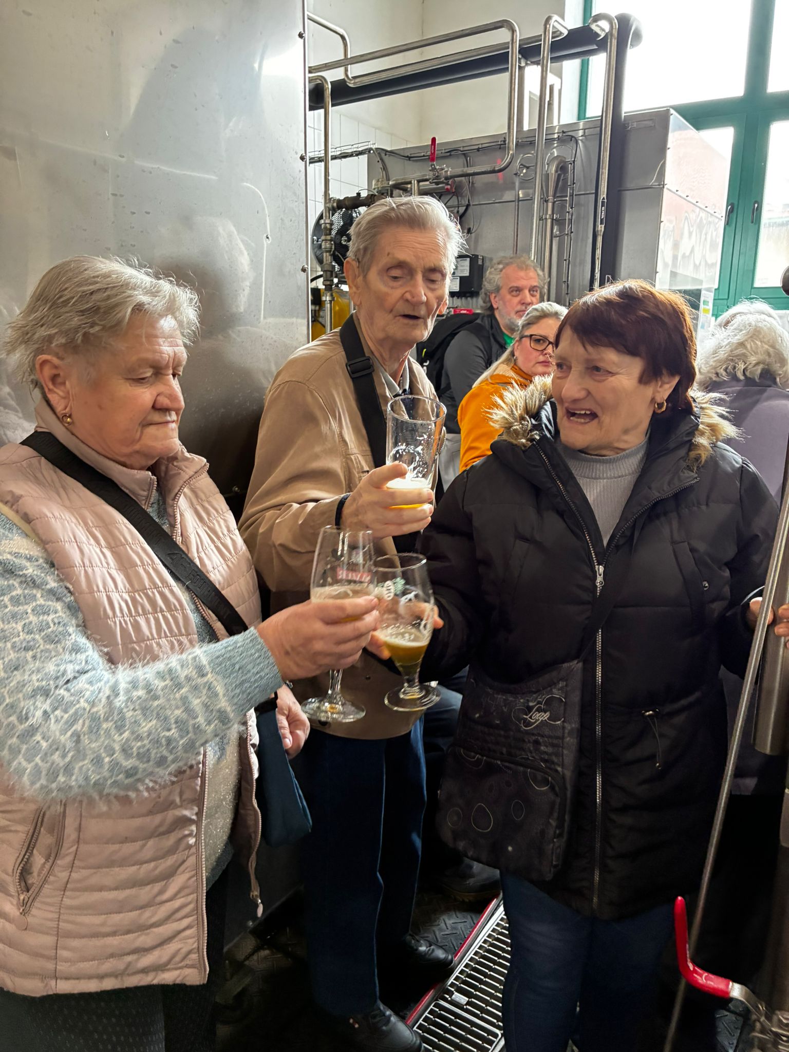 Prohlídku vedl žatecký sládek František, který klientům podrobně vysvětlil celý proces výroby piva. Klienti si prohlídli varnu piva, stáčírnu a nakonec ochutnali pivo Sedmý schod.
