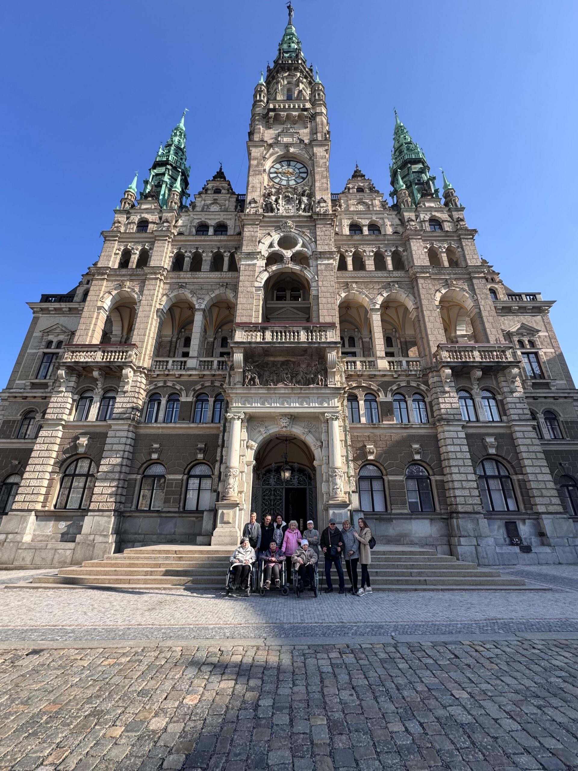 Doprovod zajišťovaly tři aktivizační pracovnice a jedna rehabilitační pracovnice. Velkou pomocí nám byly také čtyři studentky na praxi, které se aktivně zapojily a přispěly k hladkému průběhu celé akce. Na radnici jsme se pohodlně dopravili městskou hromadnou dopravou – tramvají, kterou jsme využili jak při cestě tam, tak i zpět. Počasí nám přálo, což celému výletu dodalo ještě příjemnější atmosféru.