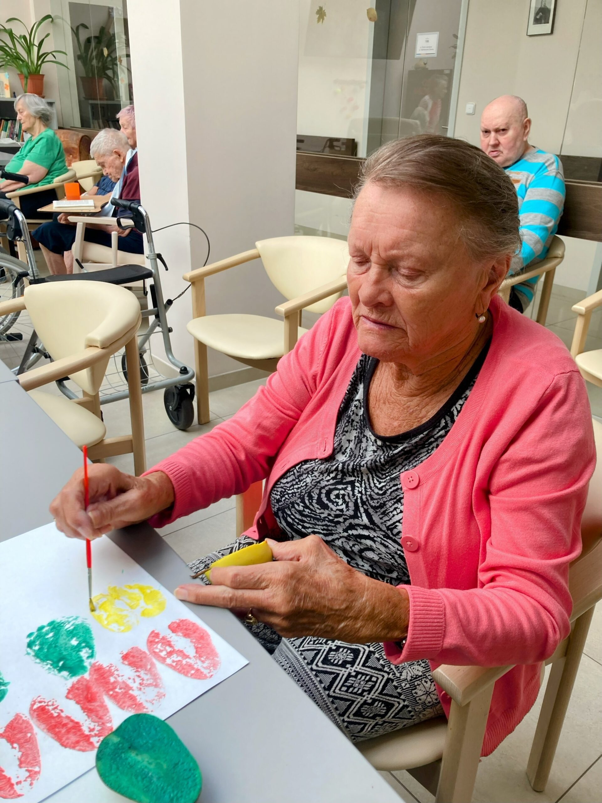 V Senevida Lázně Bohdaneč jsme si zpříjemnili deštivé dopoledne procvičením jemné motoriky. Vznikla pěkná výzdoba. Klientky tisknutí ovocných razítek a listů moc bavila.👍🙂