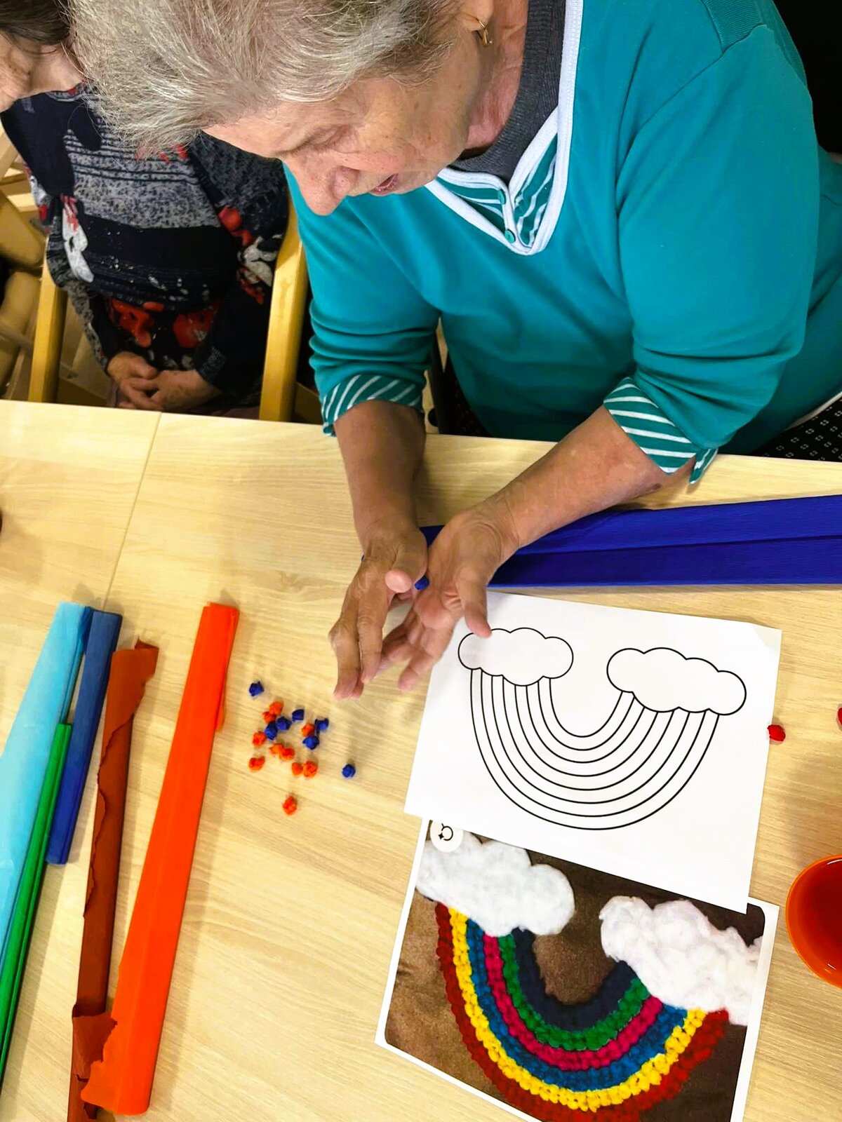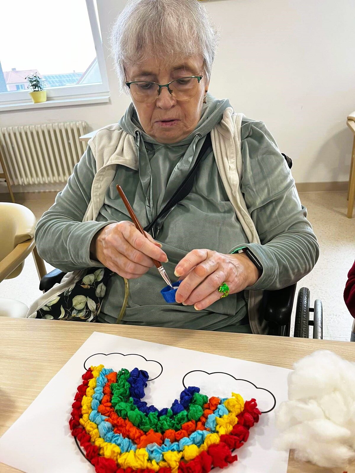 Trénování jemné motoriky v Senevida Chelčice jsme si zpestřili výrobou duhy z krepového papíru.🌈😊