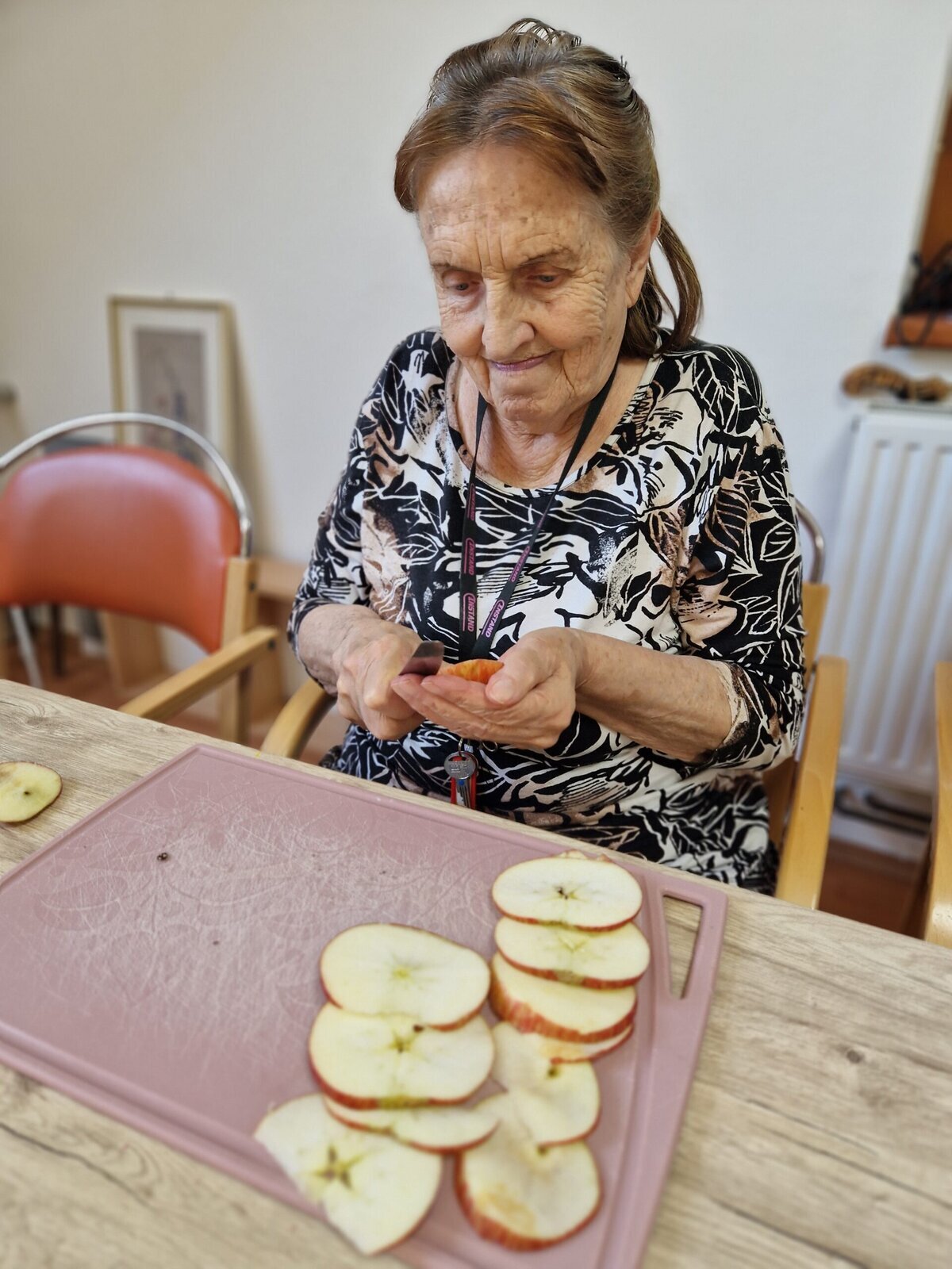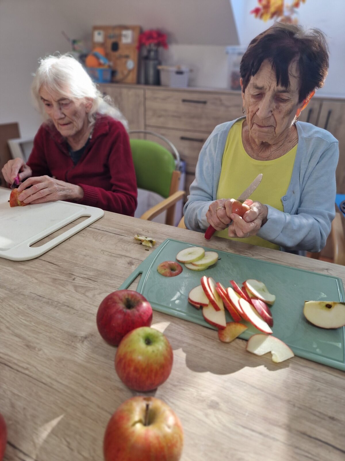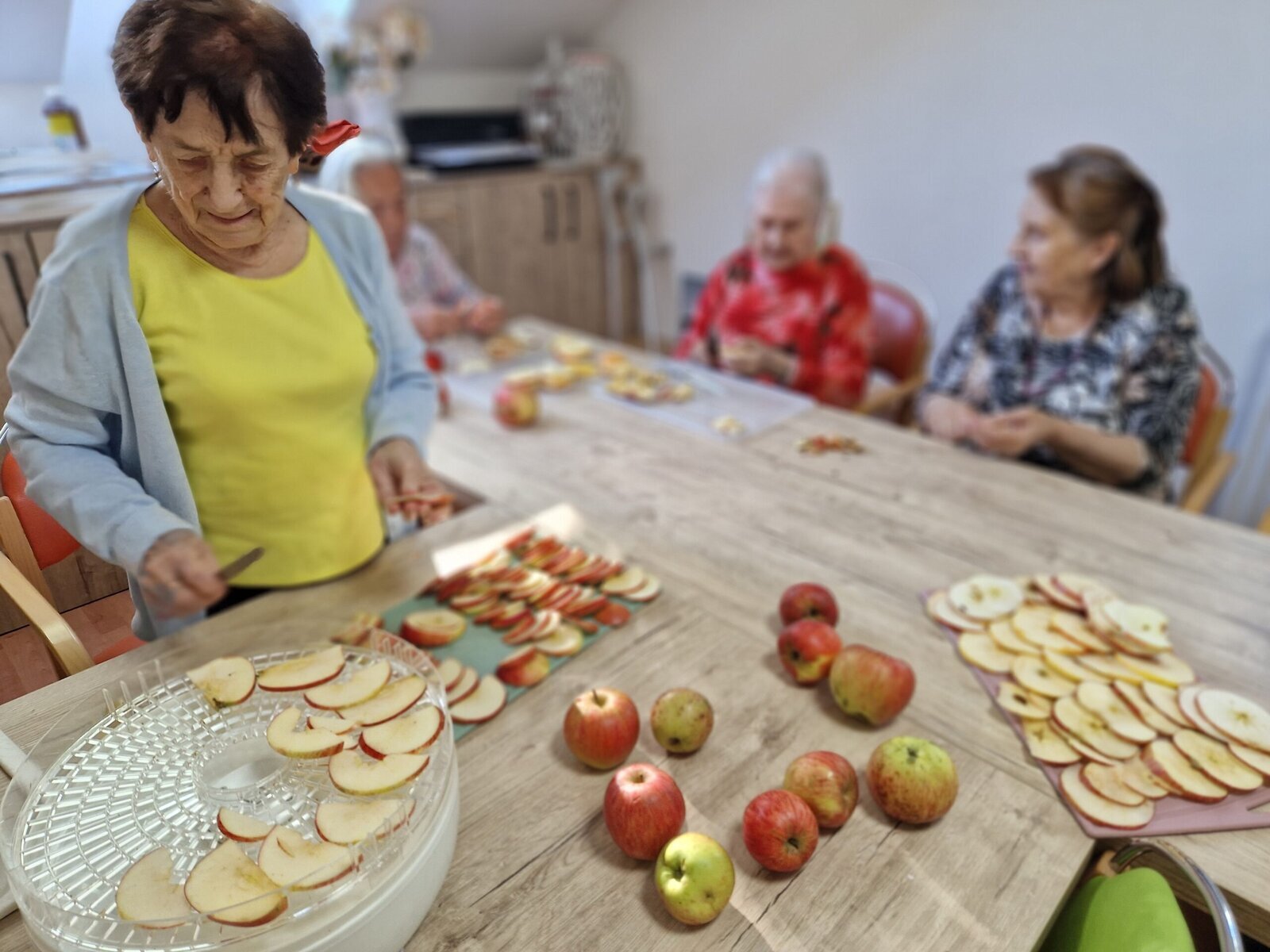 Klienti Senevida Frýdek-Místek si v rámci dopolední aktivizace procvičili jemnou motoriku v krájení jablek 🍎, která jsme poté nechali usušit a teď už se těšíme, až si pochutnáme na křížalách.