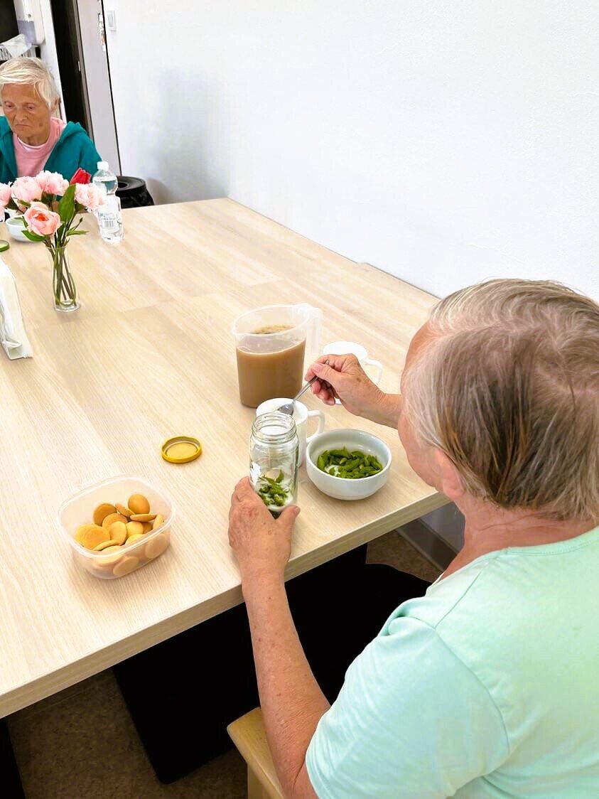 V rámci smyslové aktivizace jsme si v Senevida Chelčice vyrobili léčivý sirup ze smrkových výhonků, takzvaný smrkáček. Tento sirup má protizánětlivé a dezinfekční účinky a dalším bonusem je i vysoký podíl vitamínu C...🌲💖