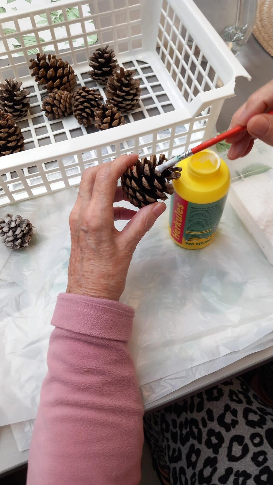 Výroba zasněžených šišek