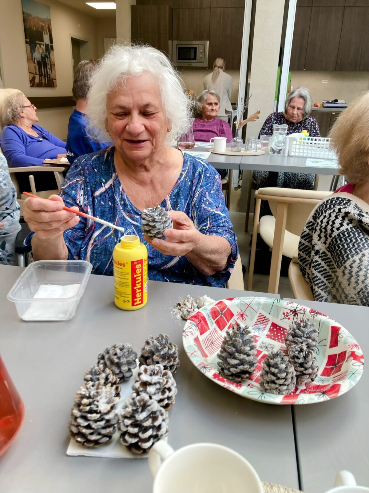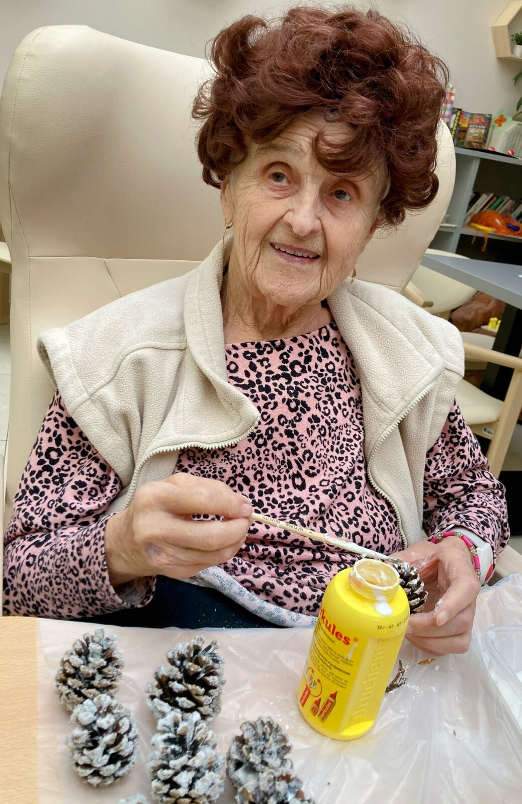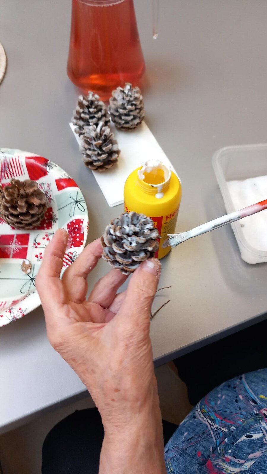 Dnes jsme si u nás v Senevida Lázně Bohdaneč ozdobili borovicové šišky na zimní výzdobu. Tato zábava klientky moc bavila. Použili jsme jednoduchou techniku, a to: Tekuté lepidlo a sůl. Šišky pak vypadají jako zasněžené. 🎄🙂