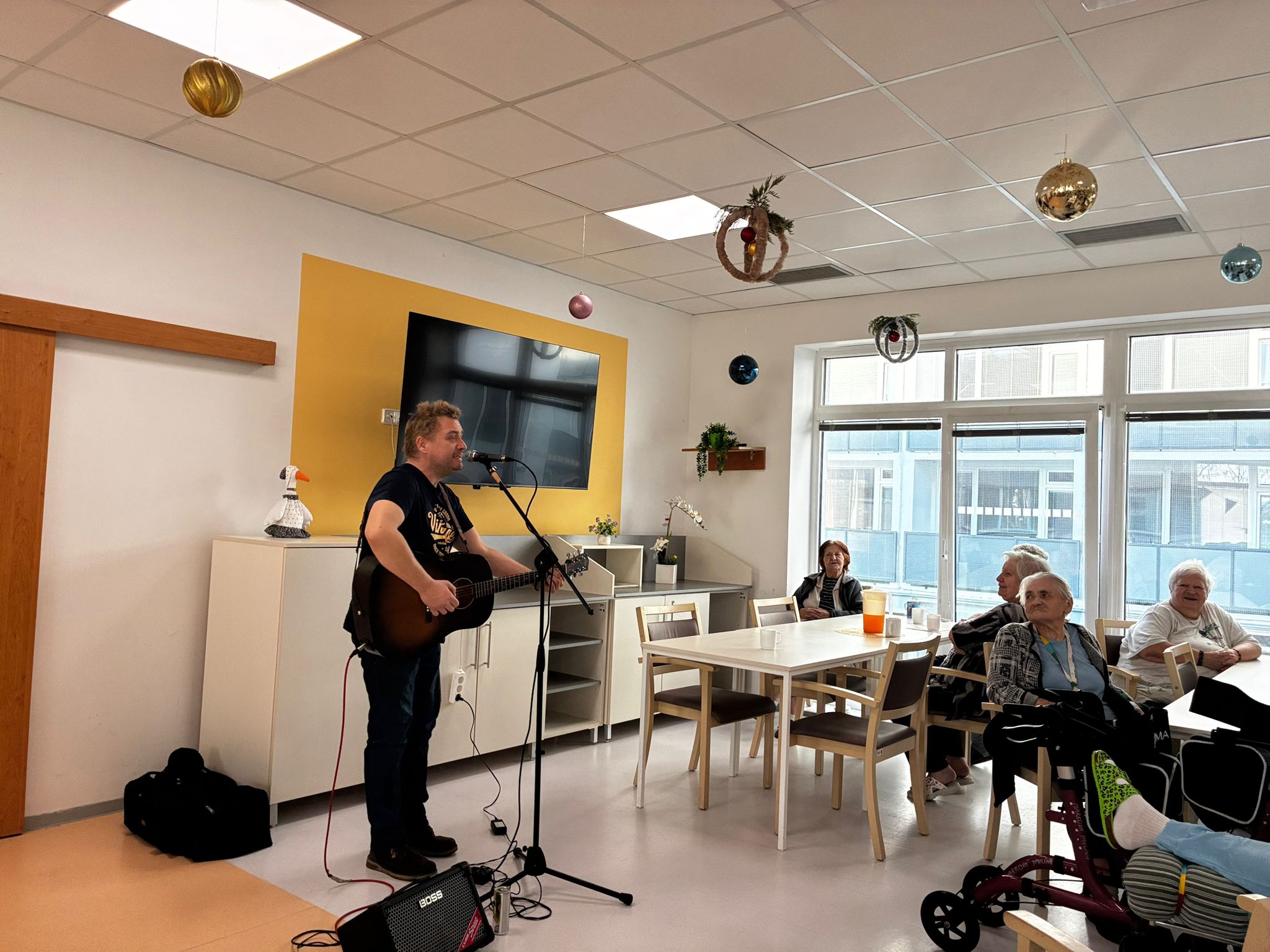 Mezi naše klienty zavítal účastník soutěže Superstar pan Michal Hudček. Zazpíval našim klientům staré dobré fláky. Vystoupení se moc líbilo.