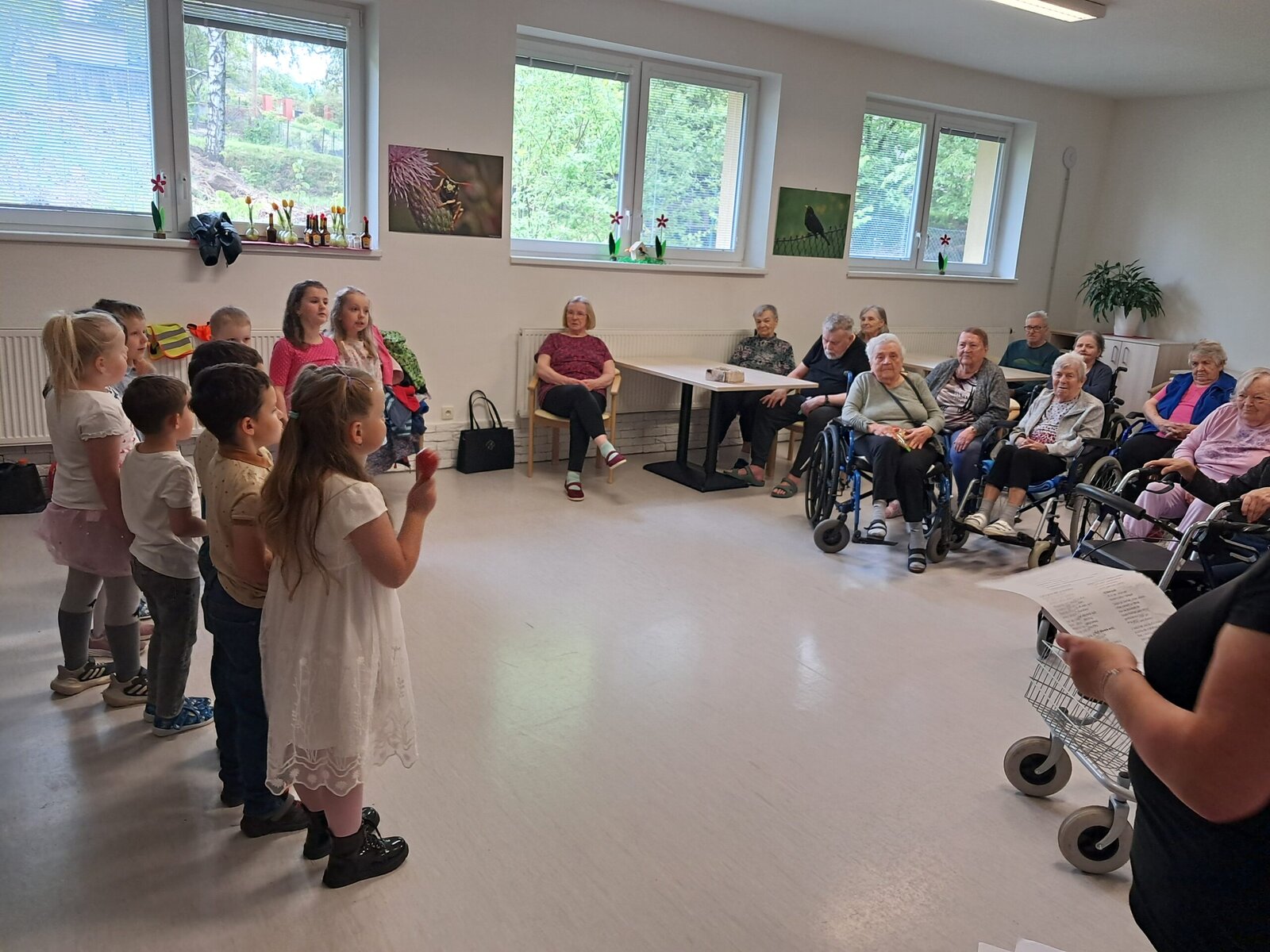 Do Senevida Jablunkov zavítaly děti z Mateřské školy Návsí. Paní učitelky s nimi připravily milé vystoupení, které klienty dojalo a potěšilo. Děkujeme za radost, kterou jste přinesli. Budeme moc rádi za další návštěvu – klienti mezigenerační návštěvy s nadšením vítají.