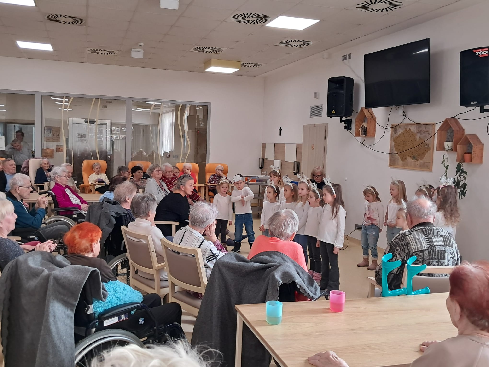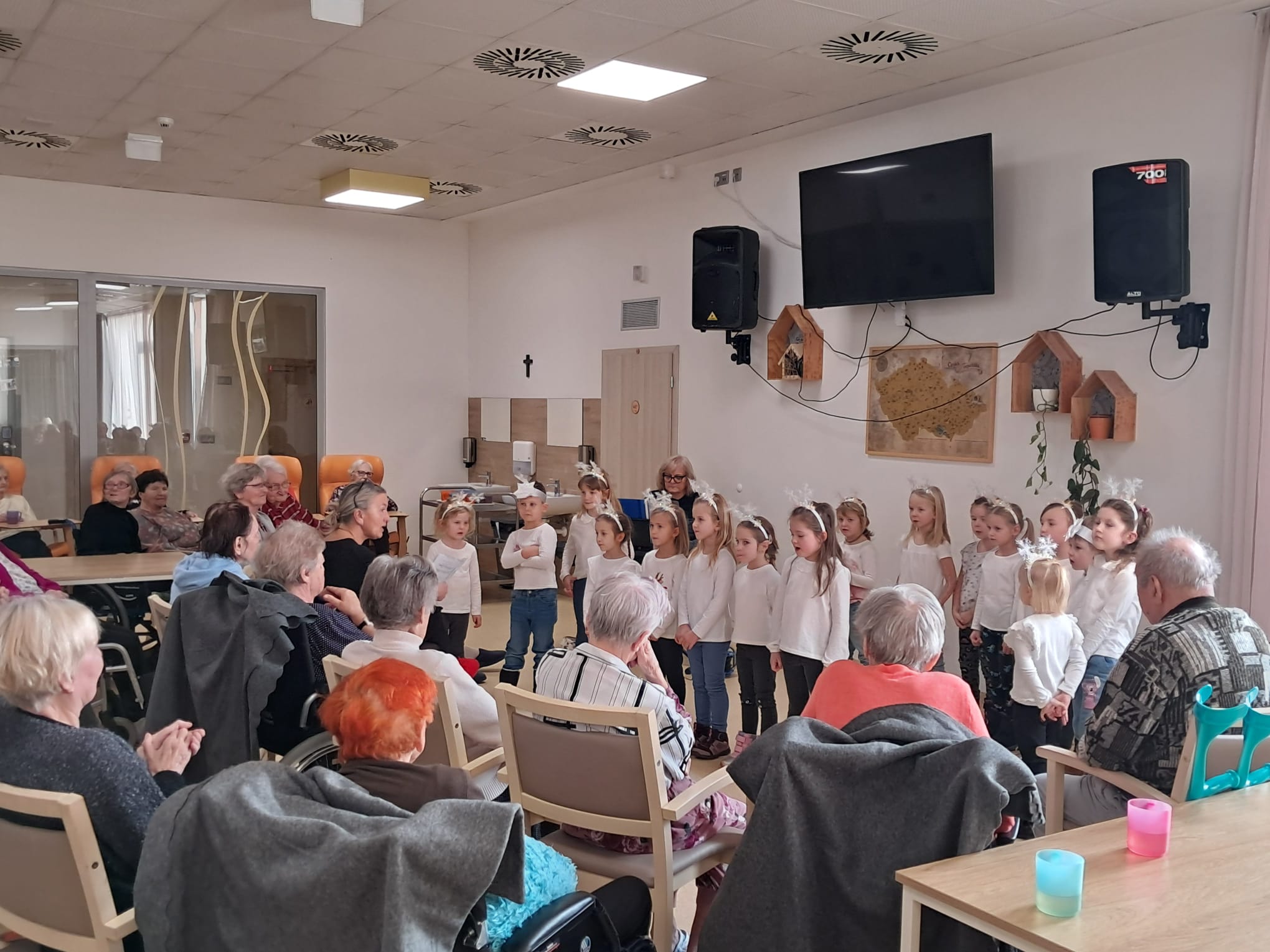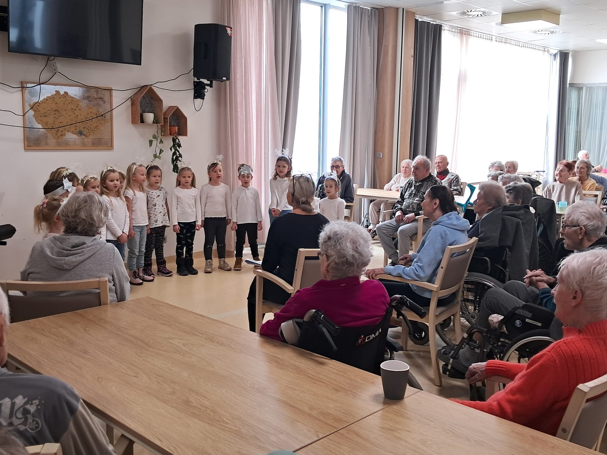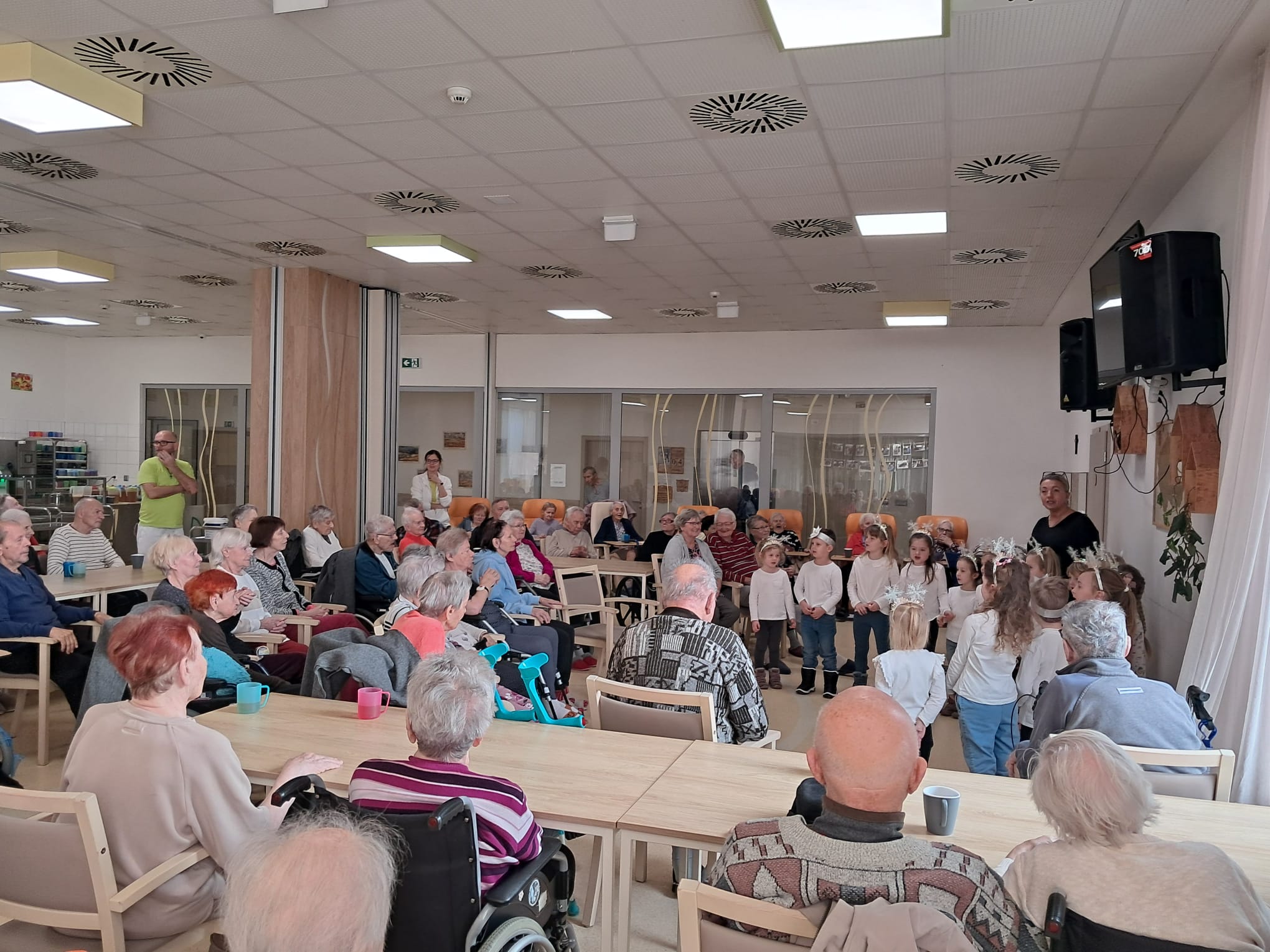 Minulý týden u nás v Senevida Ostrava proběhlo první vánoční vystoupení dětí pro klienty v rámci mezigeneračního setkávání. Malí zpěváčci byli z mateřské školy Mitušova a společně si připravili pásmo krásných vánočních písní, které nám za doprovodu klavíru zazpívali. Poté rozdali našim klientům drobné dárečky, které si pro ně rovněž připravili.