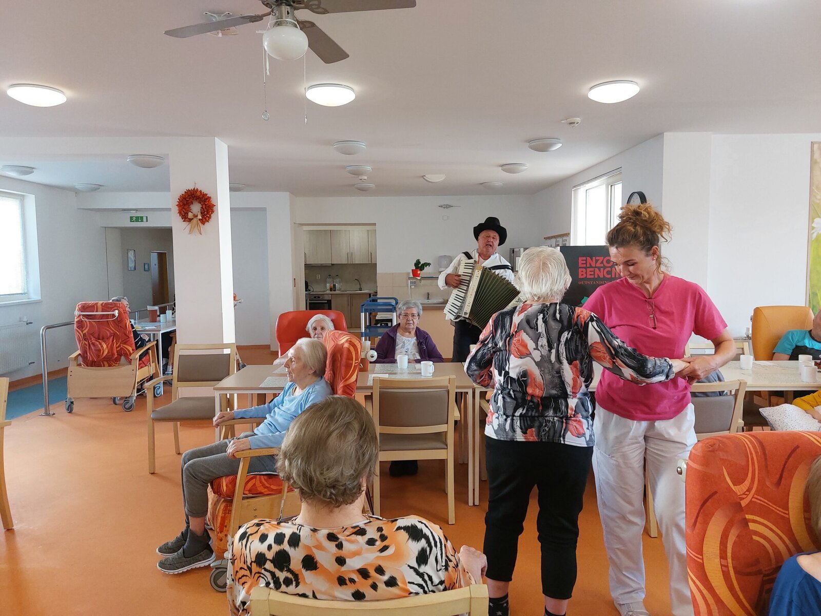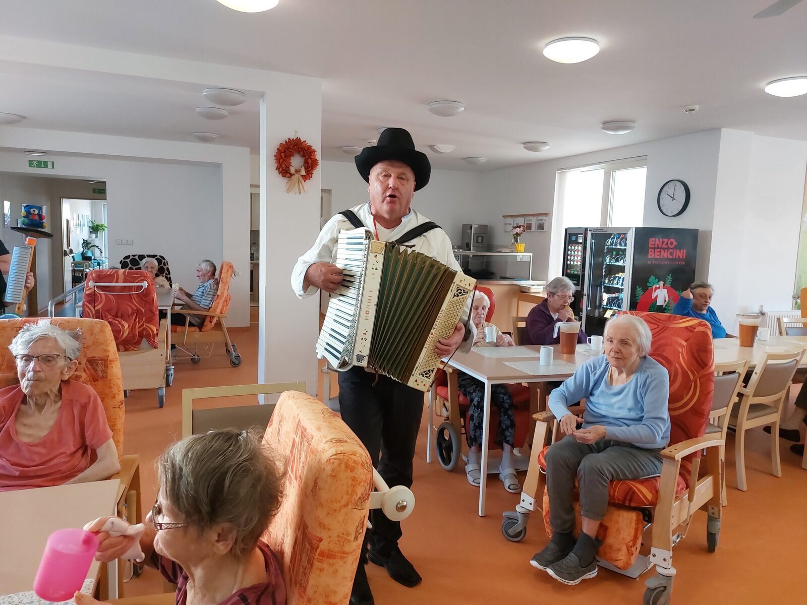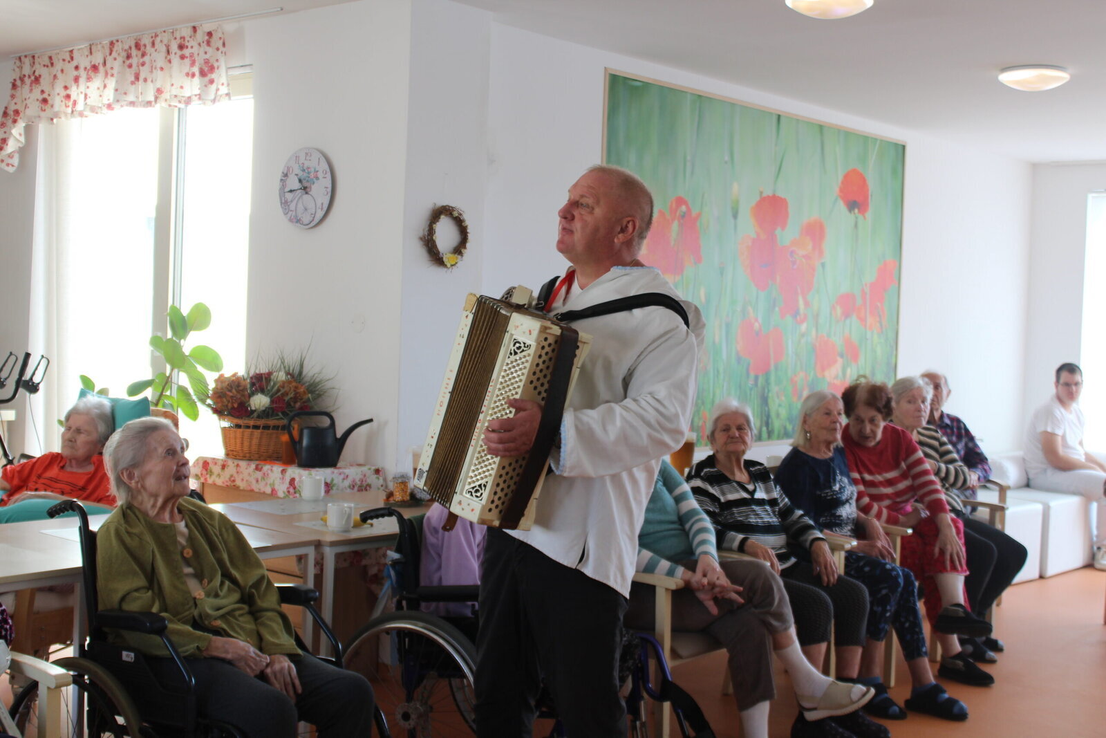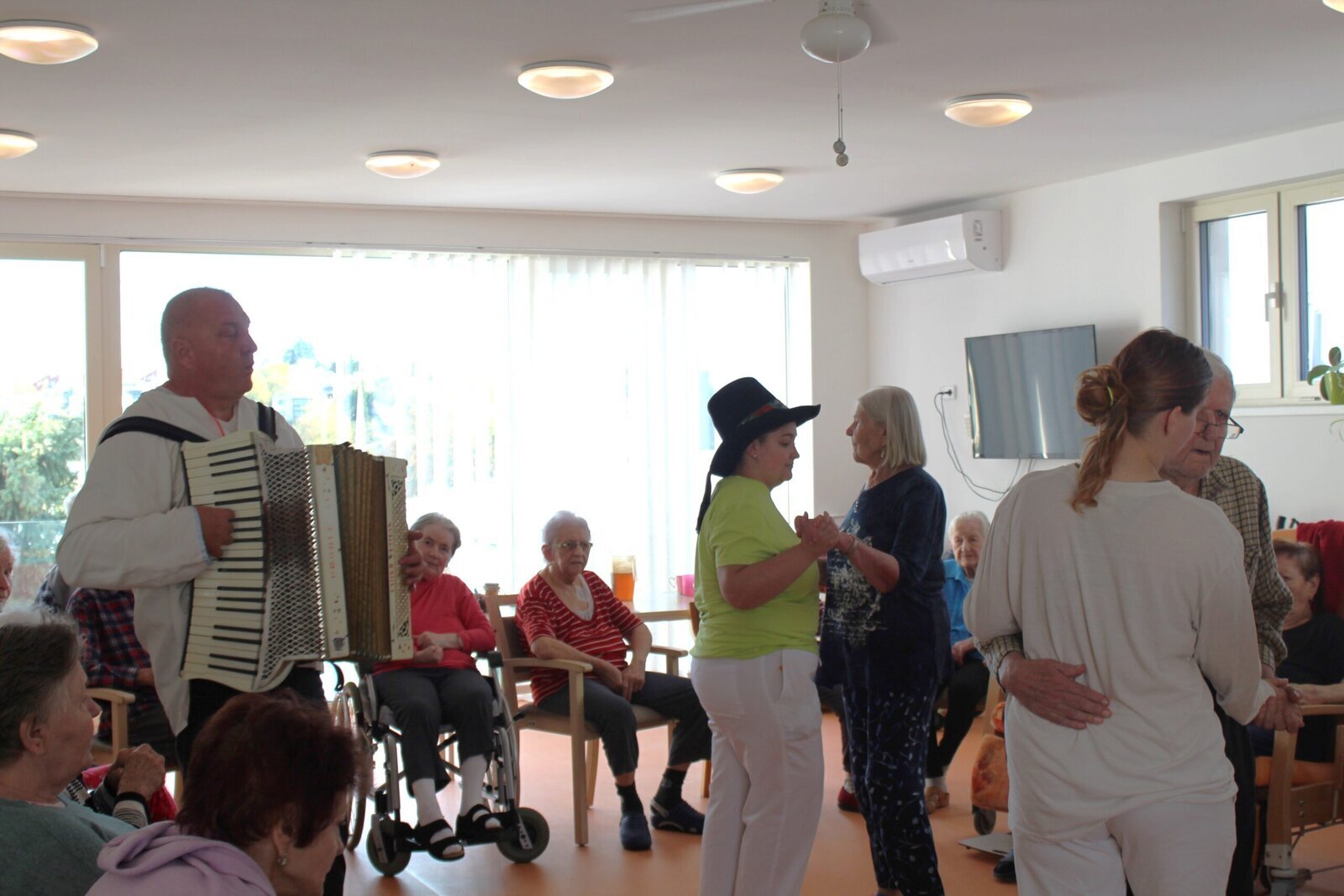 V rámci Týdnu sociálních služeb proběhl v Senevida Zlín Den otevřených dveří. Mohli jste vidět vystoupení pana harmonikáře. Navštívil klienty na celém zařízení, klienti si s ním zahráli, zazpívali a někteří i zatančili.