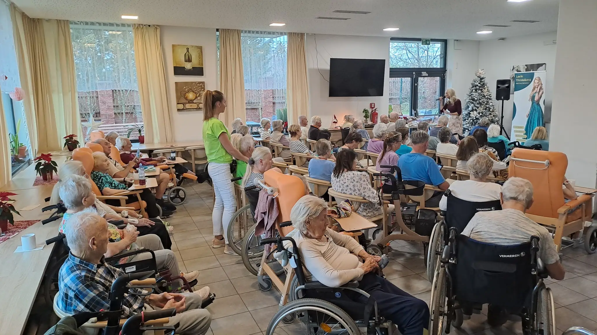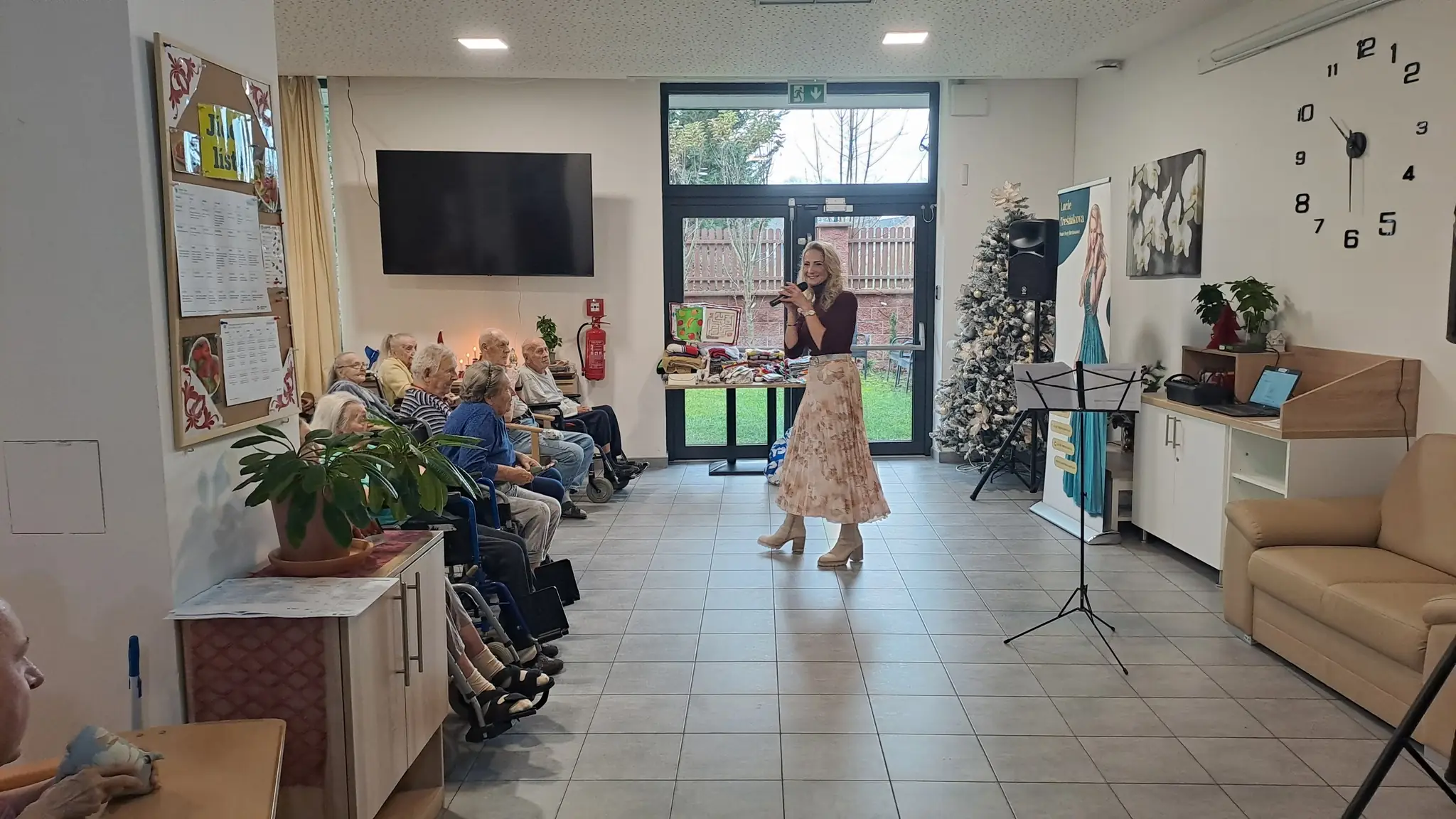 Další nezapomenutelné hudební vystoupení v Senevida Černošice v podání zpěvačky paní Lucie Třešňákové. Děkujeme za krásný zážitek a písně nejen od Ivety Bartošové, které jsme si společně zazpívali. Současně děkujeme spolku KLUBKO S NITÍ POMÁHÁ, Z.S. za dárečky pro naše klienty, byly pro všechny zúčastněné příjemným překvapením. Moc si toho vážíme.