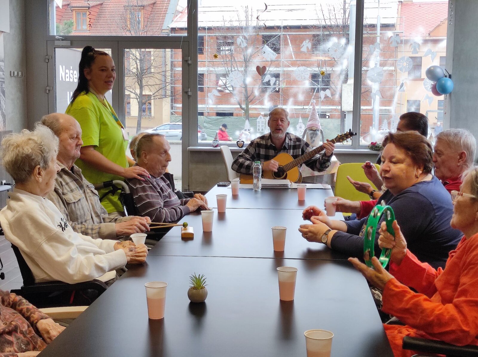 V prosinci nás navštívil dobrovolník pan Černý, který klientům zahrál na kytaru známé písničky. Klienti si zazpívali a dokonce si zkusili i doprovod na různé hudební nástroje. Z tohoto vystoupení si klienti odnesli mnoho pozitivních zážitků a již teď se těší na jeho další návštěvu.